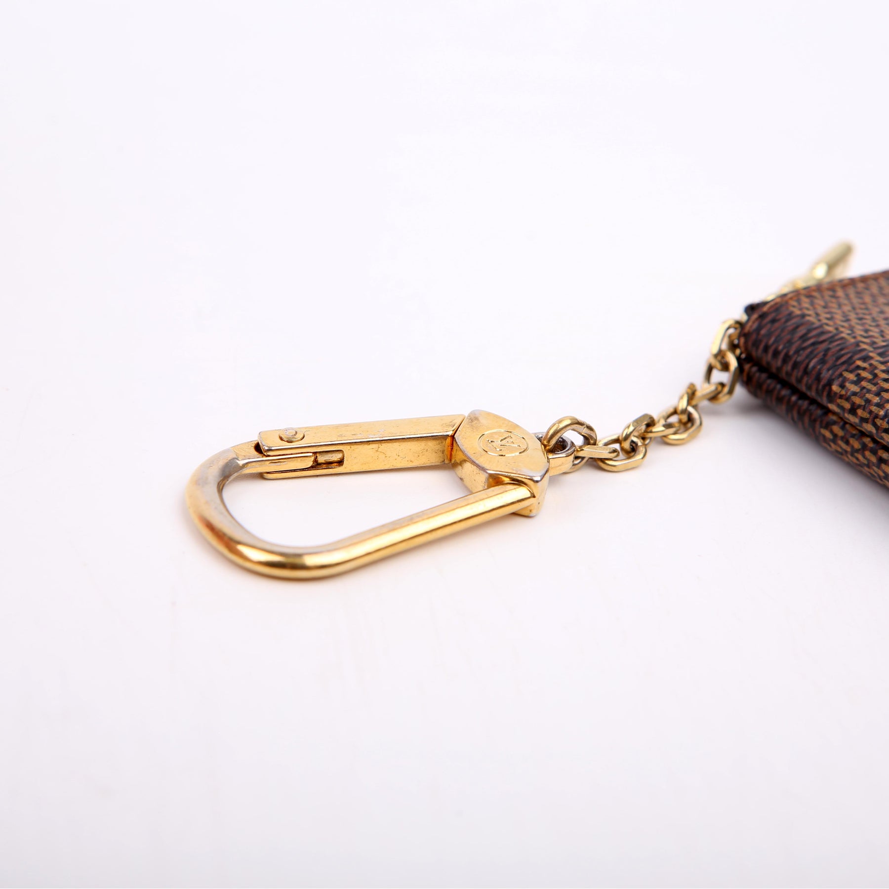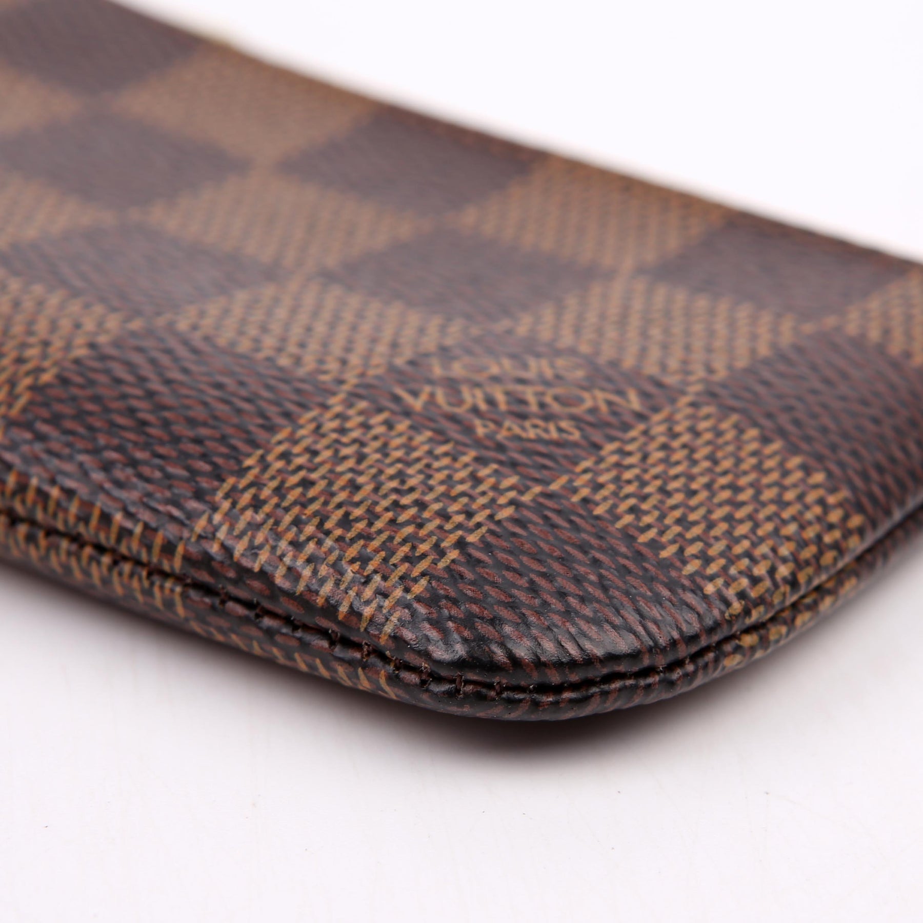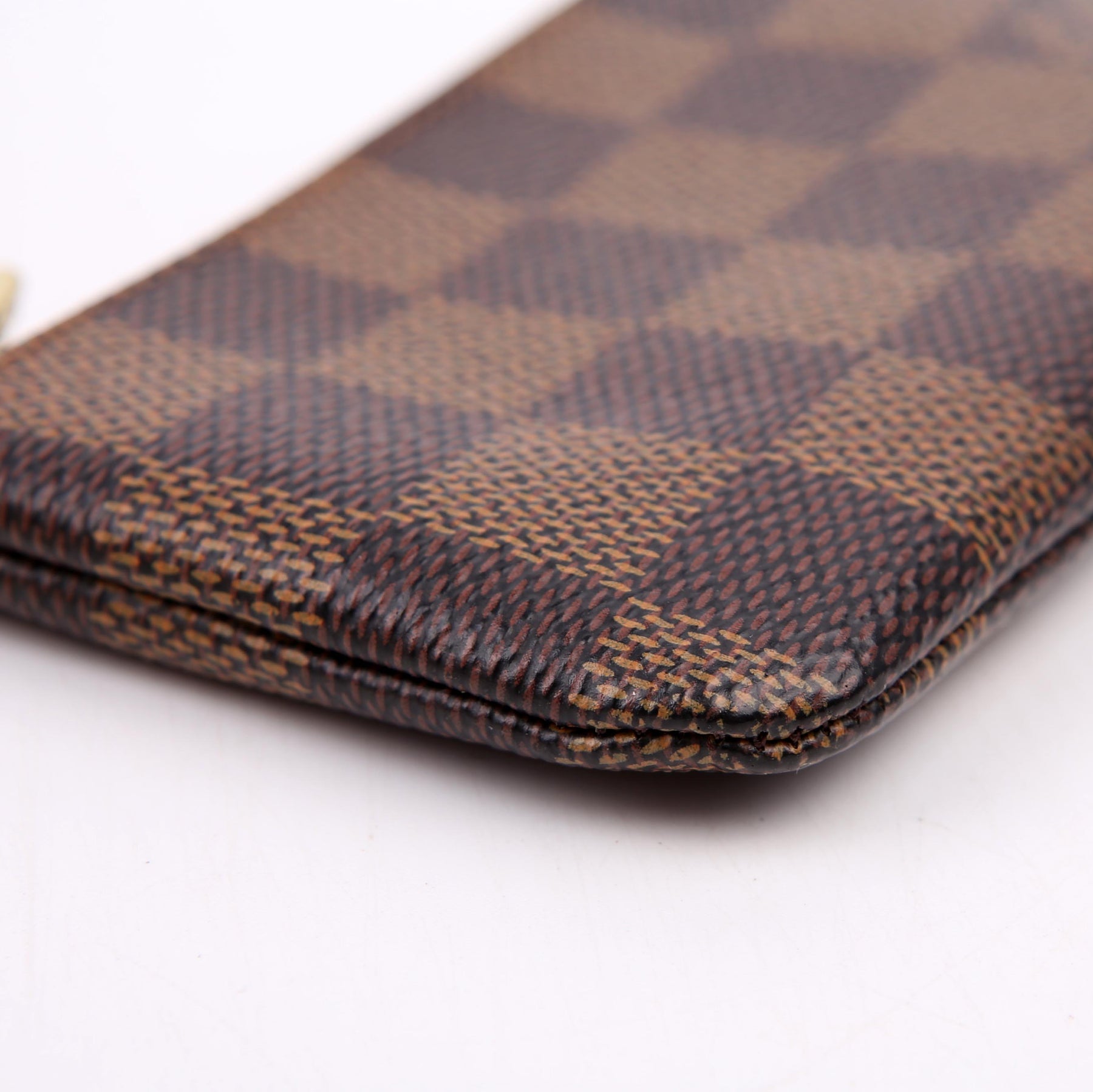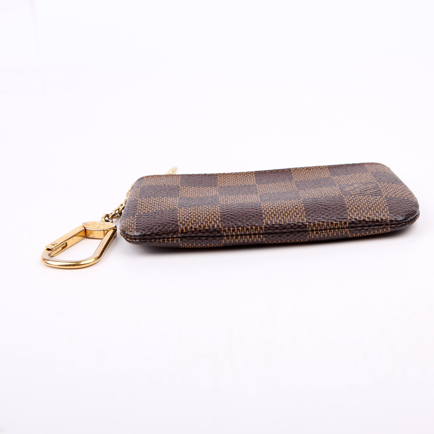 This pre-owned Louis Vuitton Pochette Cles is guaranteed 100% authentic. The exterior is in the classic Louis Vuitton Damier Ebene coated canvas.