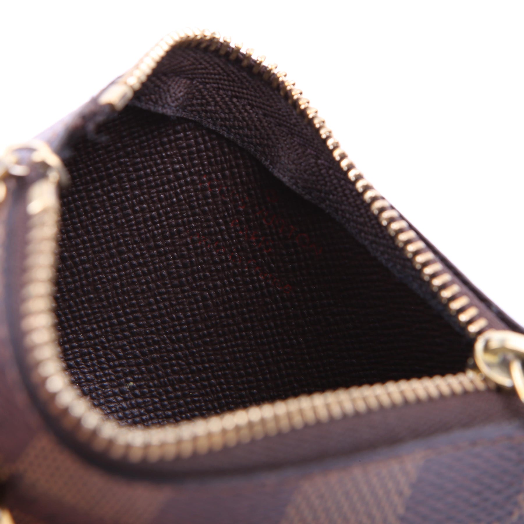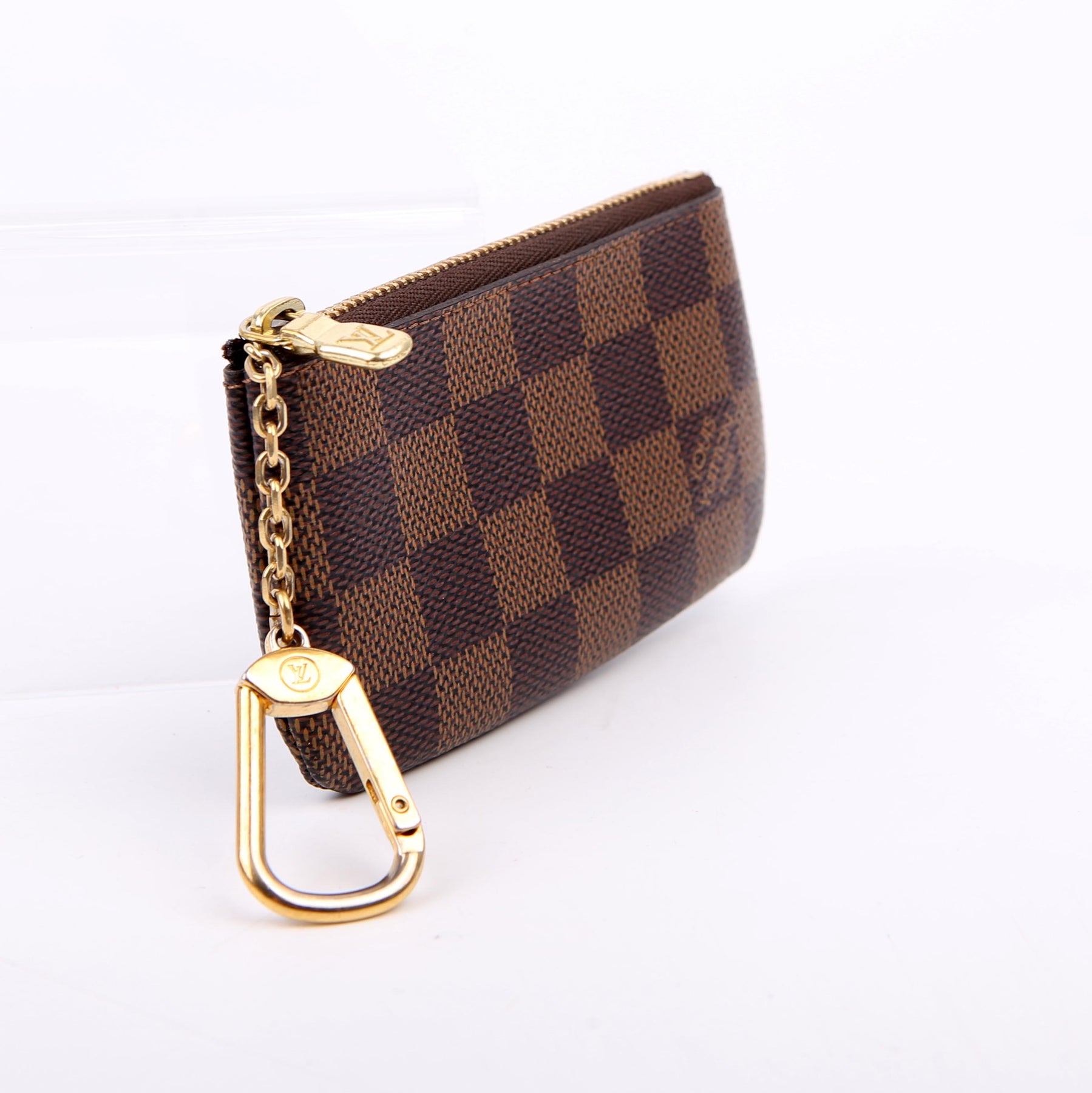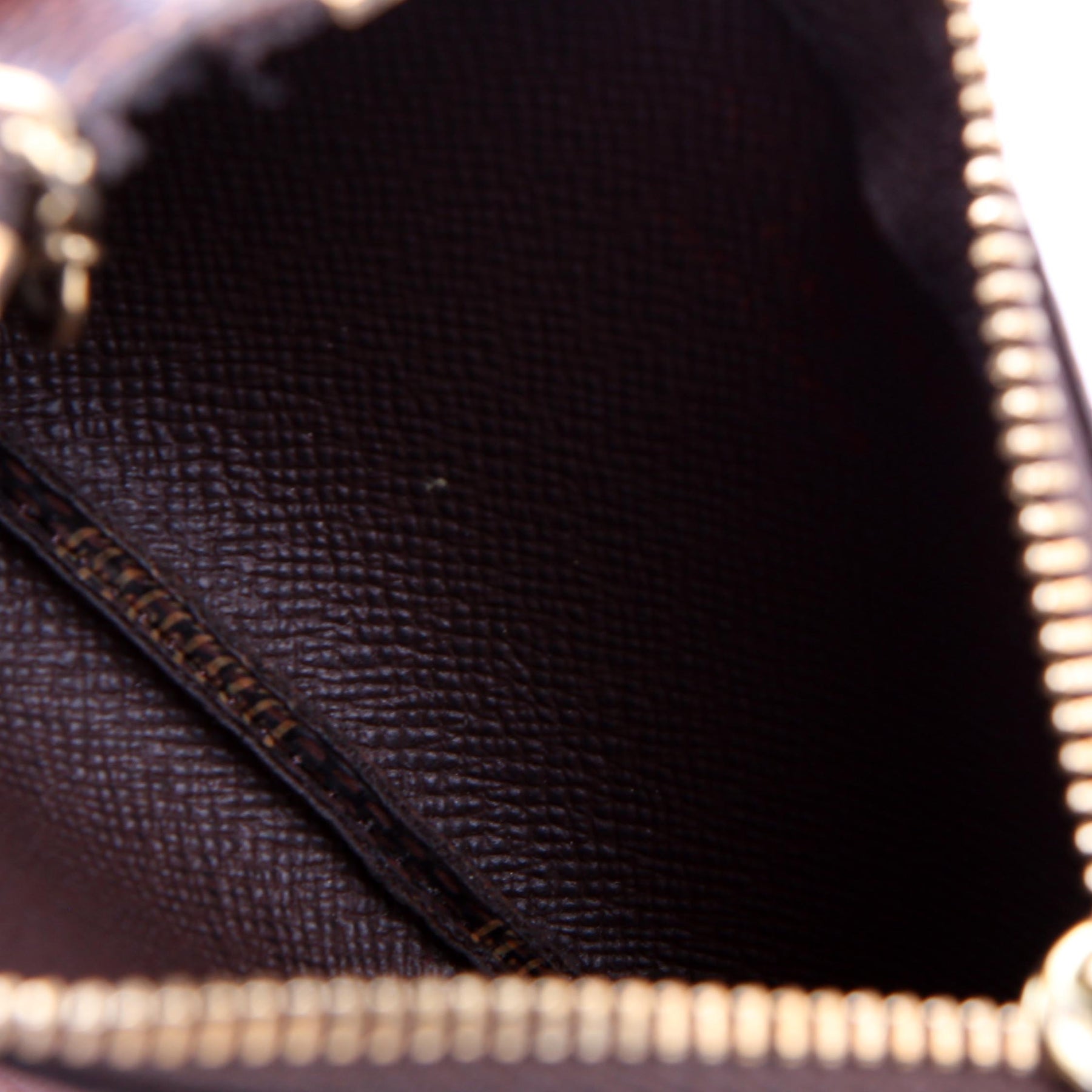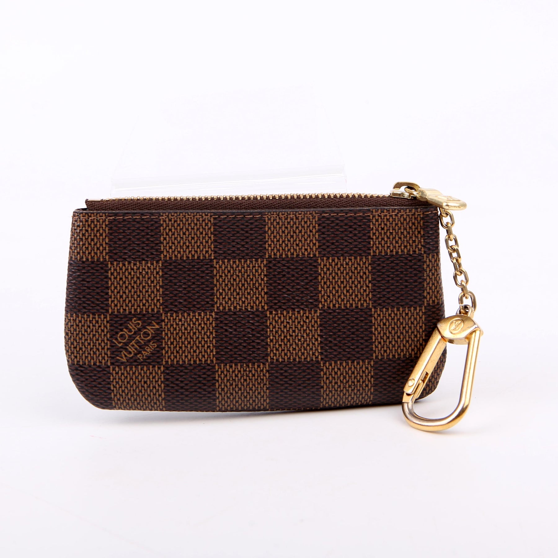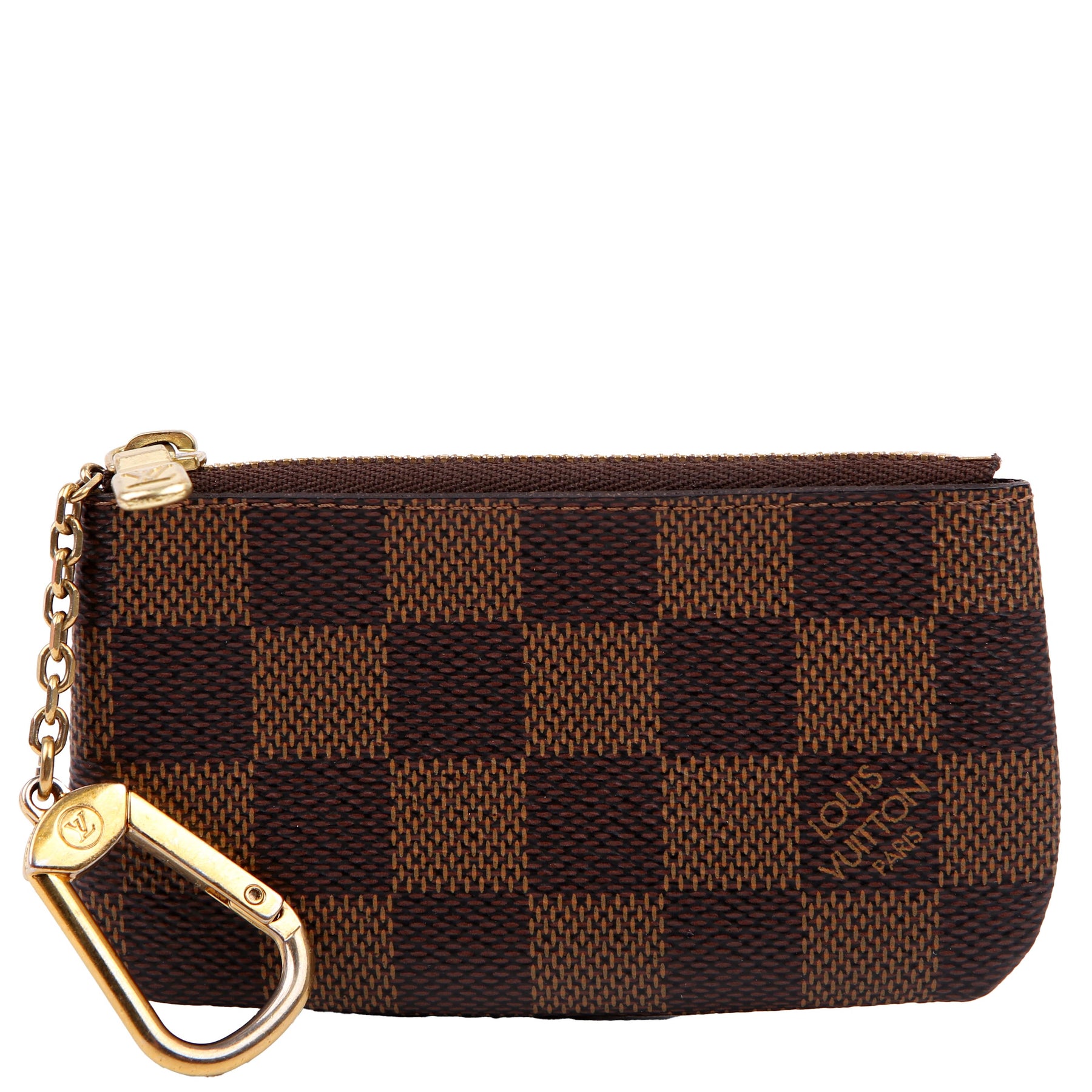 This pre-owned Louis Vuitton Pochette Cles is guaranteed 100% authentic. The exterior is in the classic Louis Vuitton Damier Ebene coated canvas.