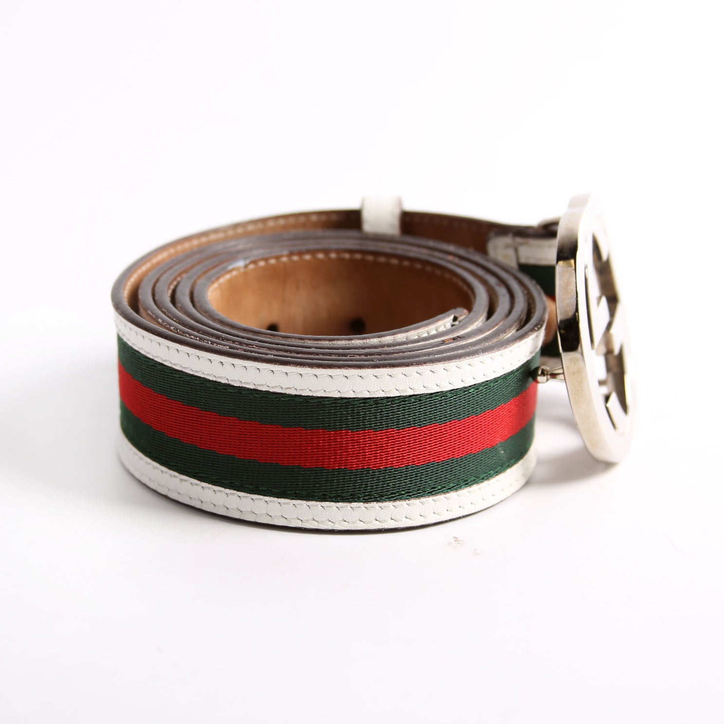 This pre-owned Gucci Web Canvas Interlocking G Belt is guaranteed 100% authentic.