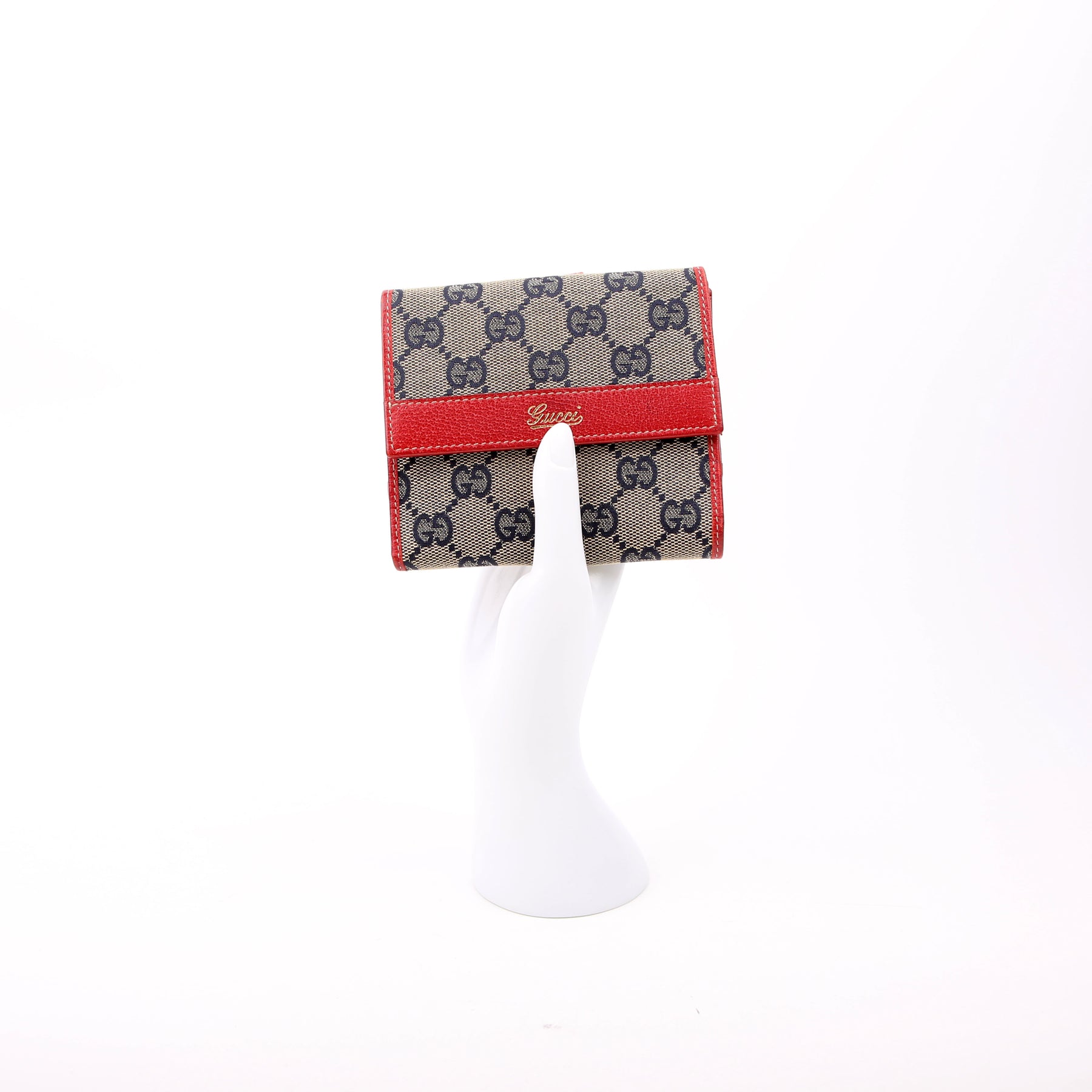 131854 GG Canvas Tri-Fold Wallet Navy/Red