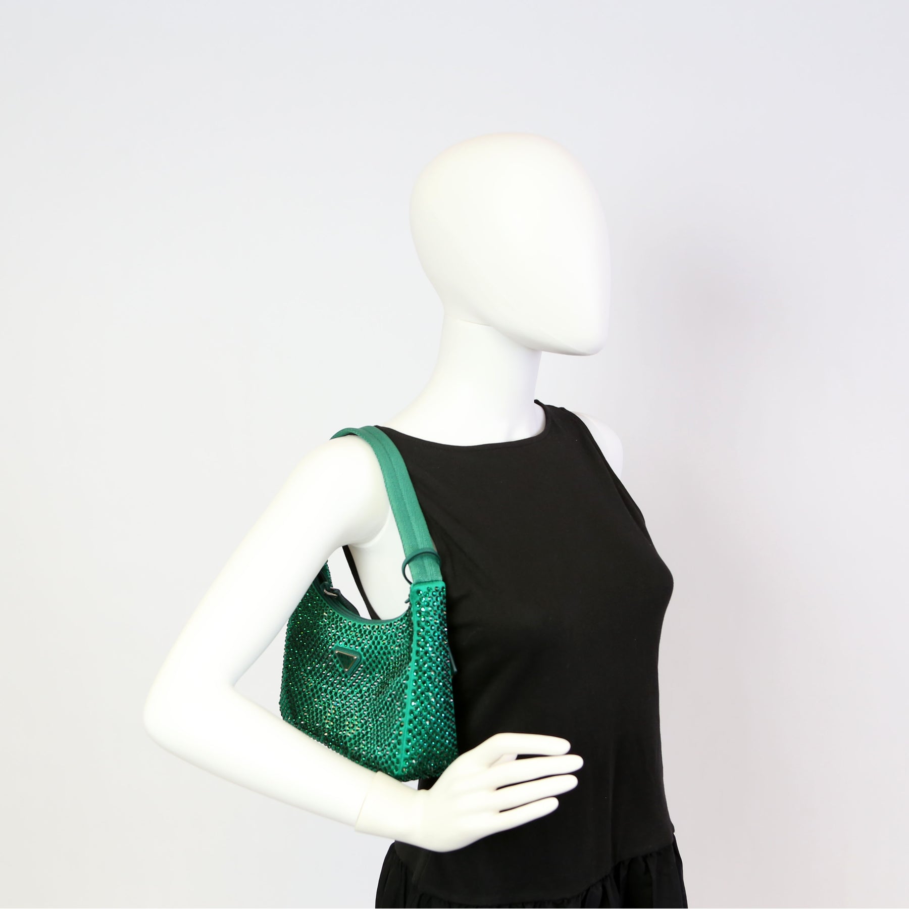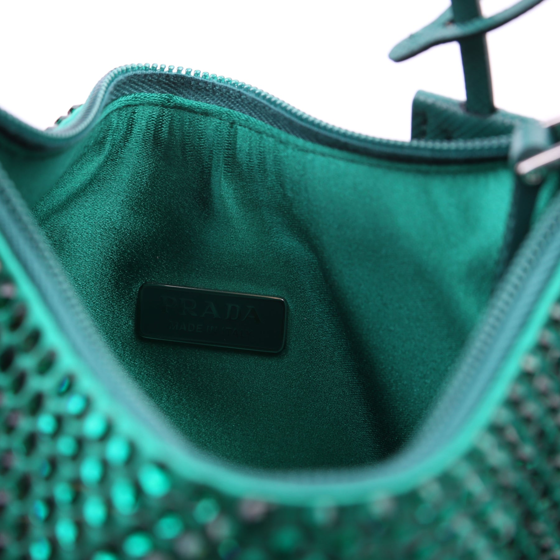 1BC515 Satin Crystal Re-Edition 2000 Mini Bag Green
