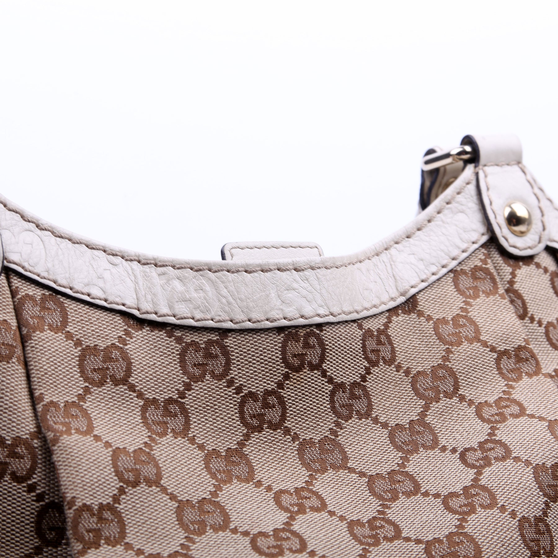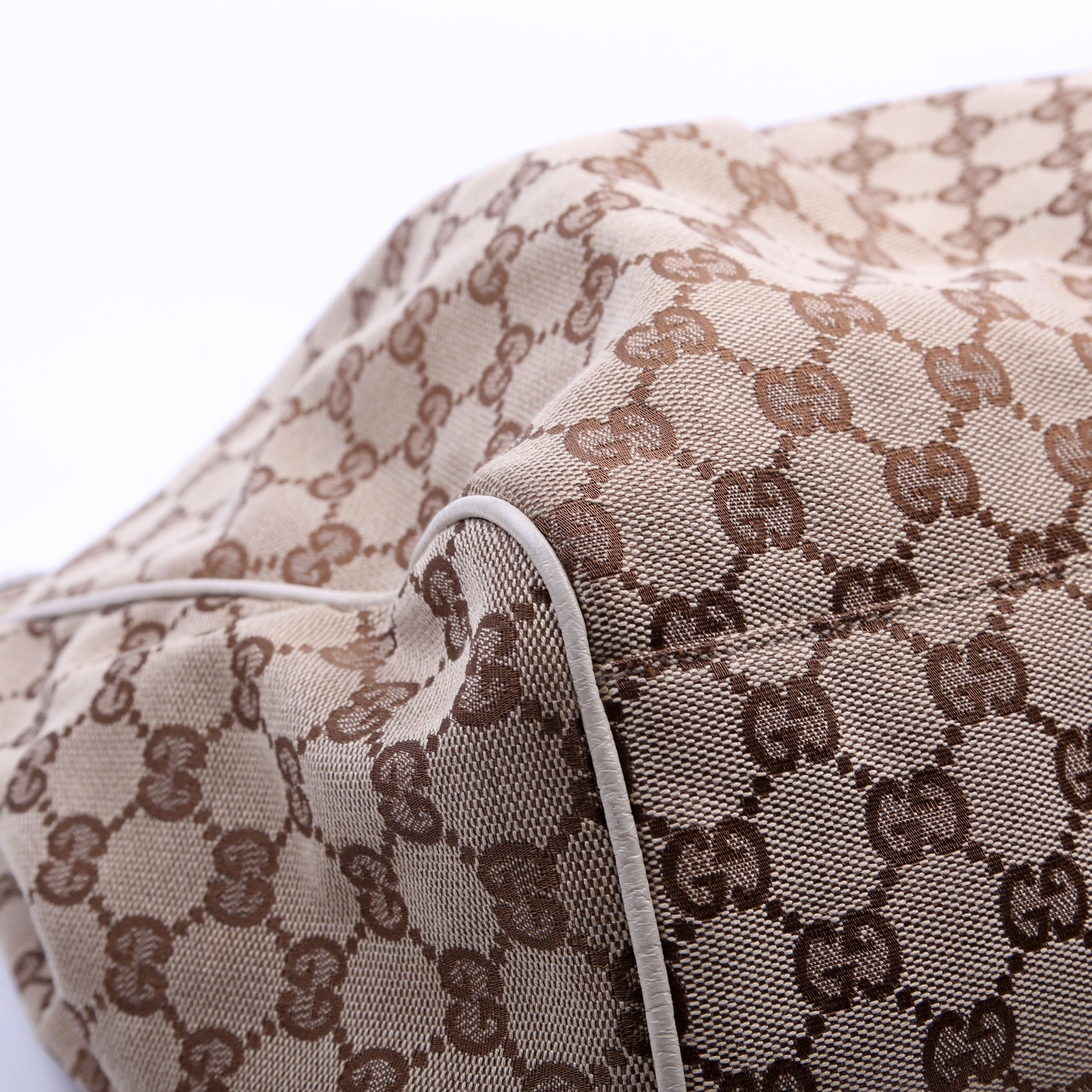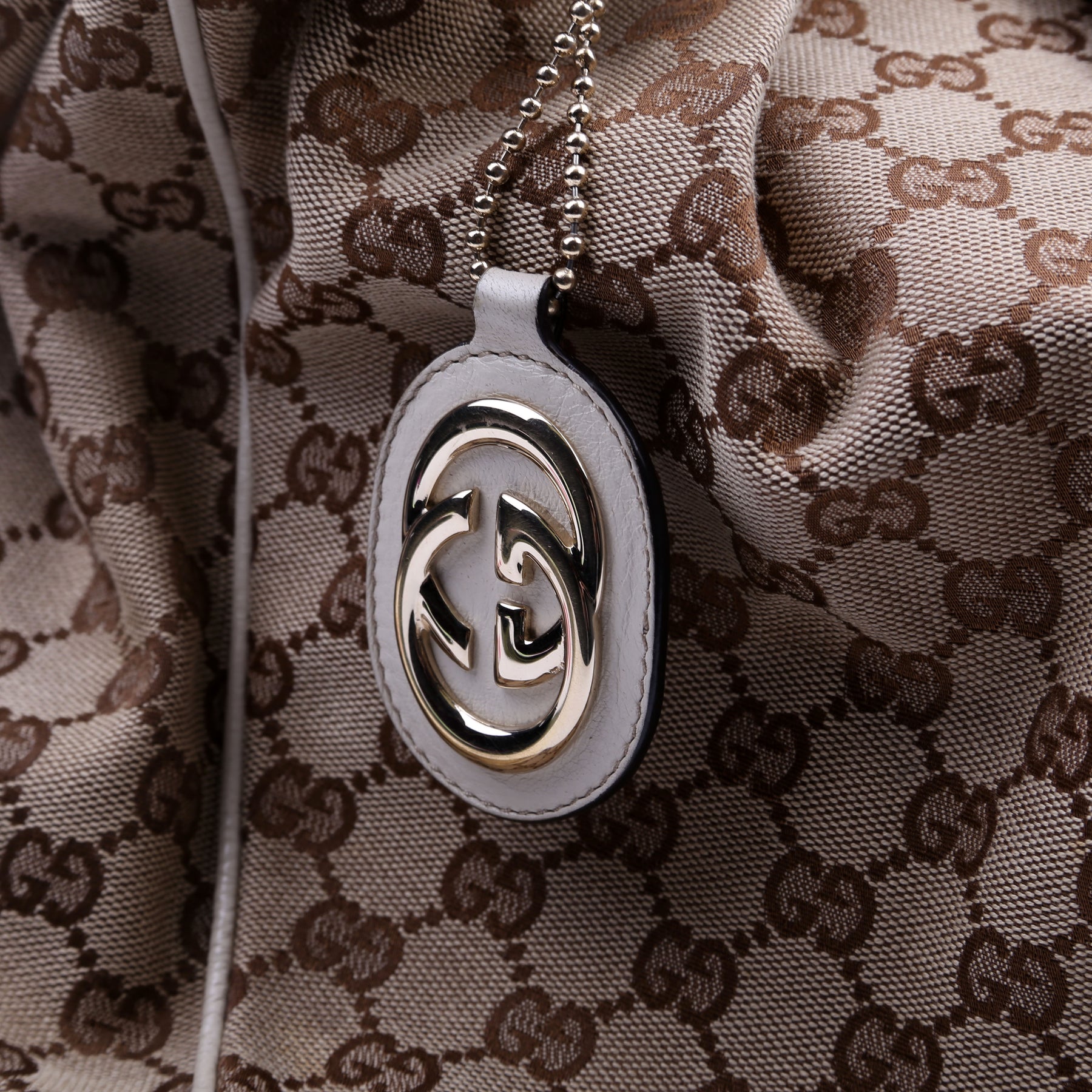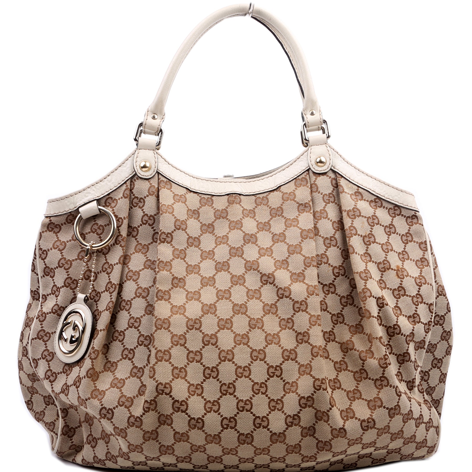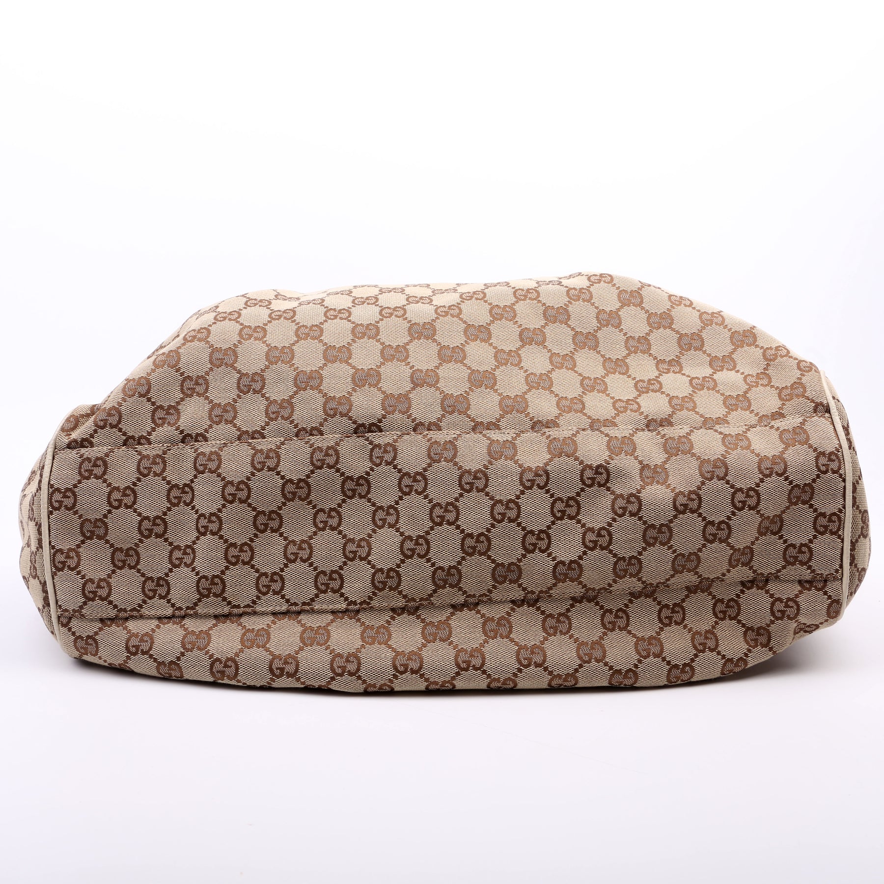 This pre-owned Gucci Sukey GG Canvas Large is guaranteed 100% authentic. The exterior is in the classic Gucci GG canvas.