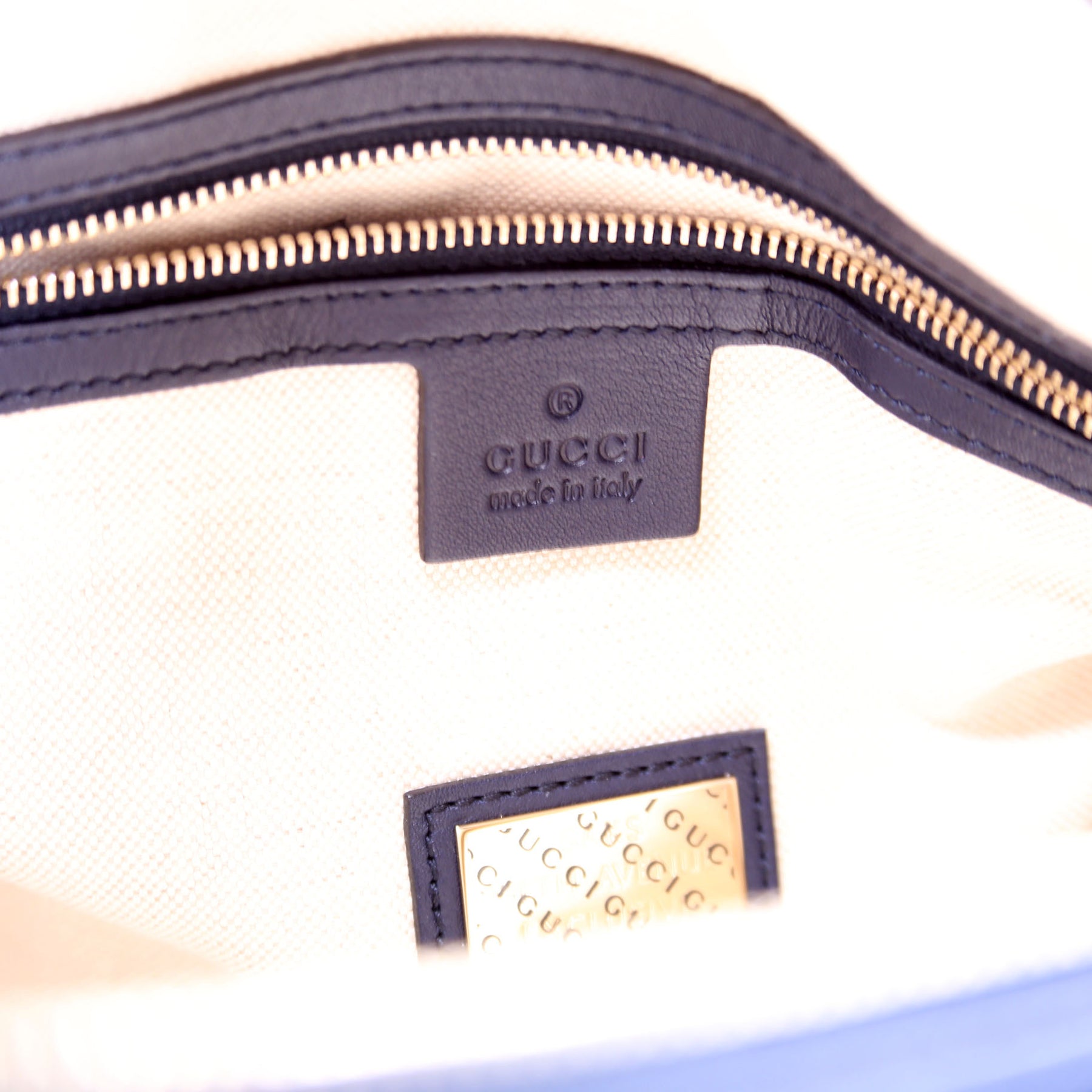 This pre-owned Gucci Joy Boston Bag is guaranteed 100% authentic. The exterior is in the classic Gucci GG Guccissima Leather