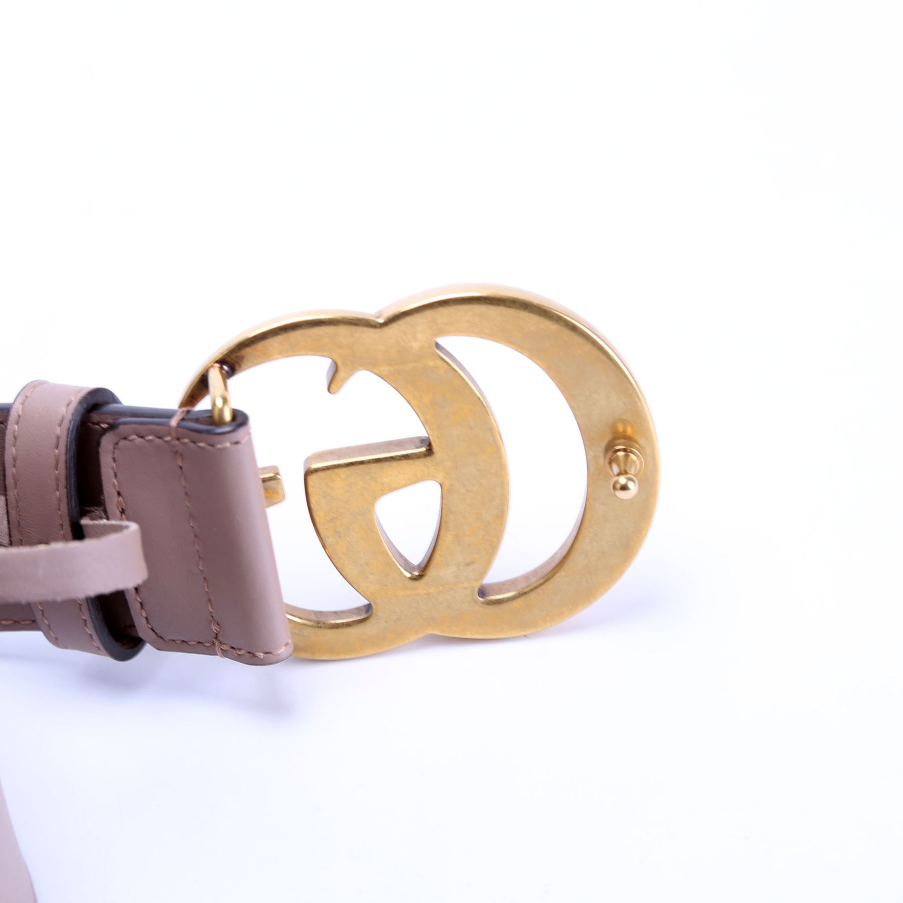 This pre-owned Gucci Marmont Belt is guaranteed 100% authentic. The exterior is in the classic Gucci GG Supreme coated canvas.