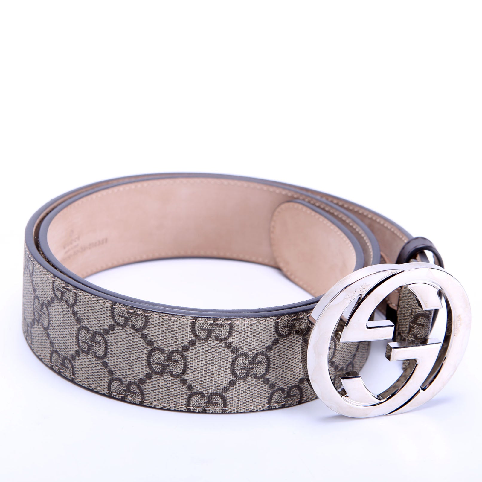 This pre-owned Gucci GG Supreme Belt is guaranteed 100% authentic. The exterior is in the classic Gucci GG Supreme coated canvas.