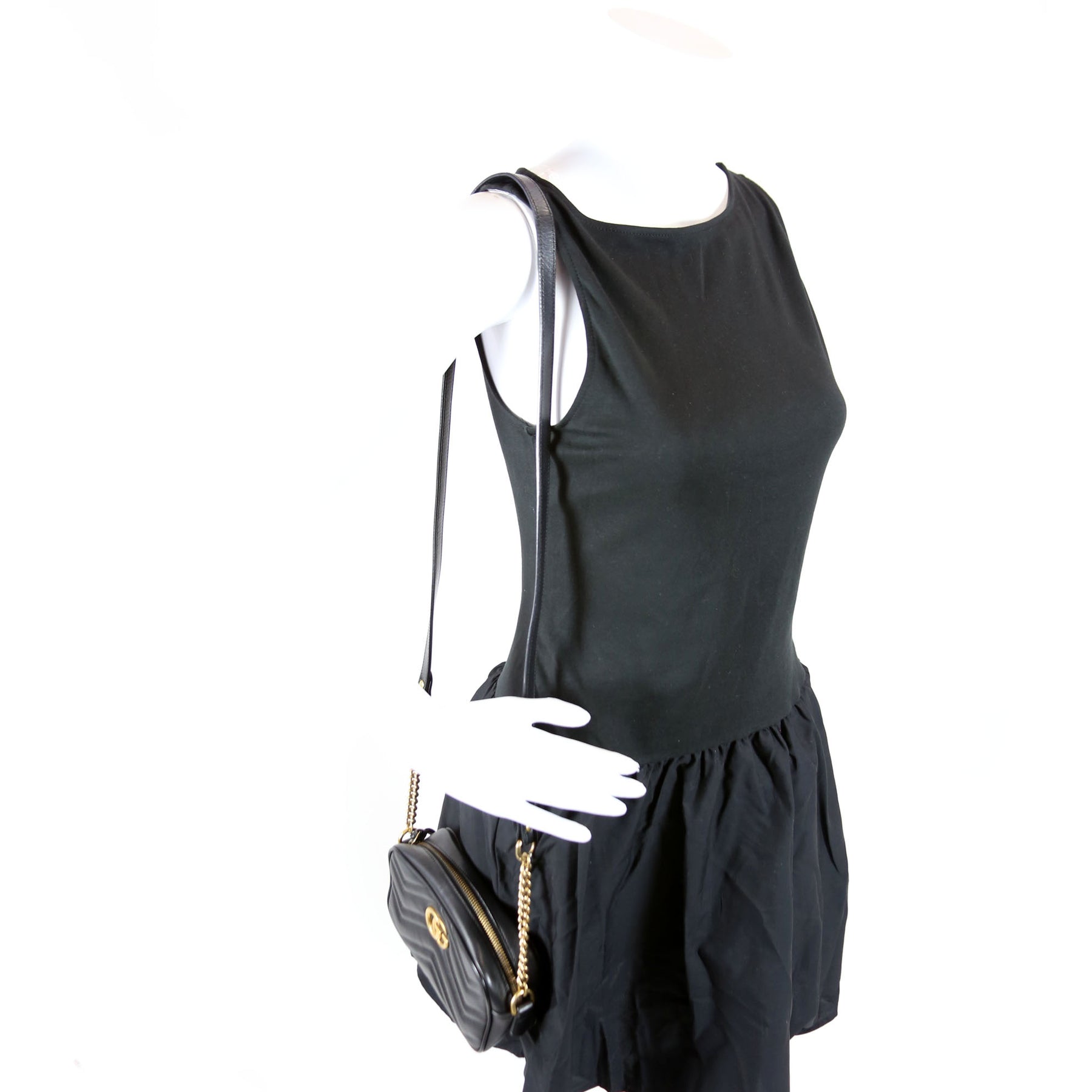 This pre-owned Marmont Mini Camera Bag is guaranteed 100% authentic. The exterior is in the classic Gucci Marmont leather.