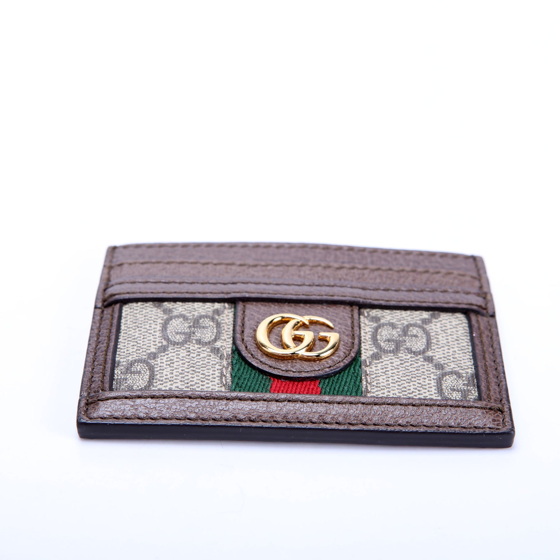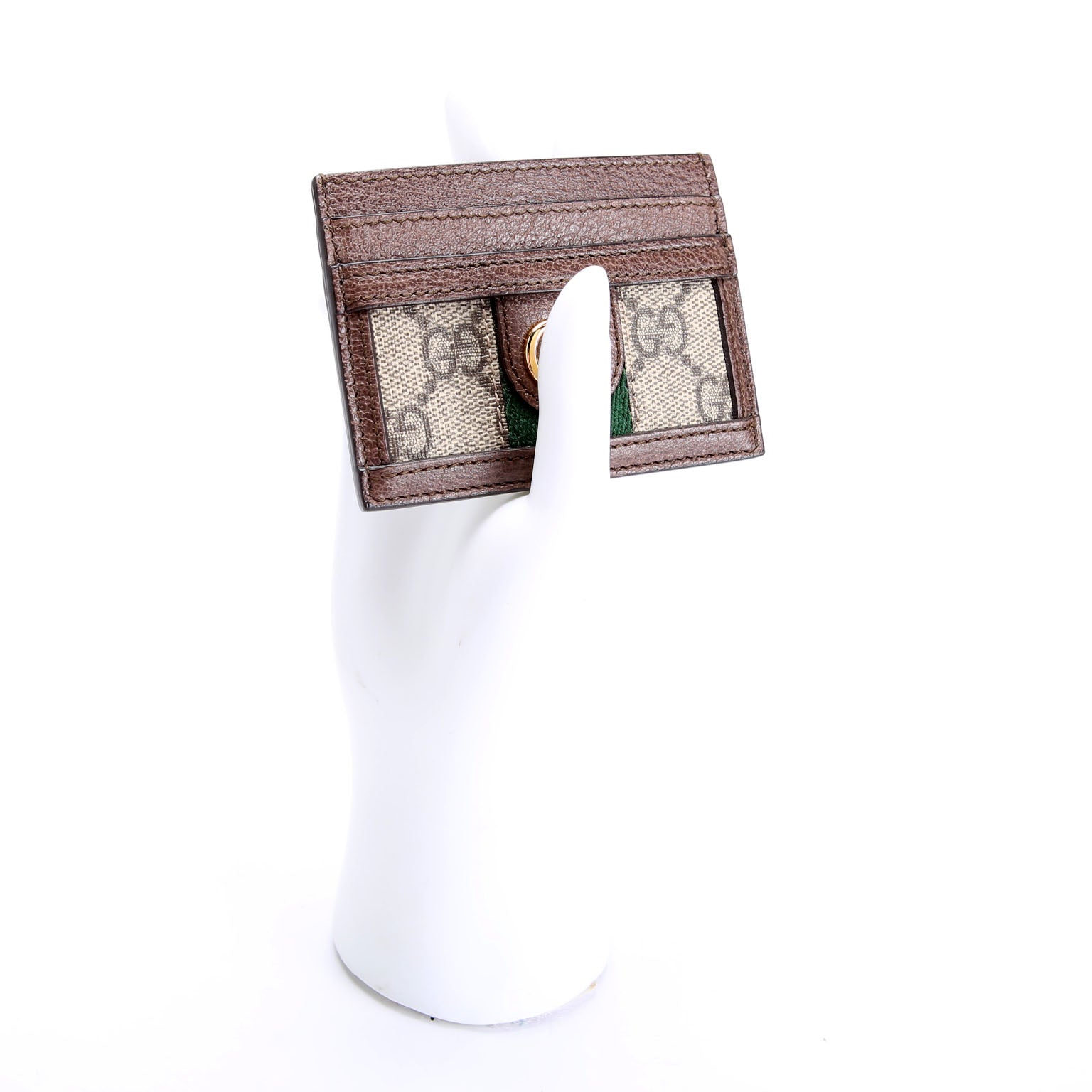 This pre-owned Gucci Ophidia GG Card Case is guaranteed 100% authentic. The exterior is in the classic Gucci GG Supreme coated canvas.