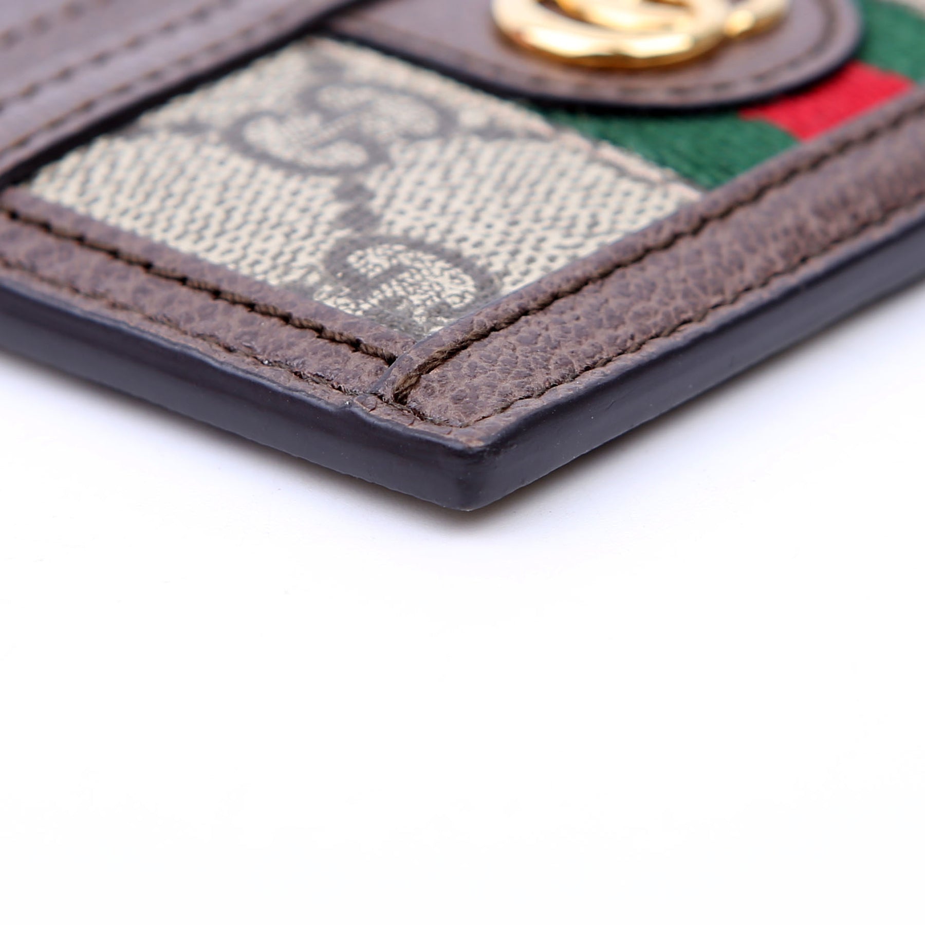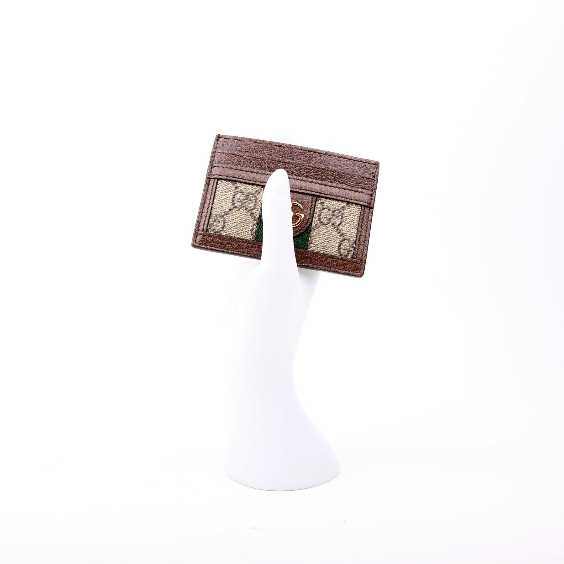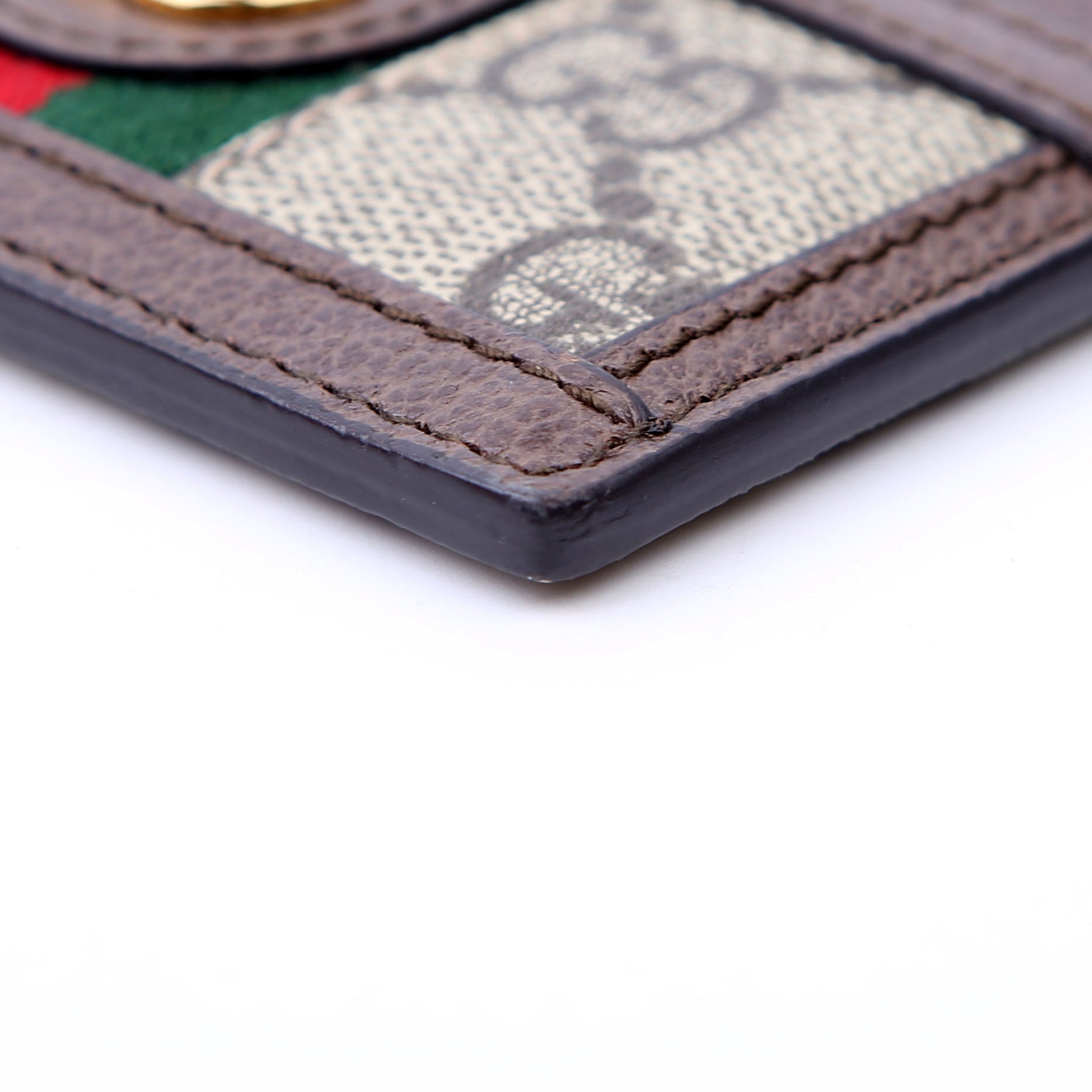 This pre-owned Gucci Ophidia GG Card Case is guaranteed 100% authentic. The exterior is in the classic Gucci GG Supreme coated canvas.