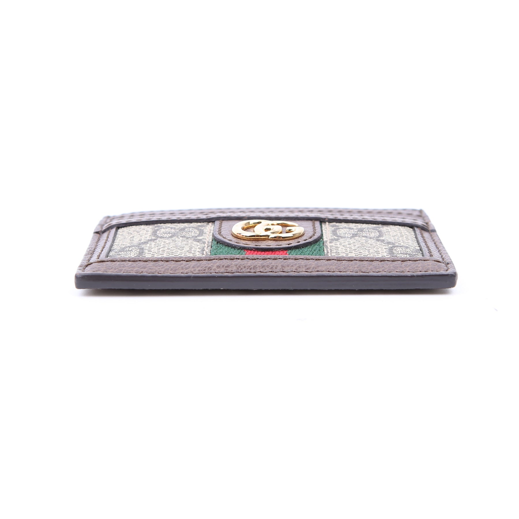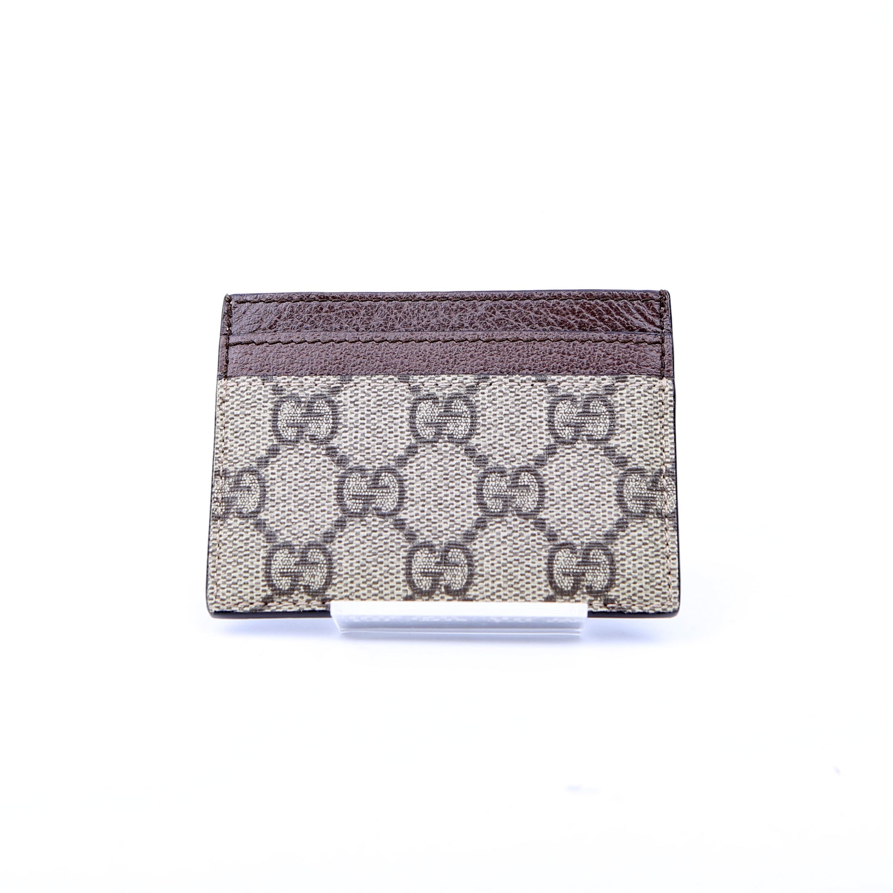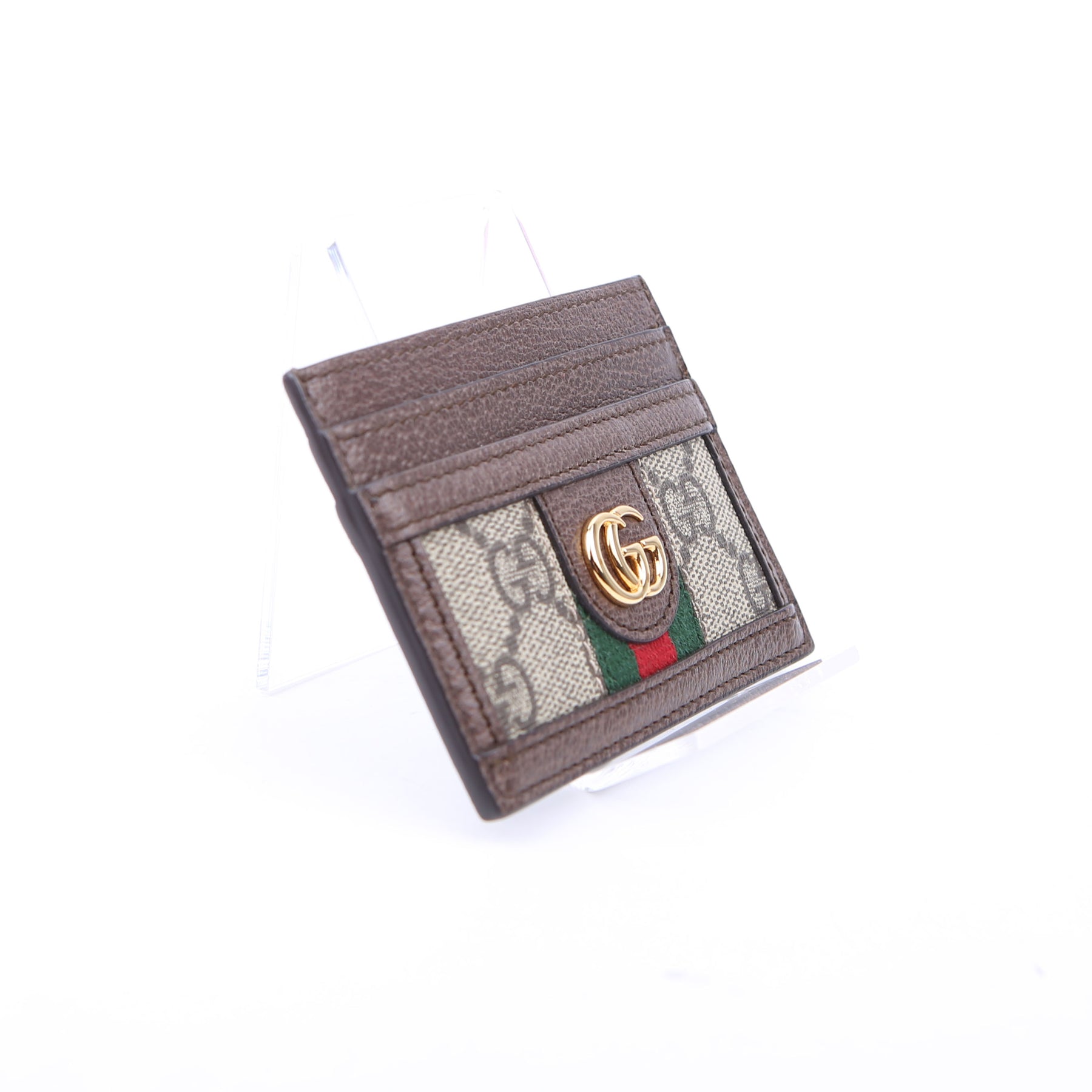 This pre-owned Gucci Ophidia GG Card Case is guaranteed 100% authentic. The exterior is in the classic Gucci GG Supreme coated canvas.