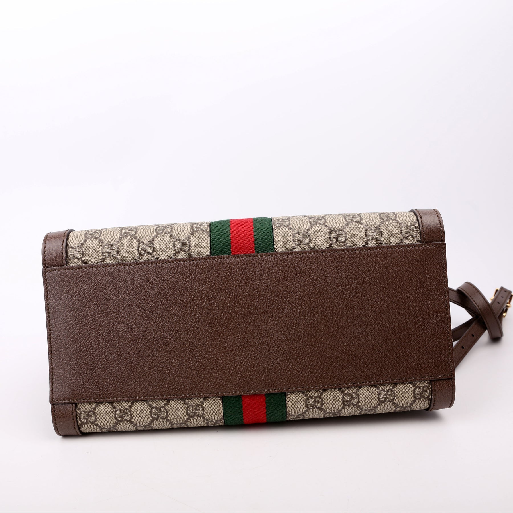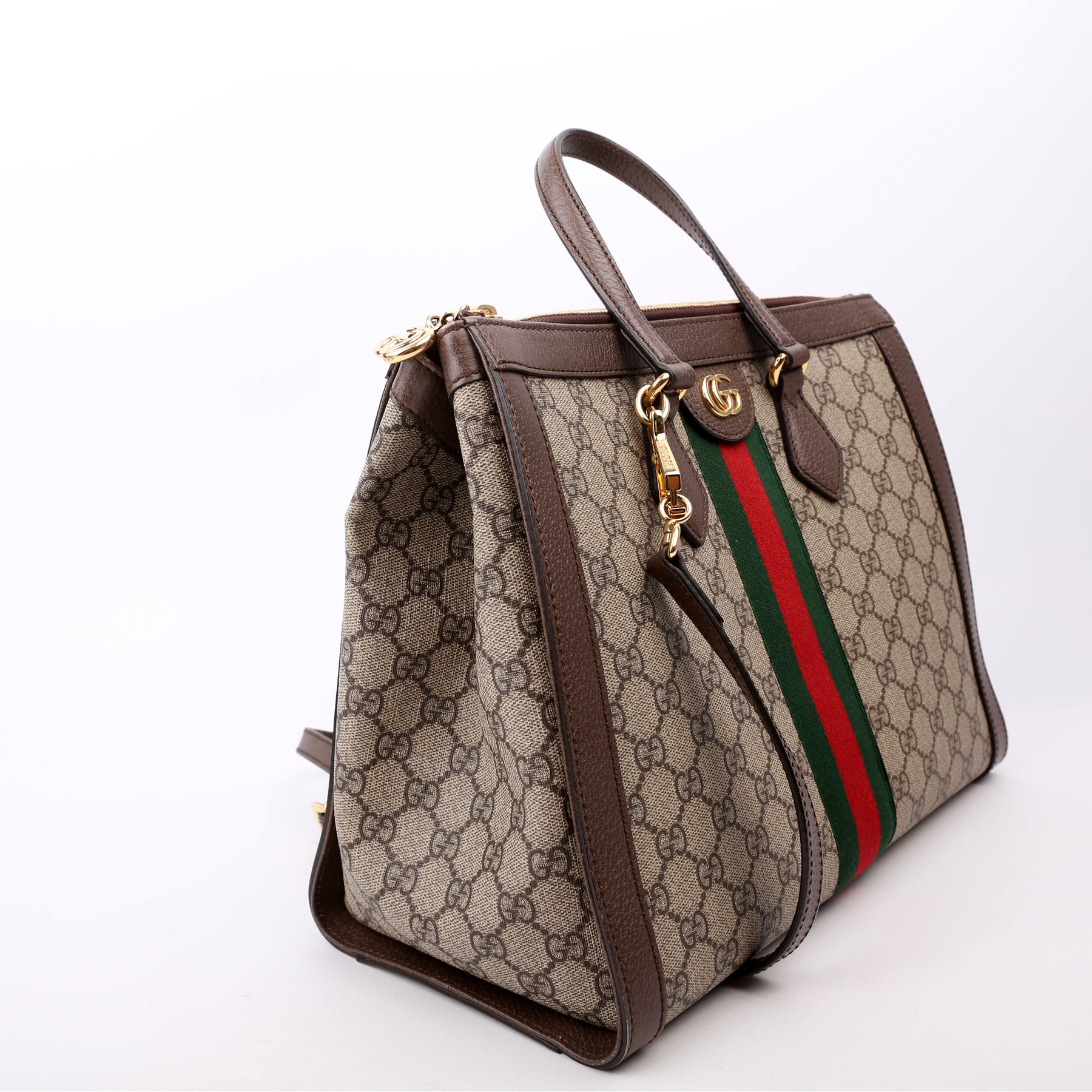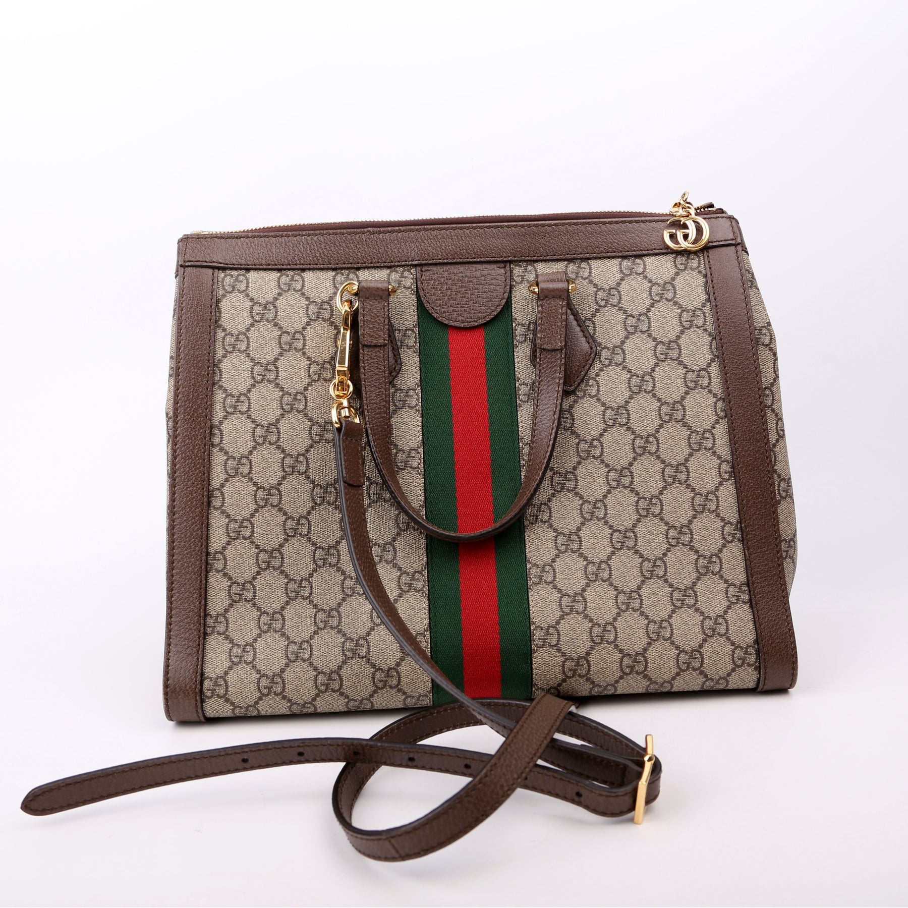 This pre-owned Gucci Ophidia GG Medium Tote is guaranteed 100% authentic. The exterior is in the classic Gucci GG Supreme coated canvas.