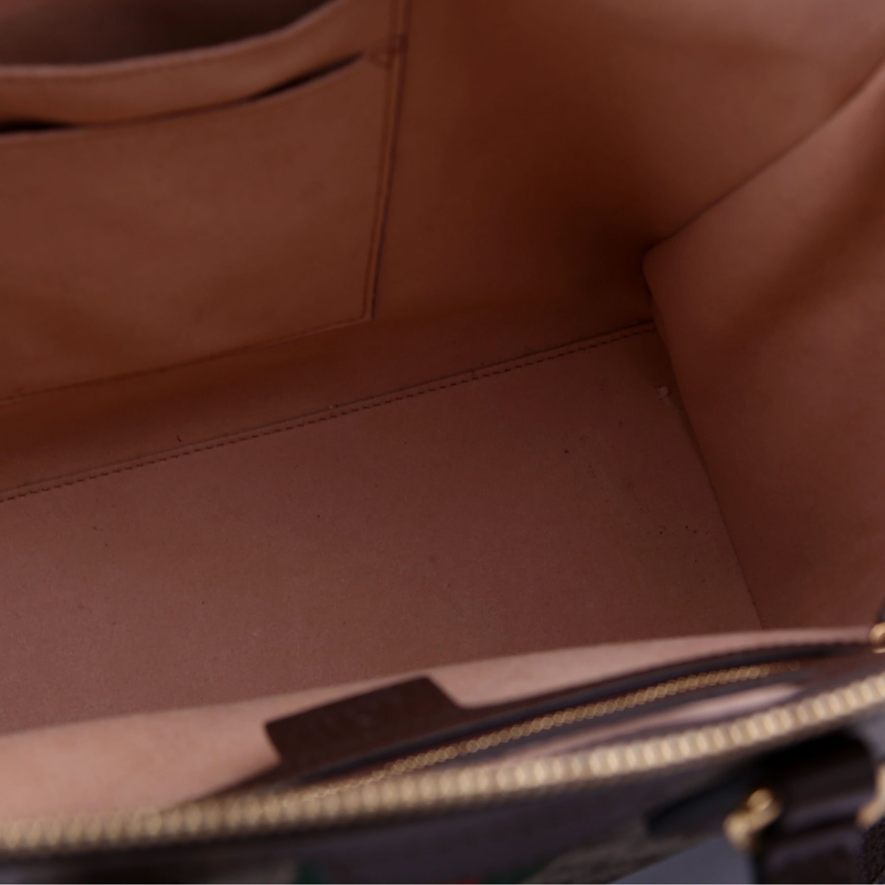 Interior: The interior shows no major wear and it features one zipper pocket and two open pockets.