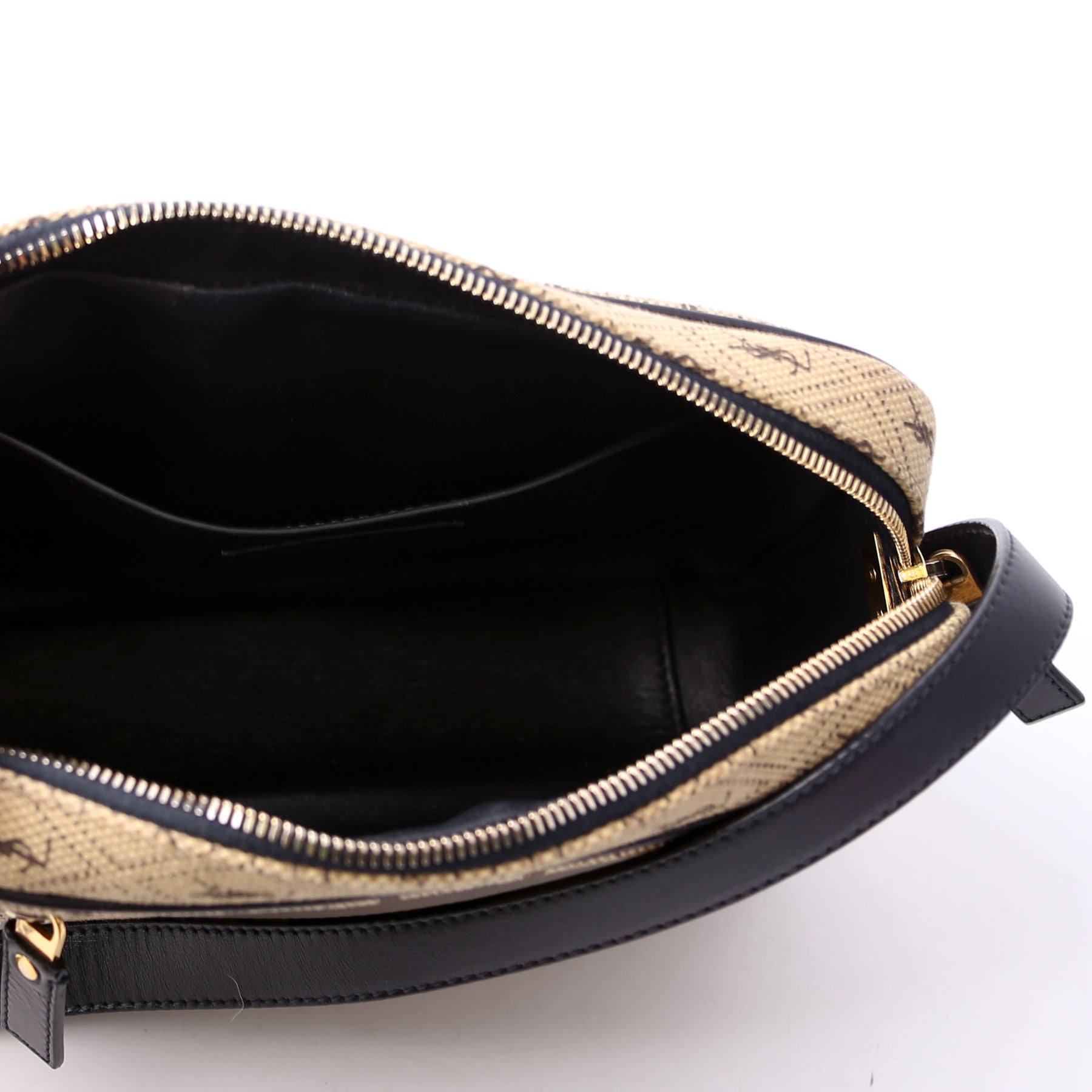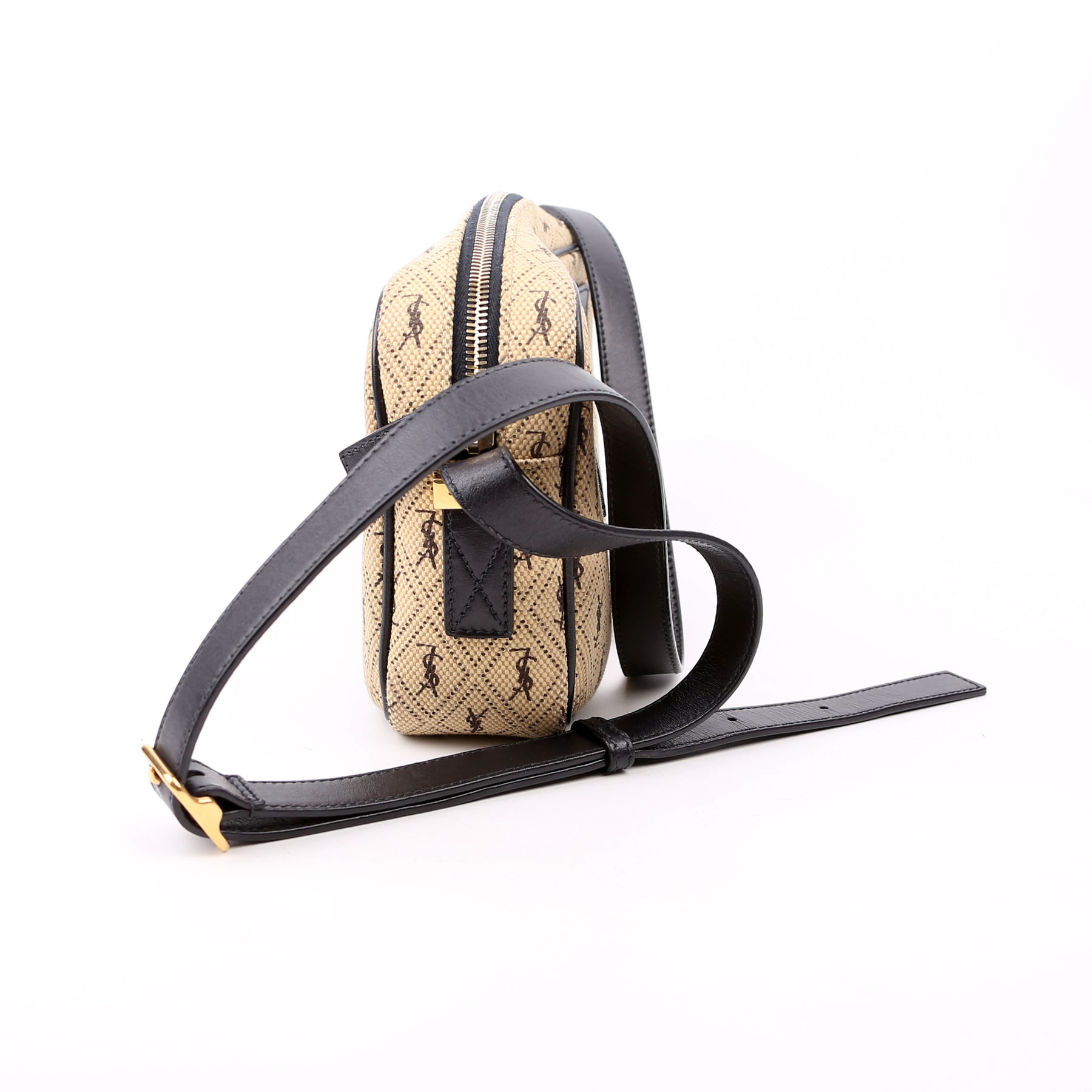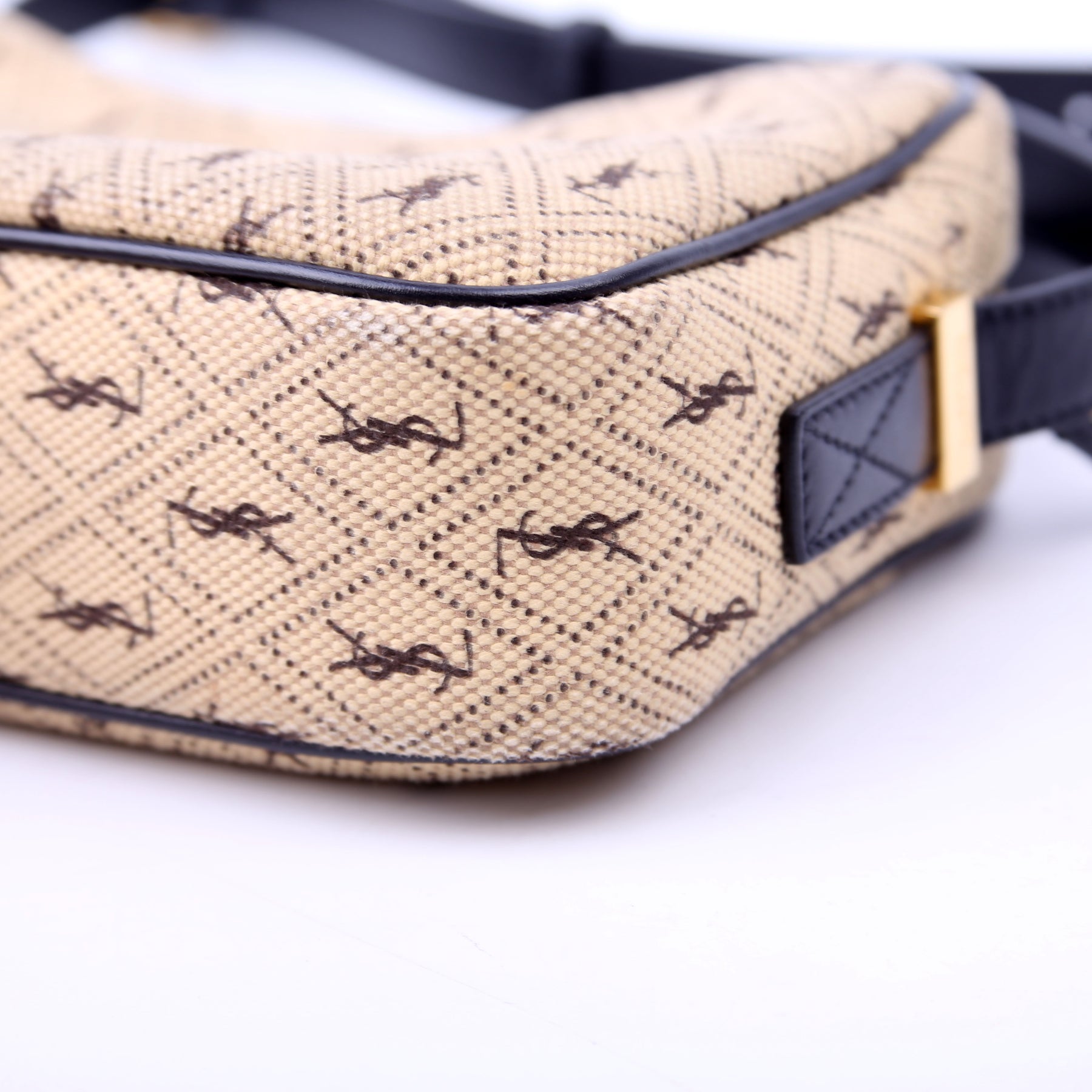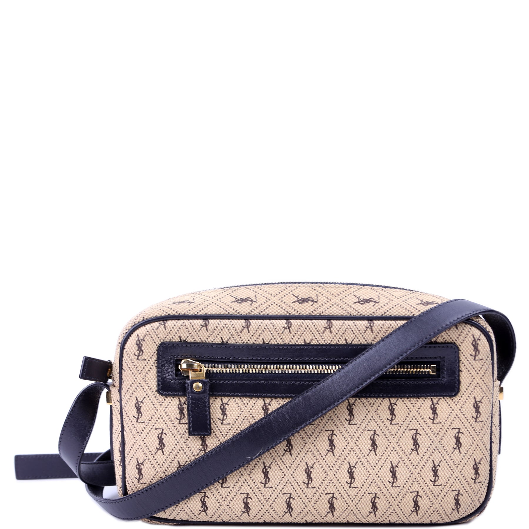 This pre-owned Saint Laurent All Over Logo Canvas Camera Bag is guaranteed 100% authentic. The exterior is in the classic Saint Laurent logo canvas.