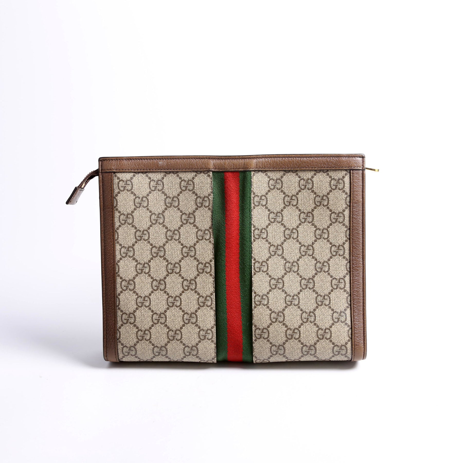 This pre-owned Gucci GG Supreme Ophidia Zip Pouch is guaranteed 100% authentic.