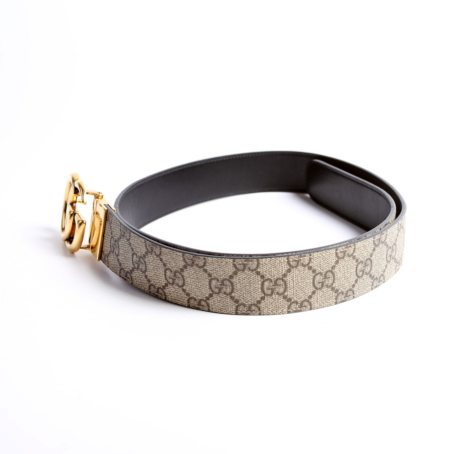 This pre-owned Gucci GG Marmont Reversible Supreme/Leather Belt is guaranteed 100% authentic. The exterior is in the classic Gucci GG Supreme coated canvas.