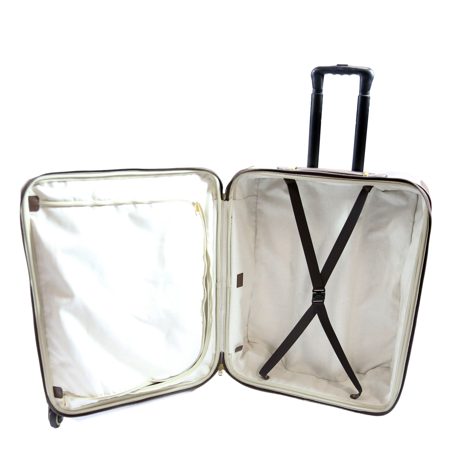 Exterior: There are minimal scuffs on the corners and the leather trim on the back has a small rip but the exterior coated canvas is free of major signs of wear. The exterior features one zipper pocket.