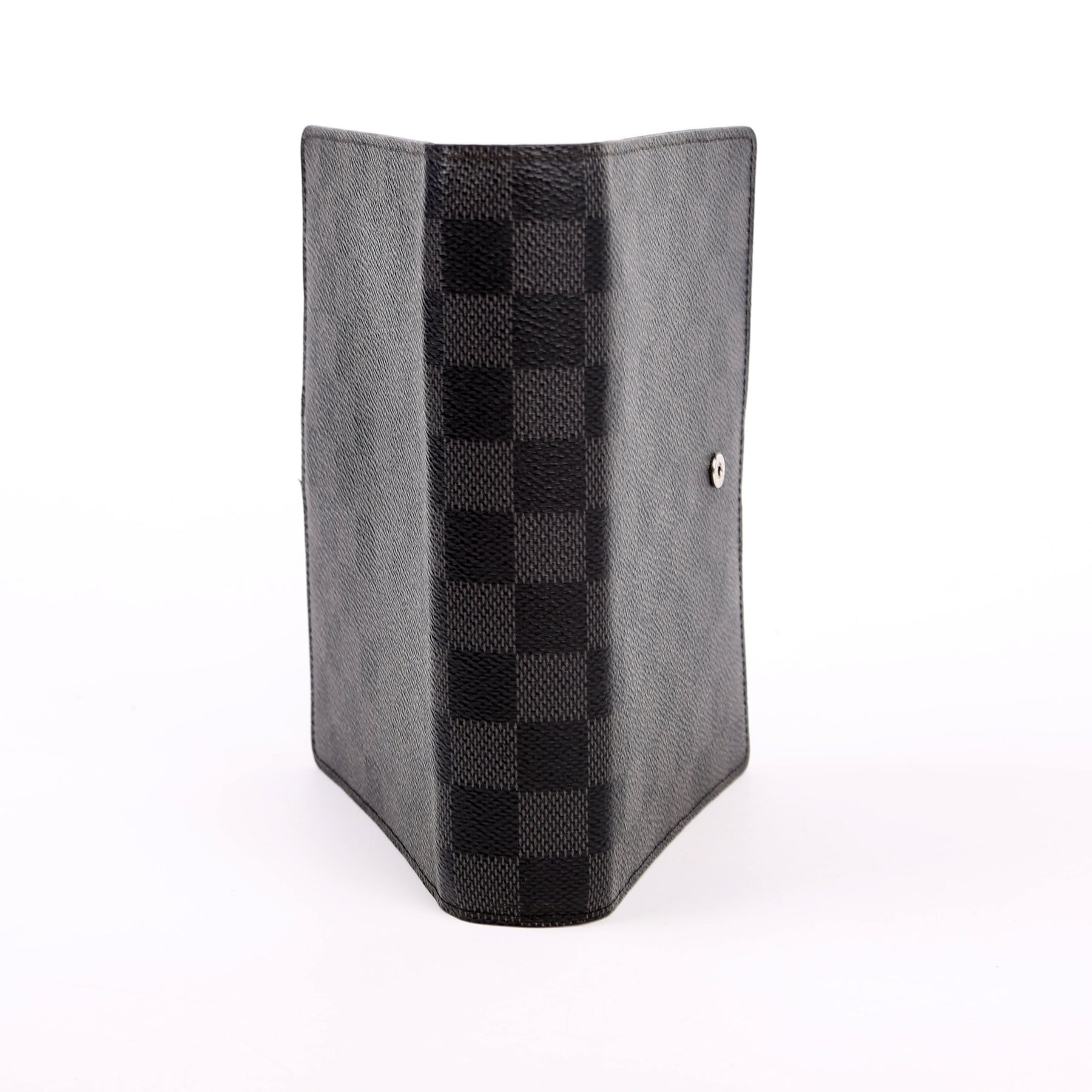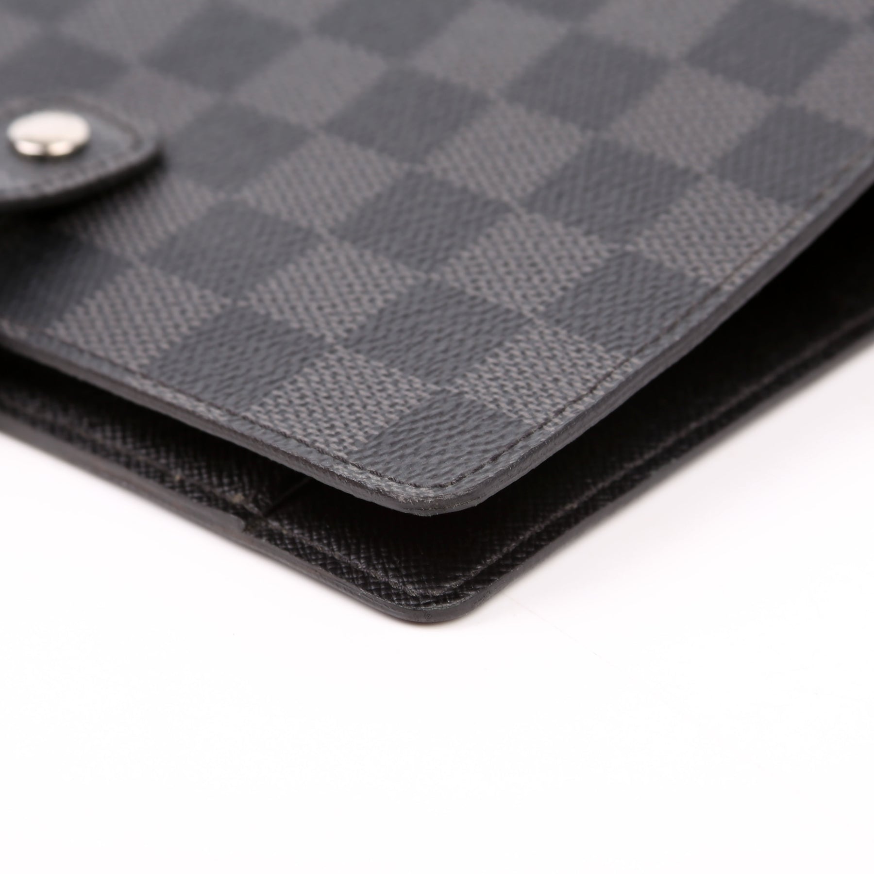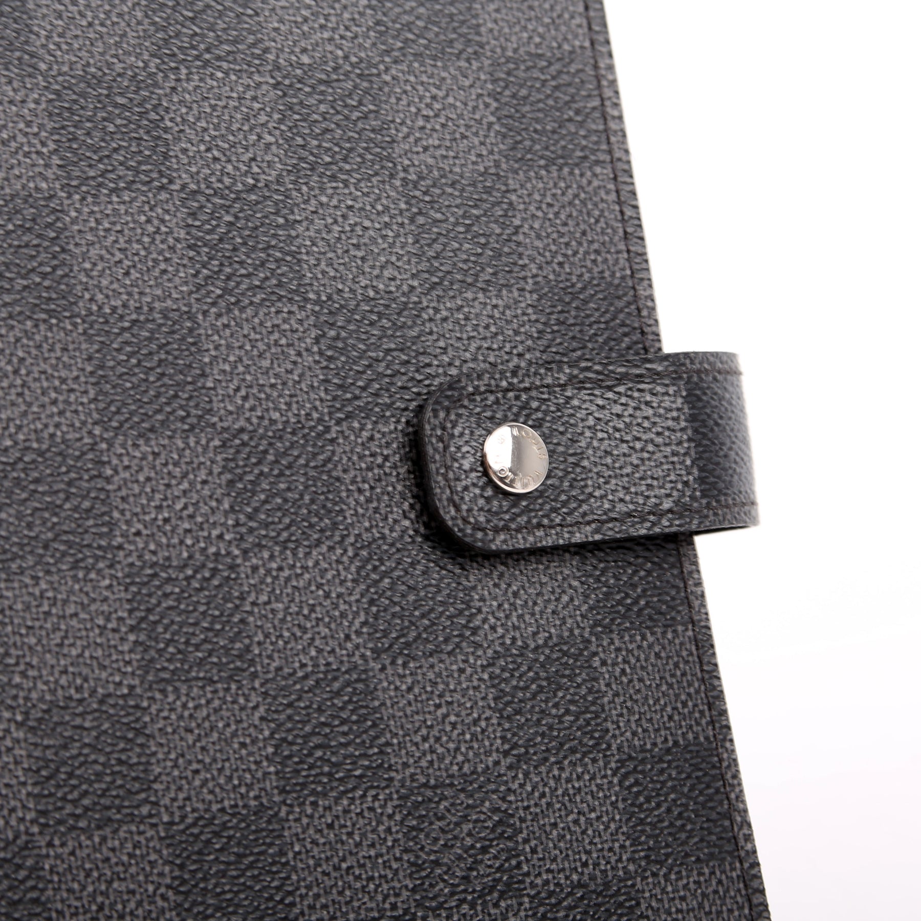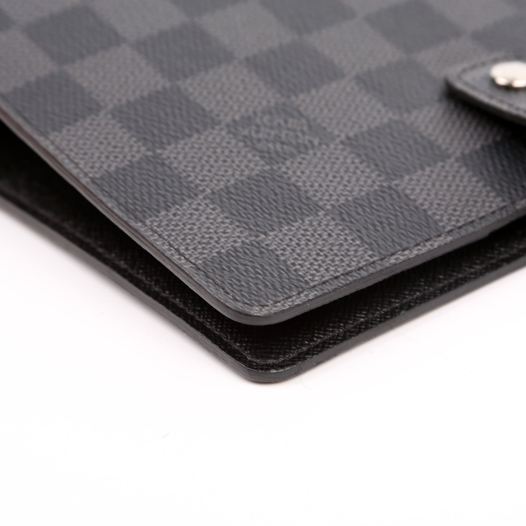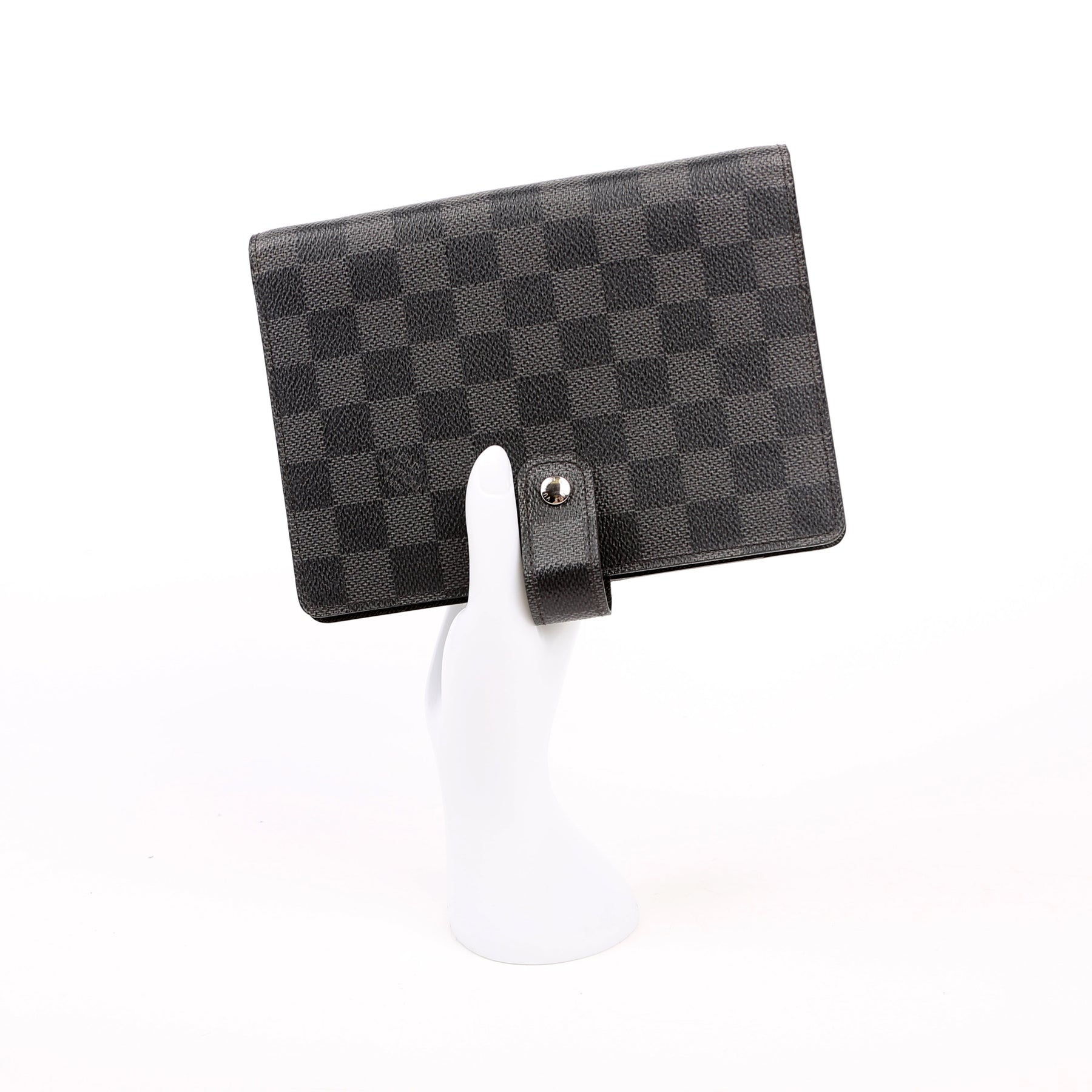 This pre-owned Louis Vuitton Agenda Medium Ring is guaranteed 100% authentic. The exterior is in the classic Damier Graphite canvas.