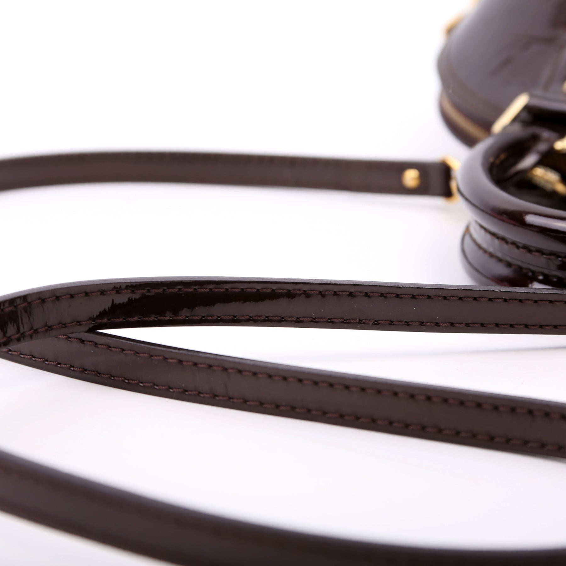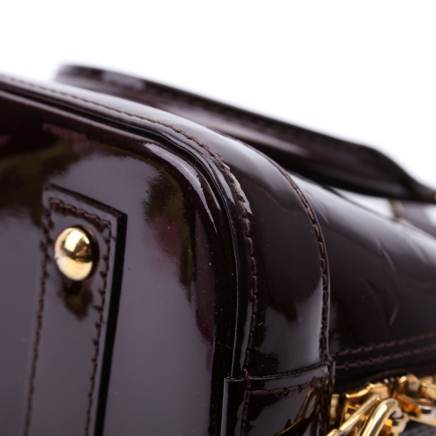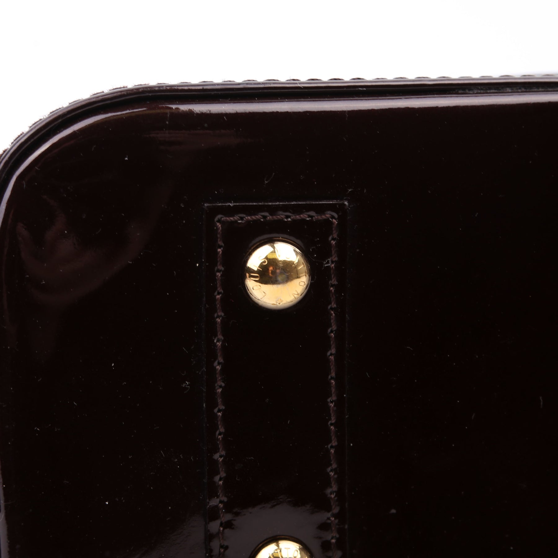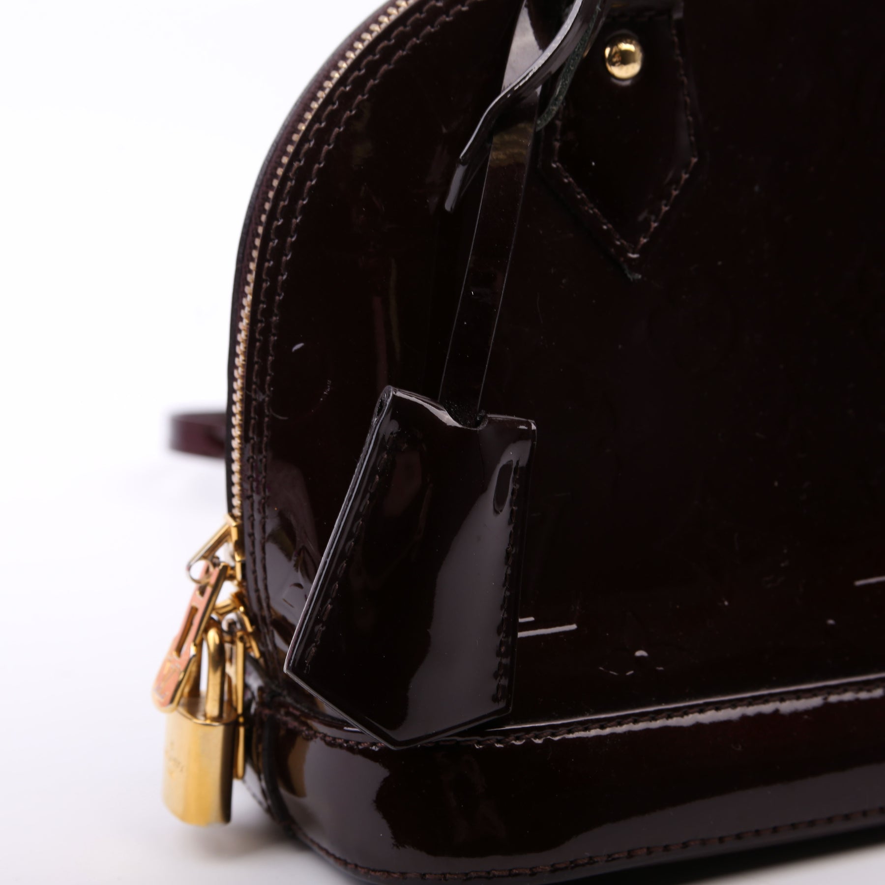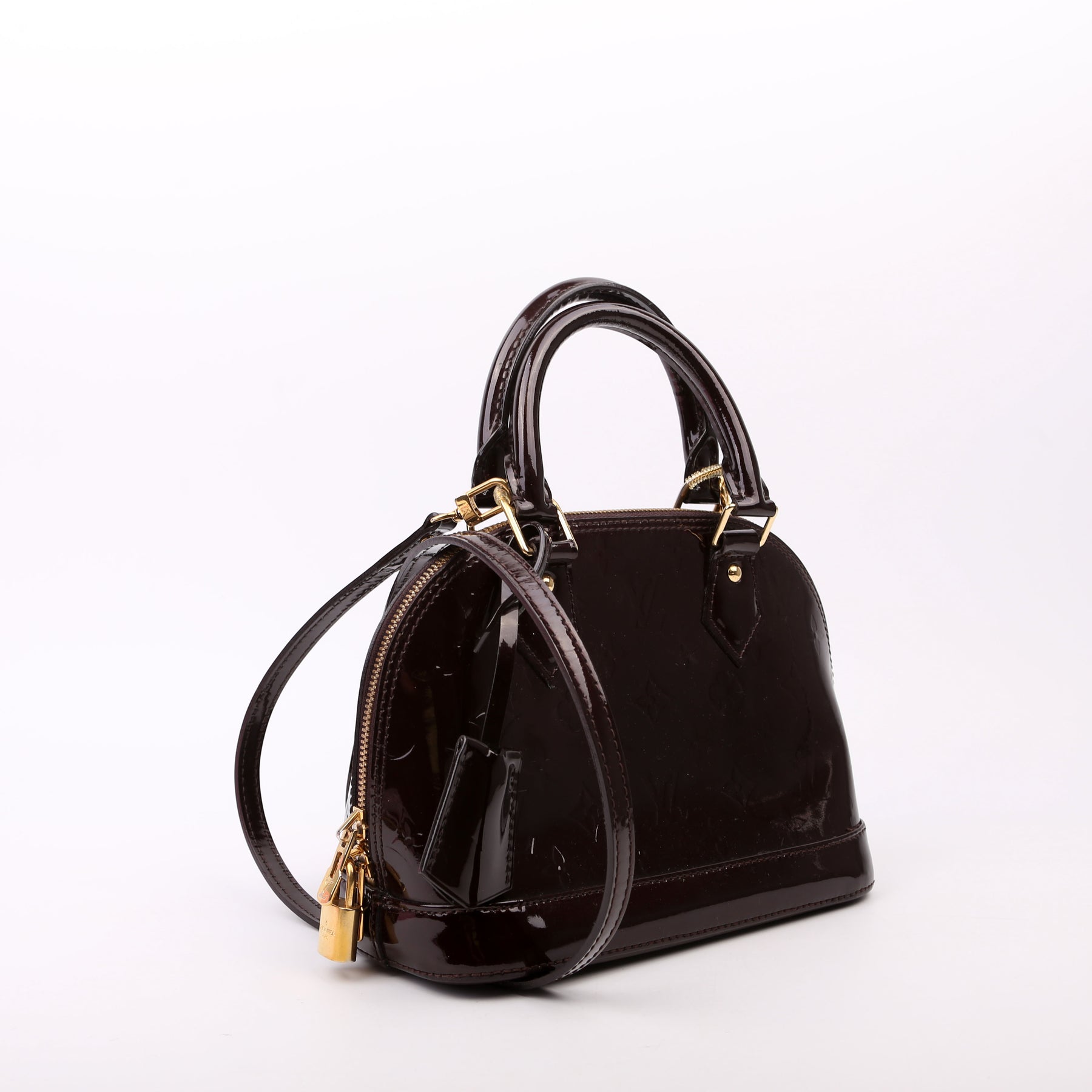 This pre-owned Louis Vuitton Alma BB is guaranteed 100% authentic. The exterior is in the classic Louis Vuitton Vernis leather.