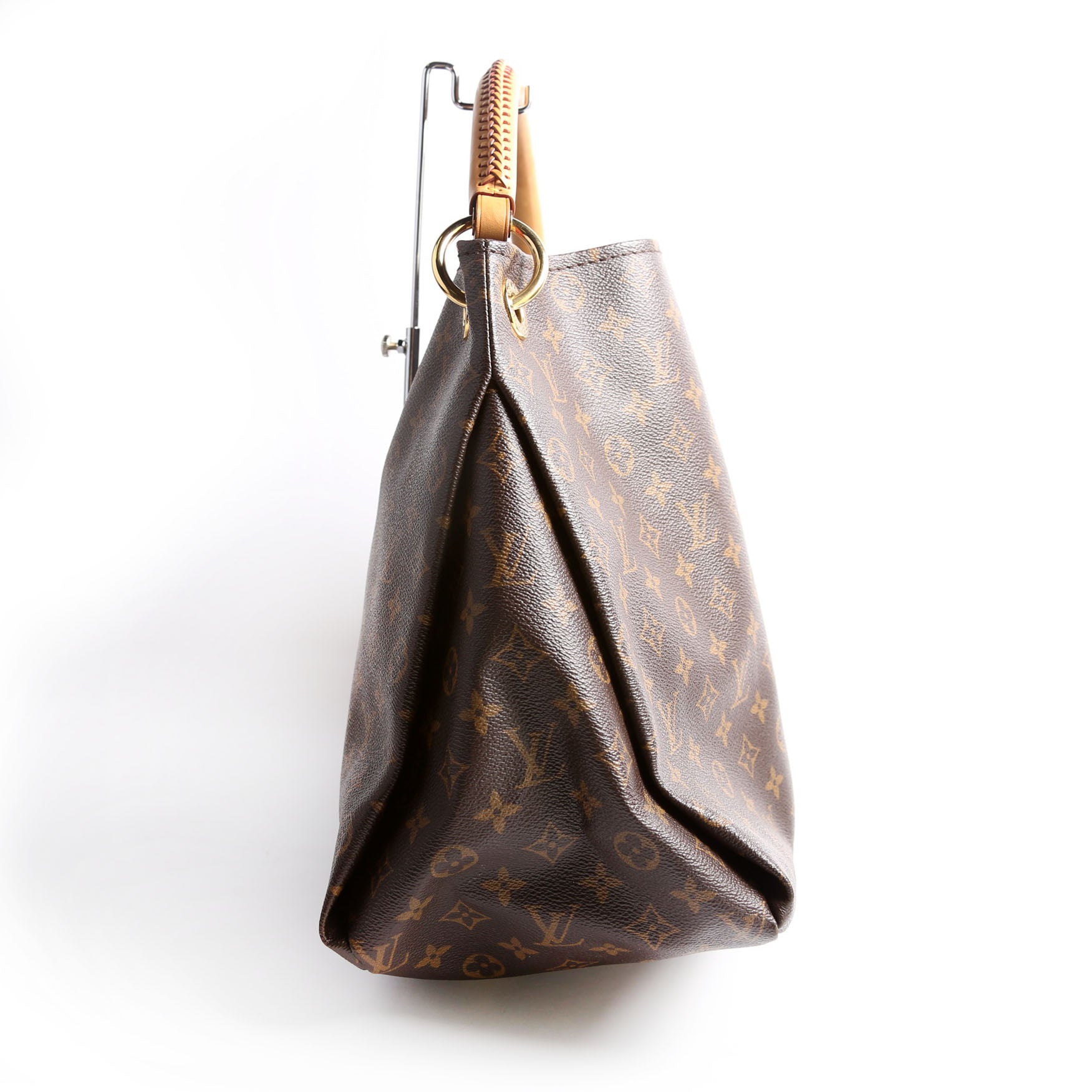 This pre-owned Louis Vuitton Artsy MM is guaranteed 100% authentic. The exterior is in the classic Louis Vuitton Monogram coated canvas.