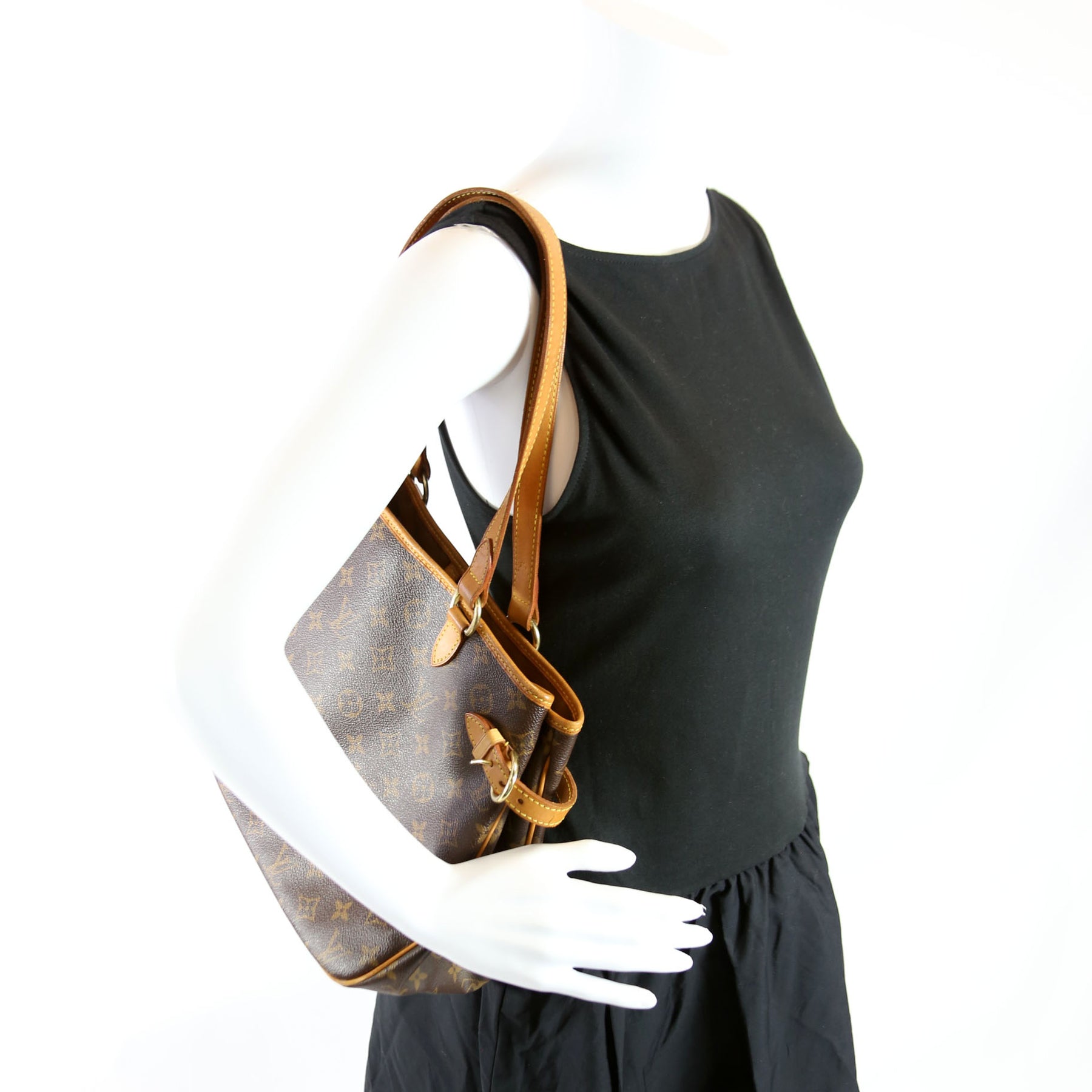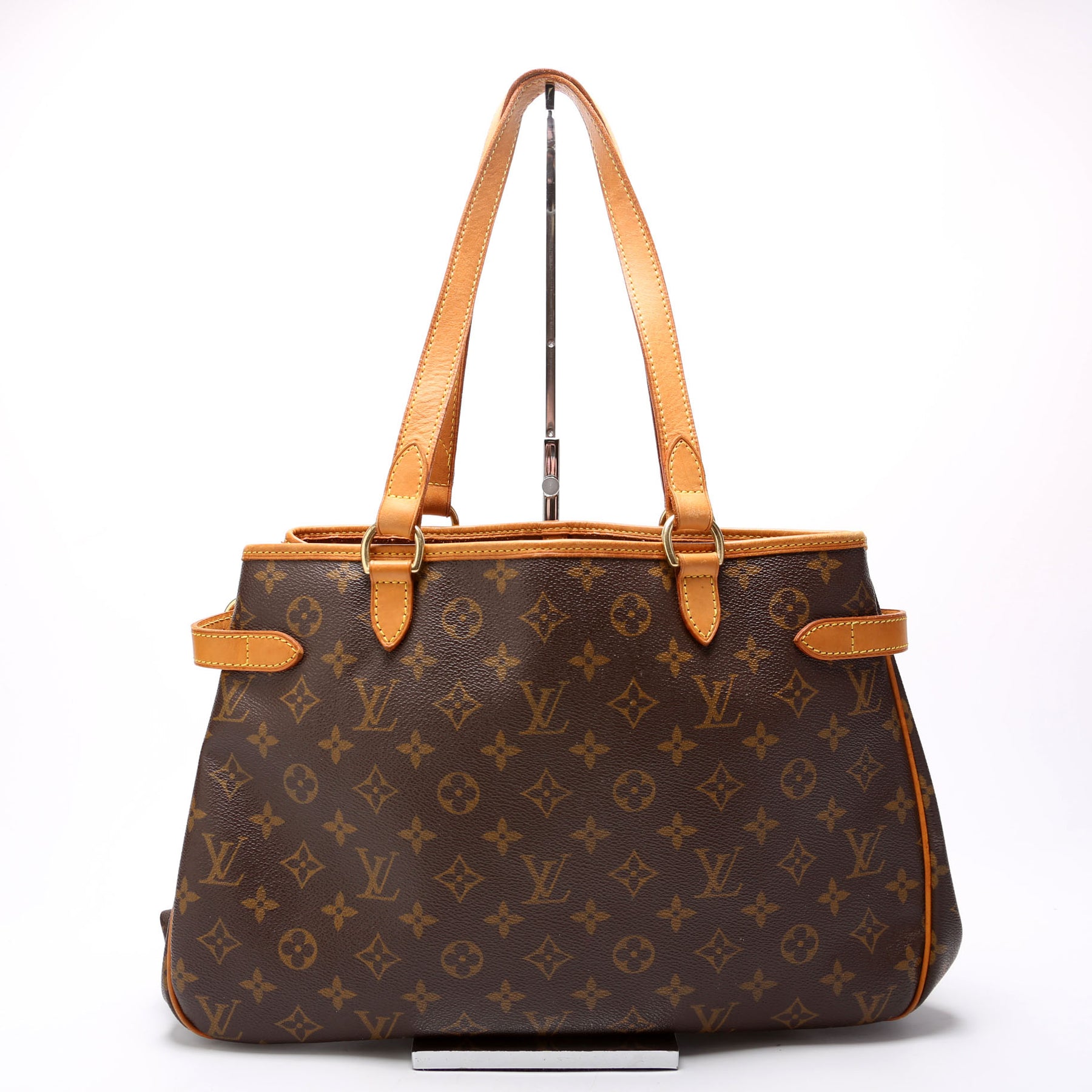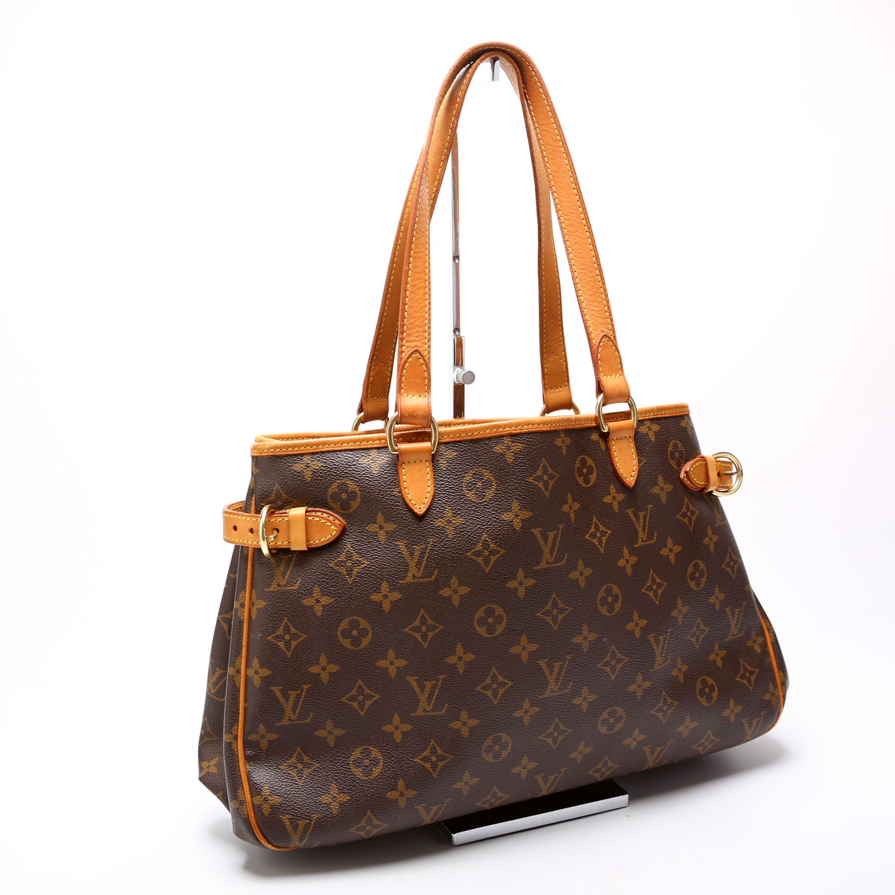 This pre-owned Louis Vuitton Batignolles Horizontal is guaranteed 100% authentic. The exterior is in the classic Louis Vuitton Monogram coated canvas.