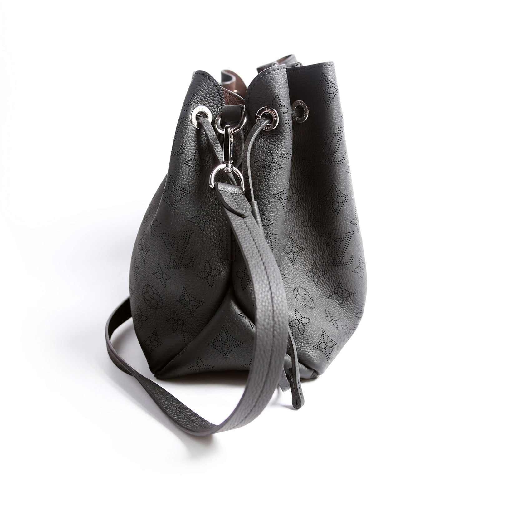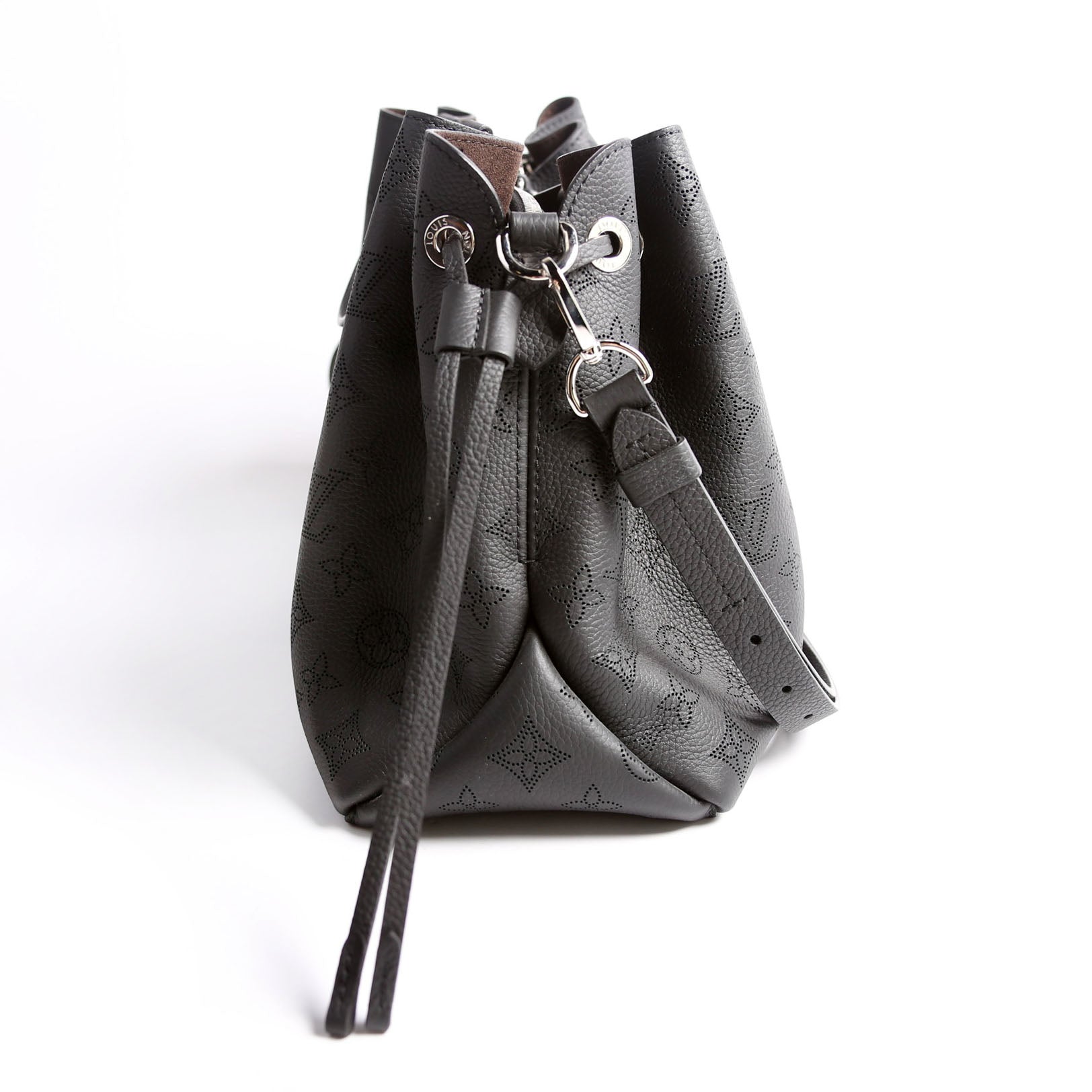 This pre-owned Louis Vuitton Bella Tote is guaranteed 100% authentic. The exterior is in the classic Louis Vuitton Mahina leather.