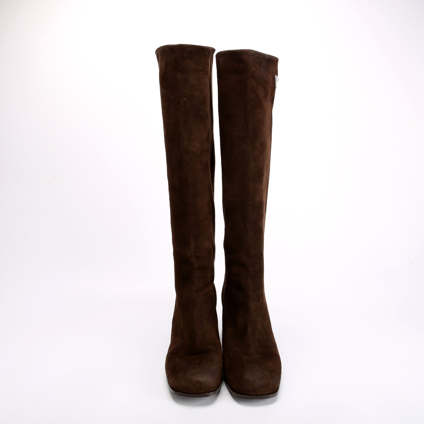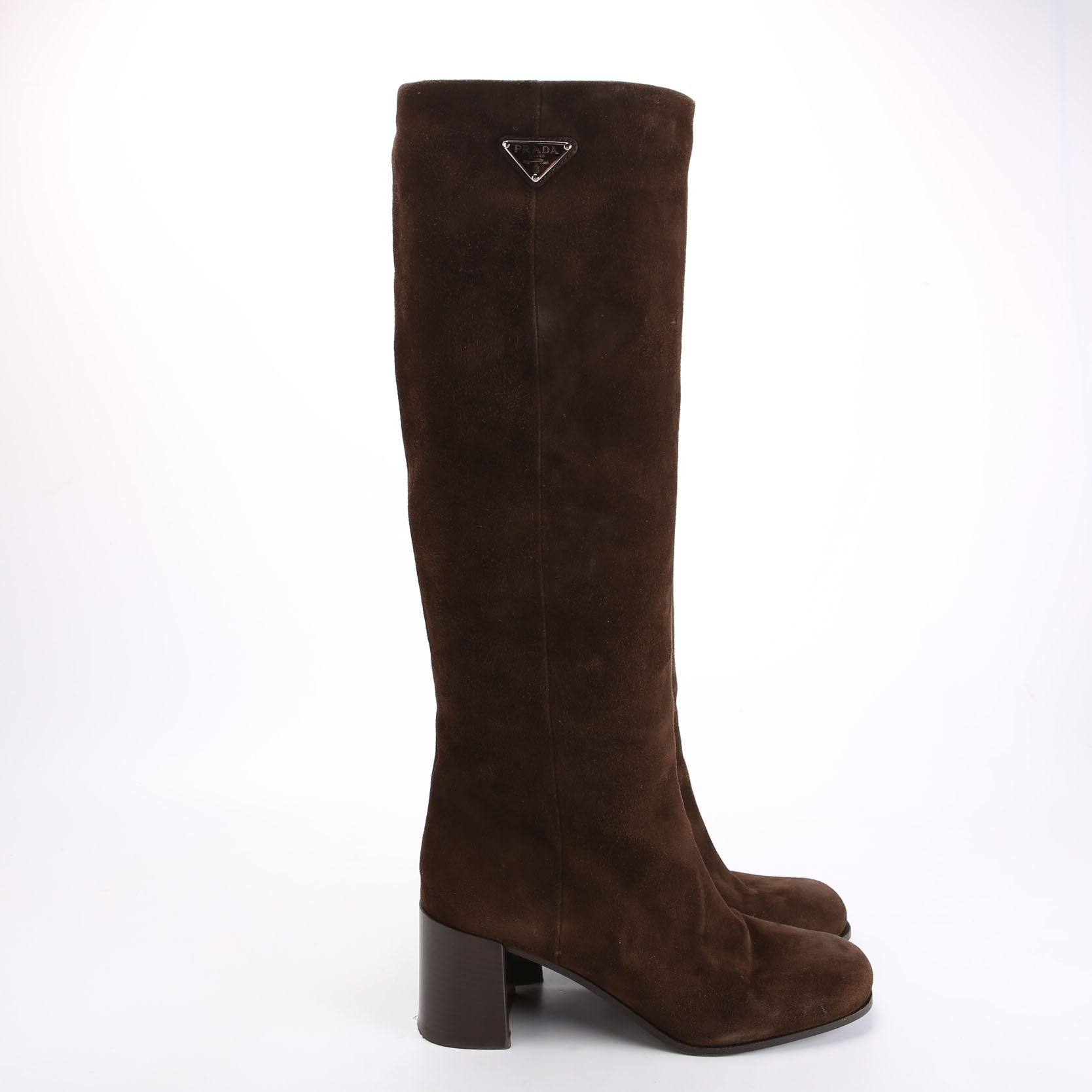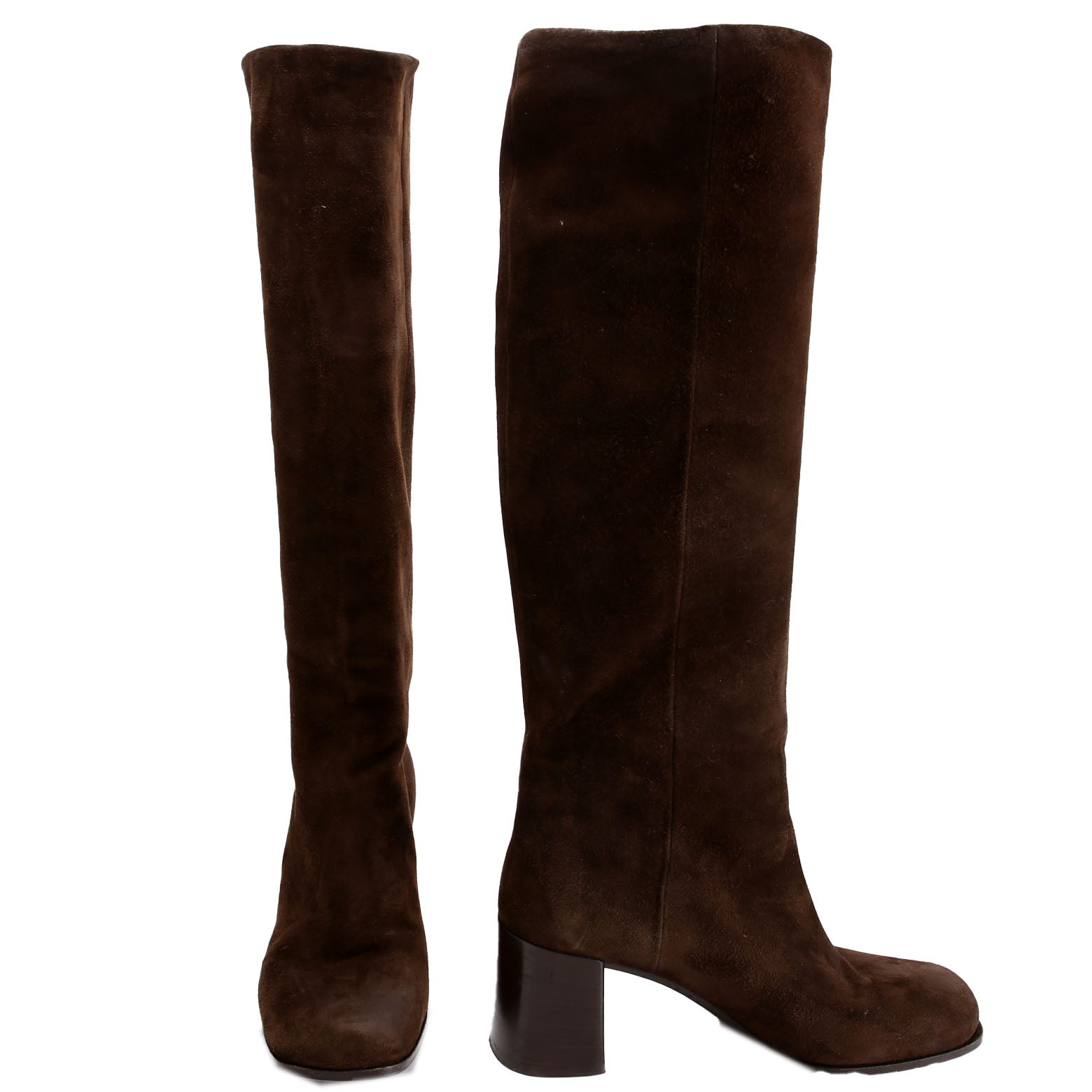 These pre-owned Prada Block Heel Suede Knee Boots are guaranteed 100% authentic.