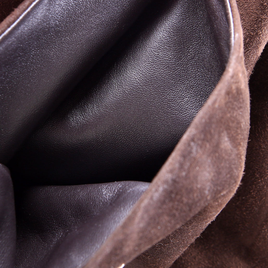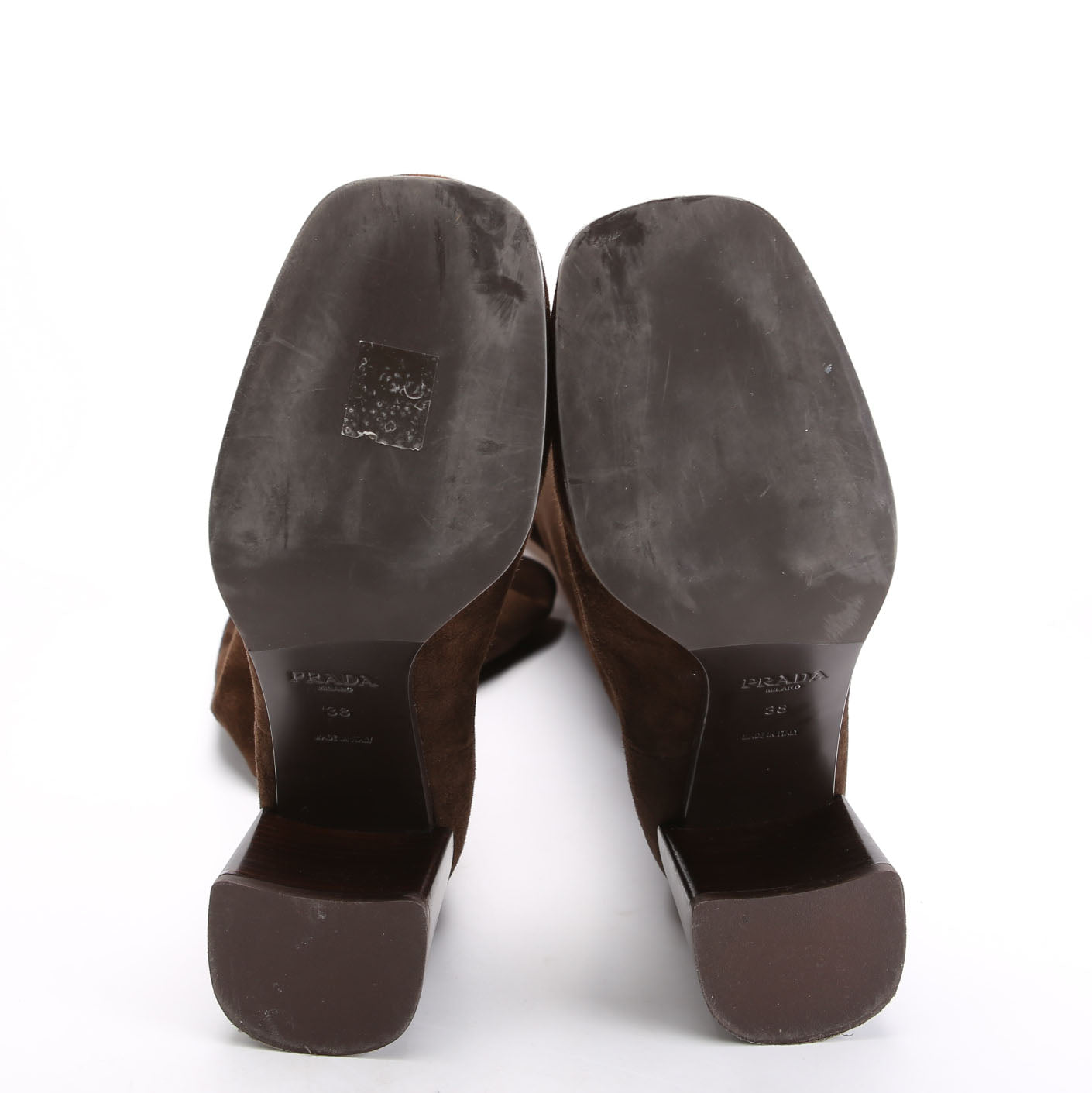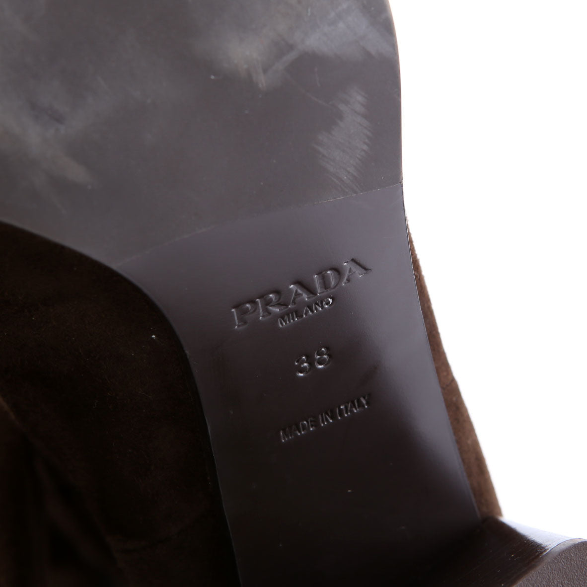 These pre-owned Prada Block Heel Suede Knee Boots are guaranteed 100% authentic.