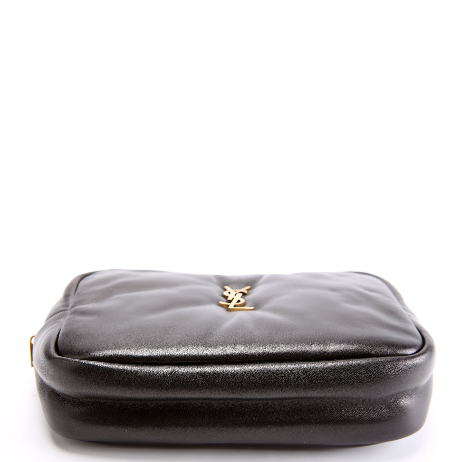 This pre-owned Saint Laurent Calypso Cosmetic Pouch is guaranteed 100% authentic. The exterior is in the classic Saint Laurent Lambskin leather.