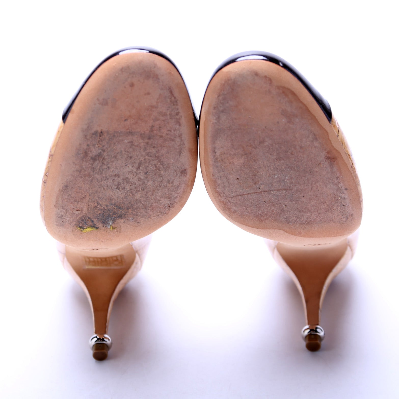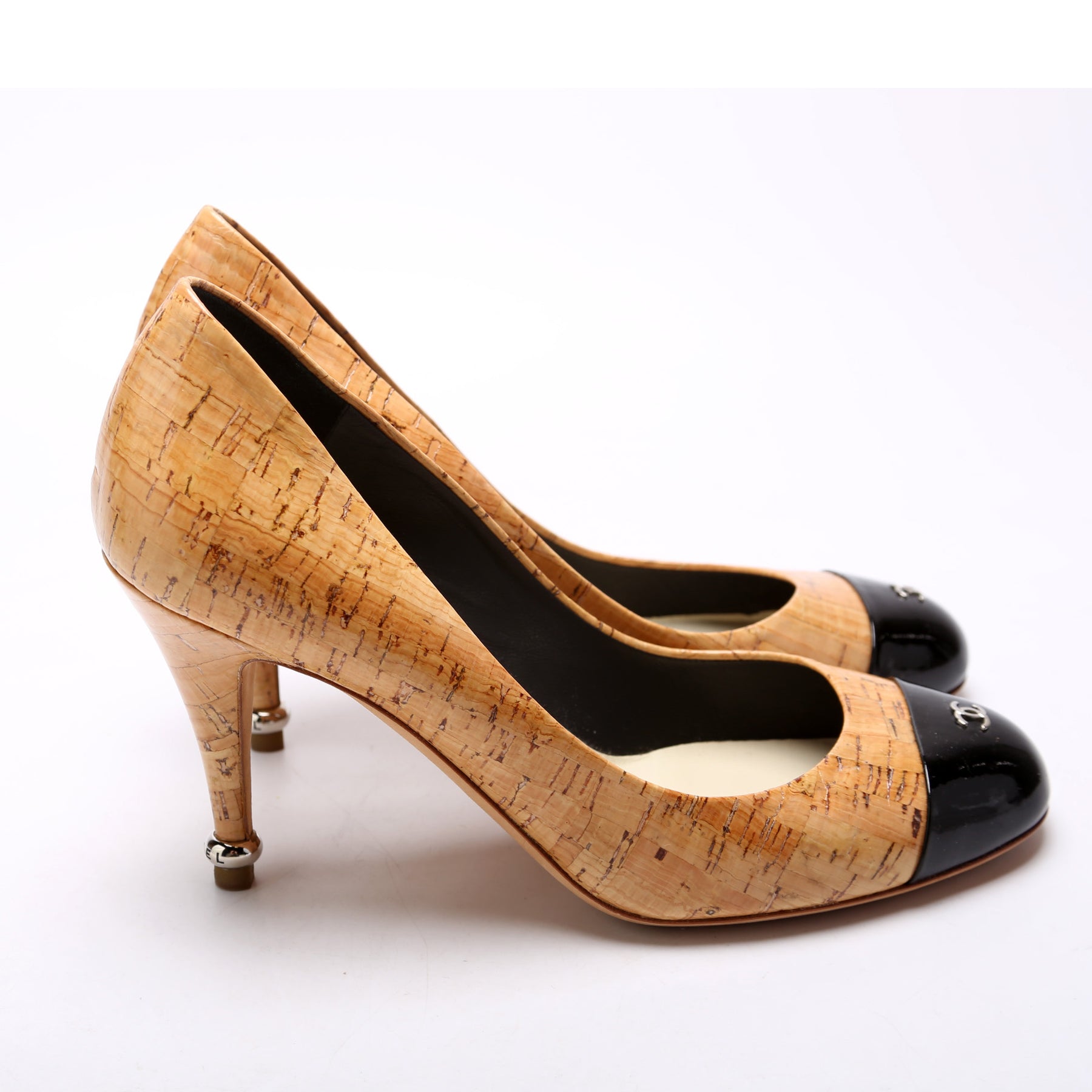 These pre-owned Chanel Cap Toe Cork Round Toe Pumps are guaranteed 100% authentic.