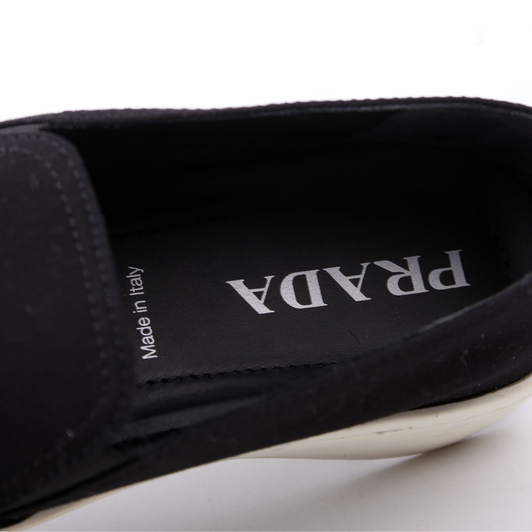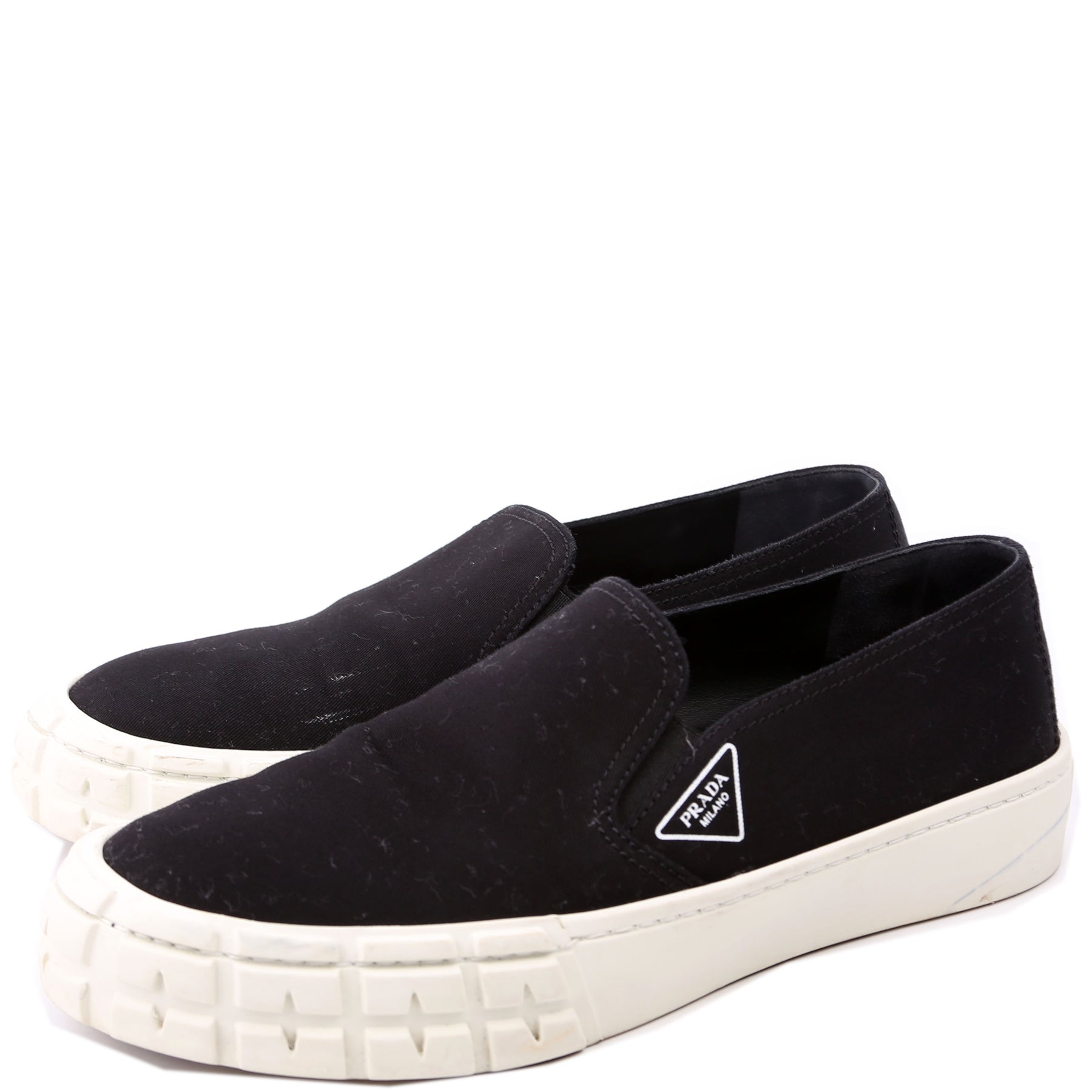 These pre-owned Prada Cassetta Wheel Slip-On Sneakers are guaranteed 100% authentic.