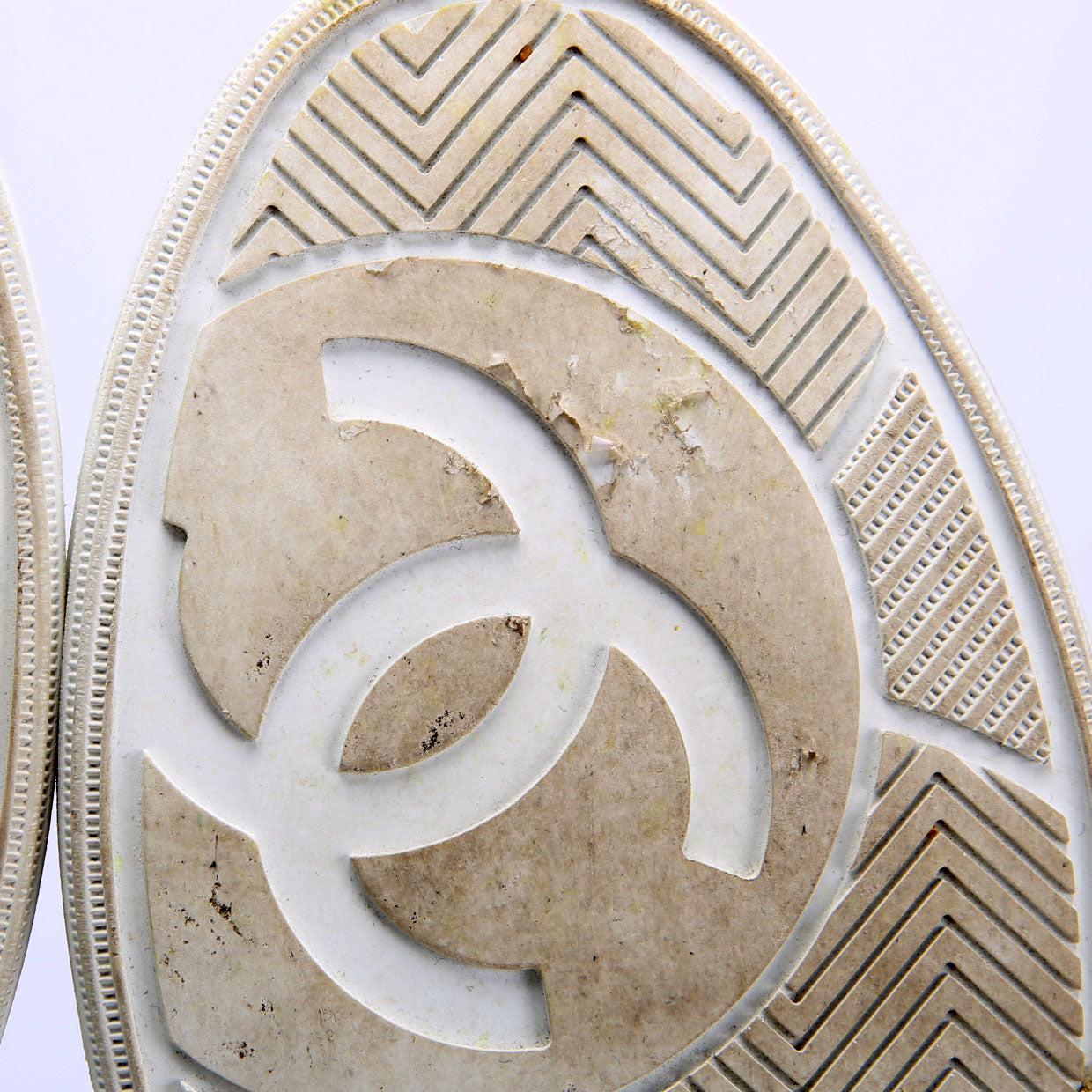 These pre-owned Chanel CC Logo Calfskin Sneakers are guaranteed 100% authentic.