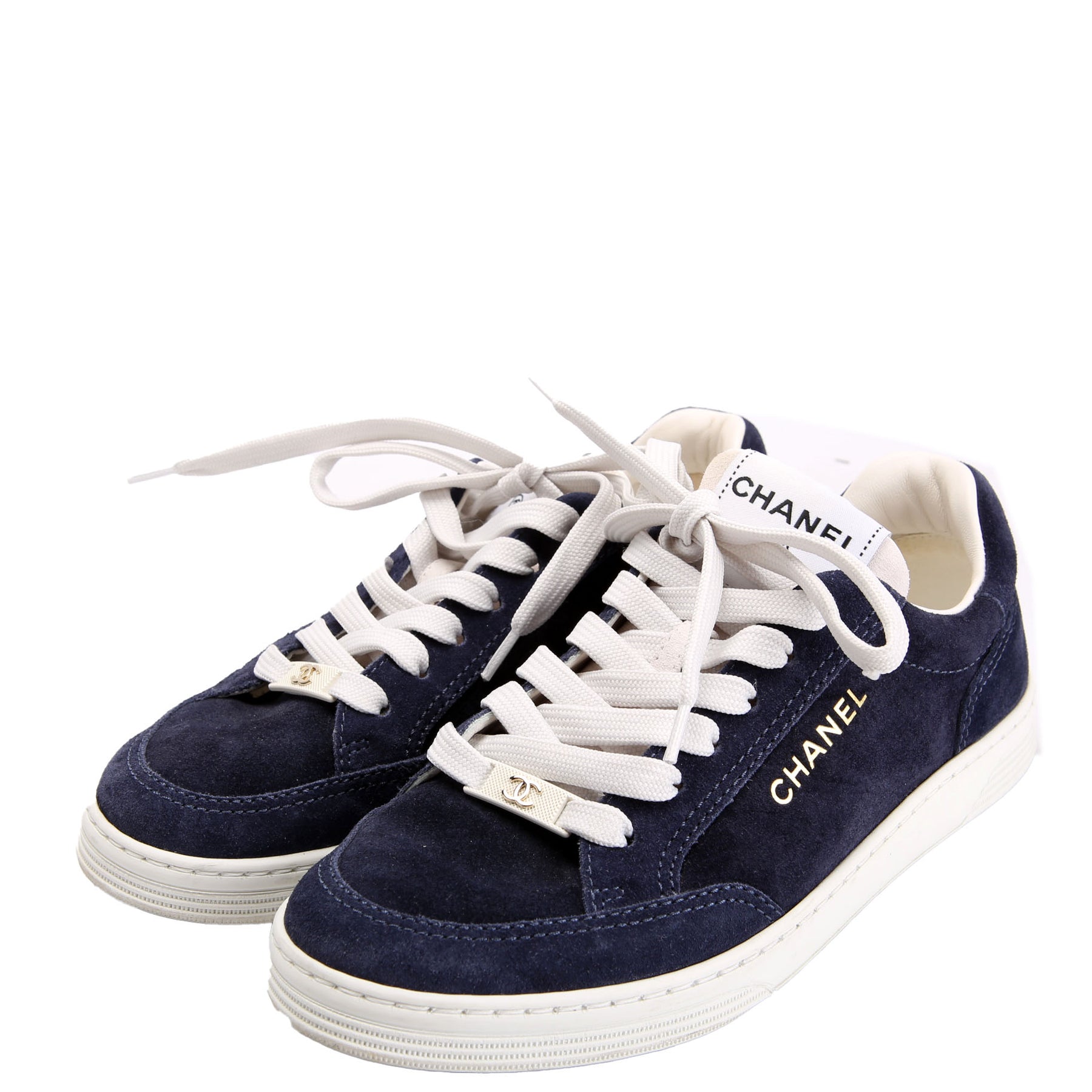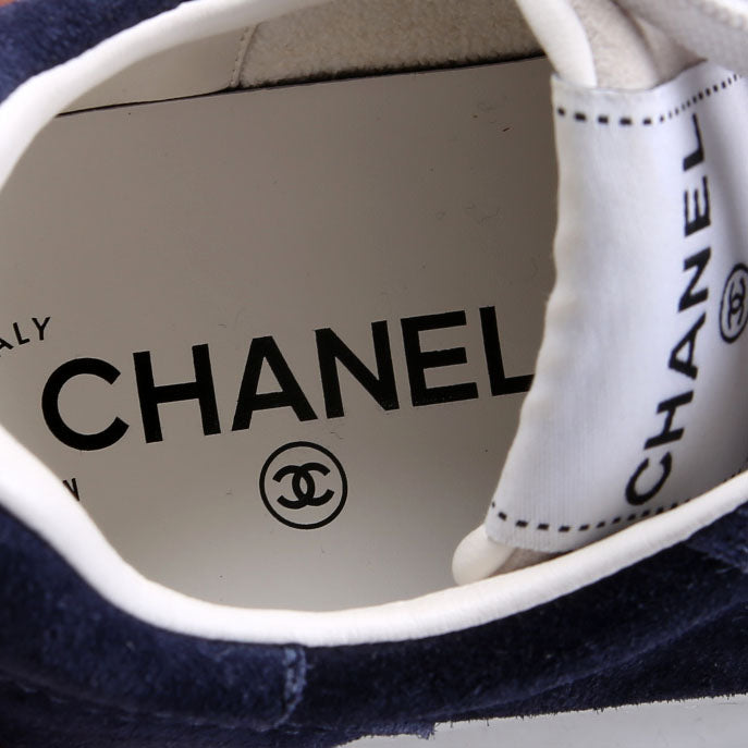This pre-owned Chanel CC Logo Suede Sneakers are guaranteed 100% authentic.