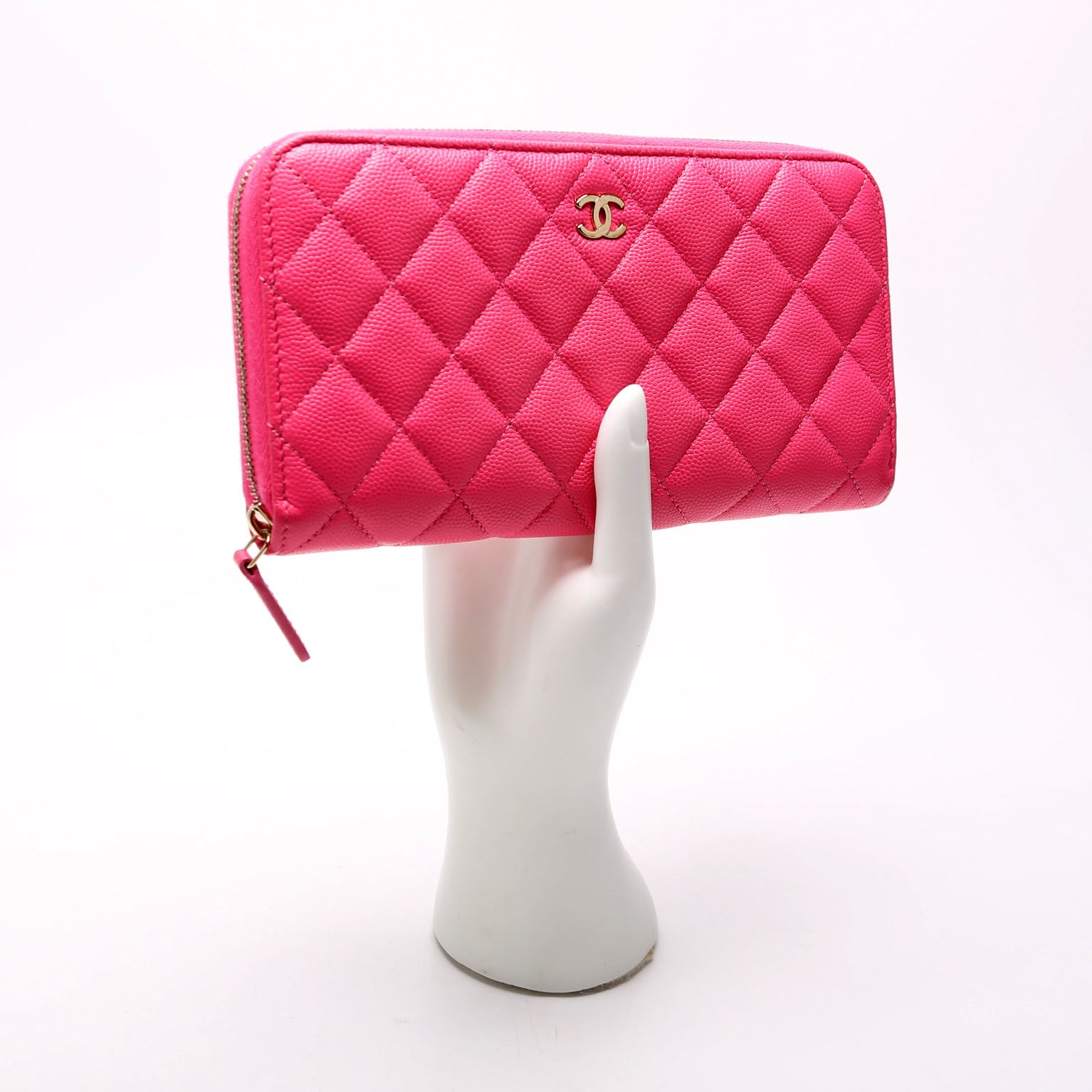 This pre-owned Chanel Long Zip Around Wallet Caviar RFID is guaranteed 100% authentic. The exterior is in the classic Chanel caviar leather.