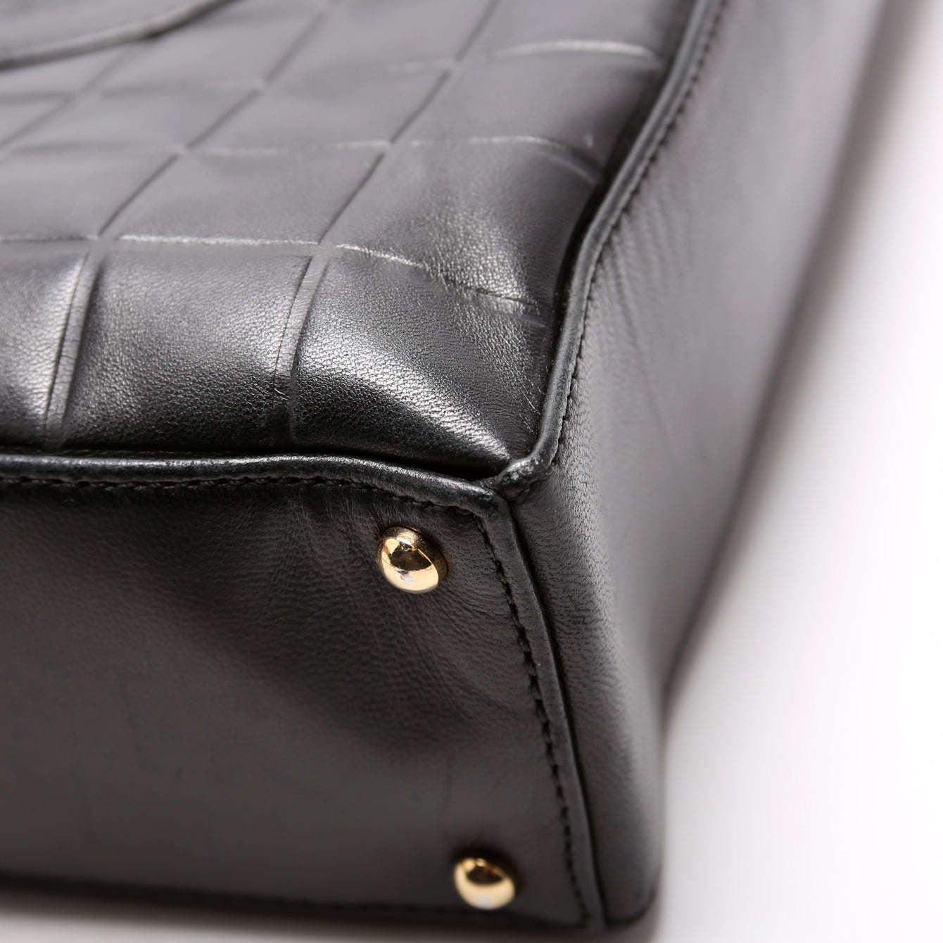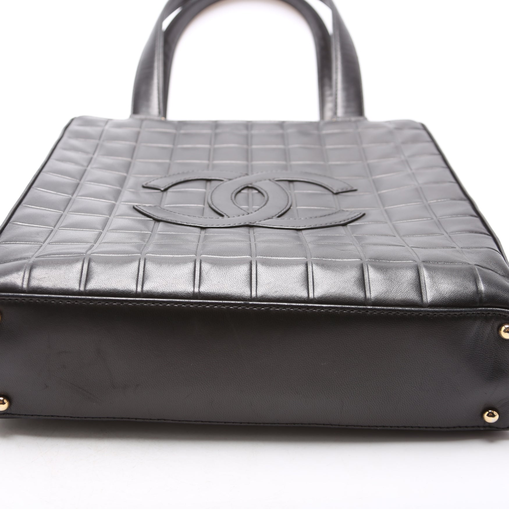 This pre-owned Chanel Chocolate Bar Vertical Tote Lambskin is guaranteed 100% authentic.