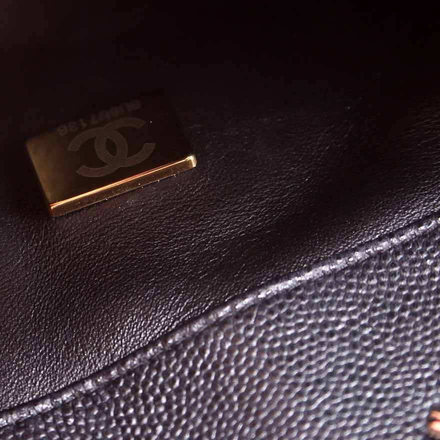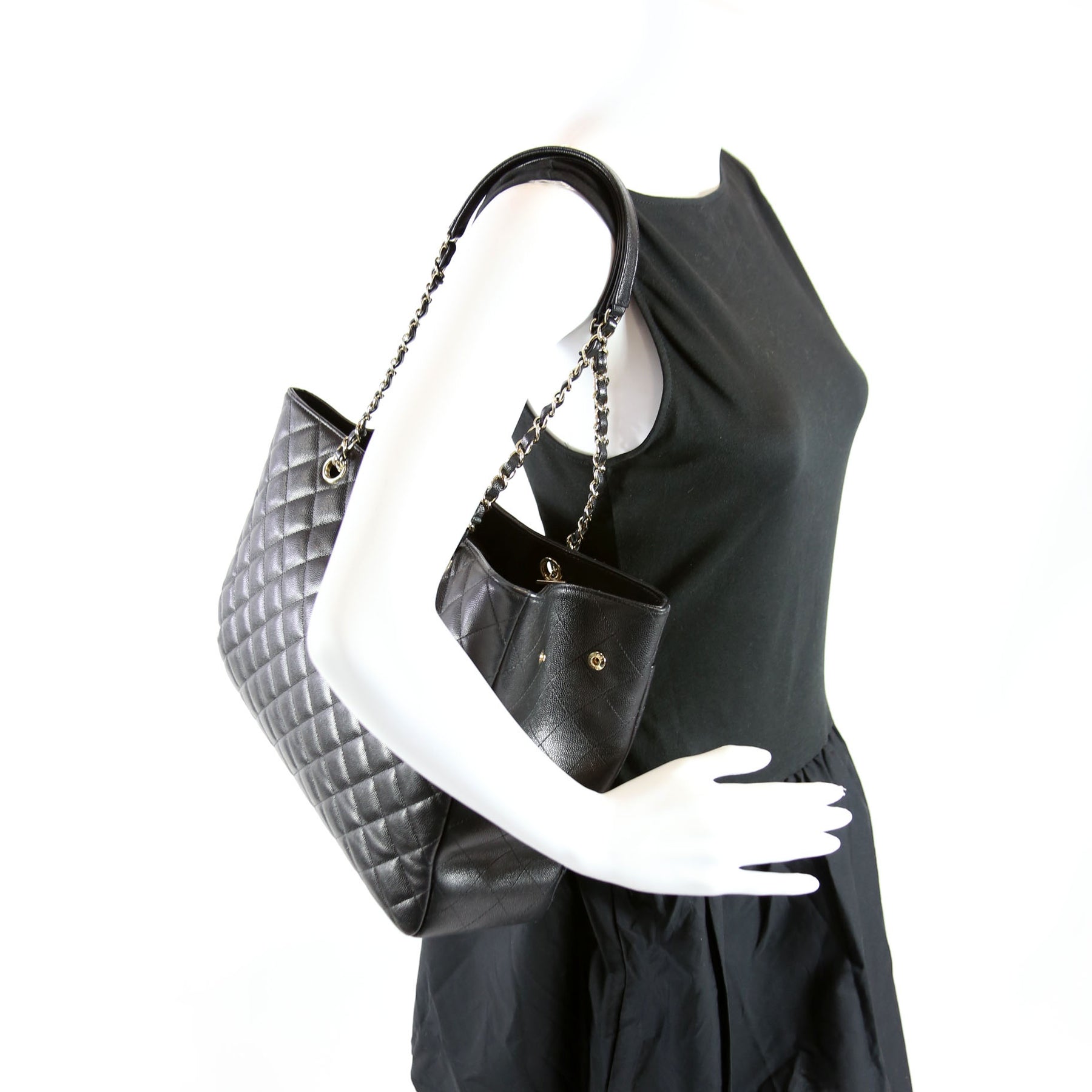 This pre-owned Chanel Classic CC Shopping Tote Caviar RFID is guaranteed 100% authentic. The exterior is in the classic Chanel Caviar Leather.