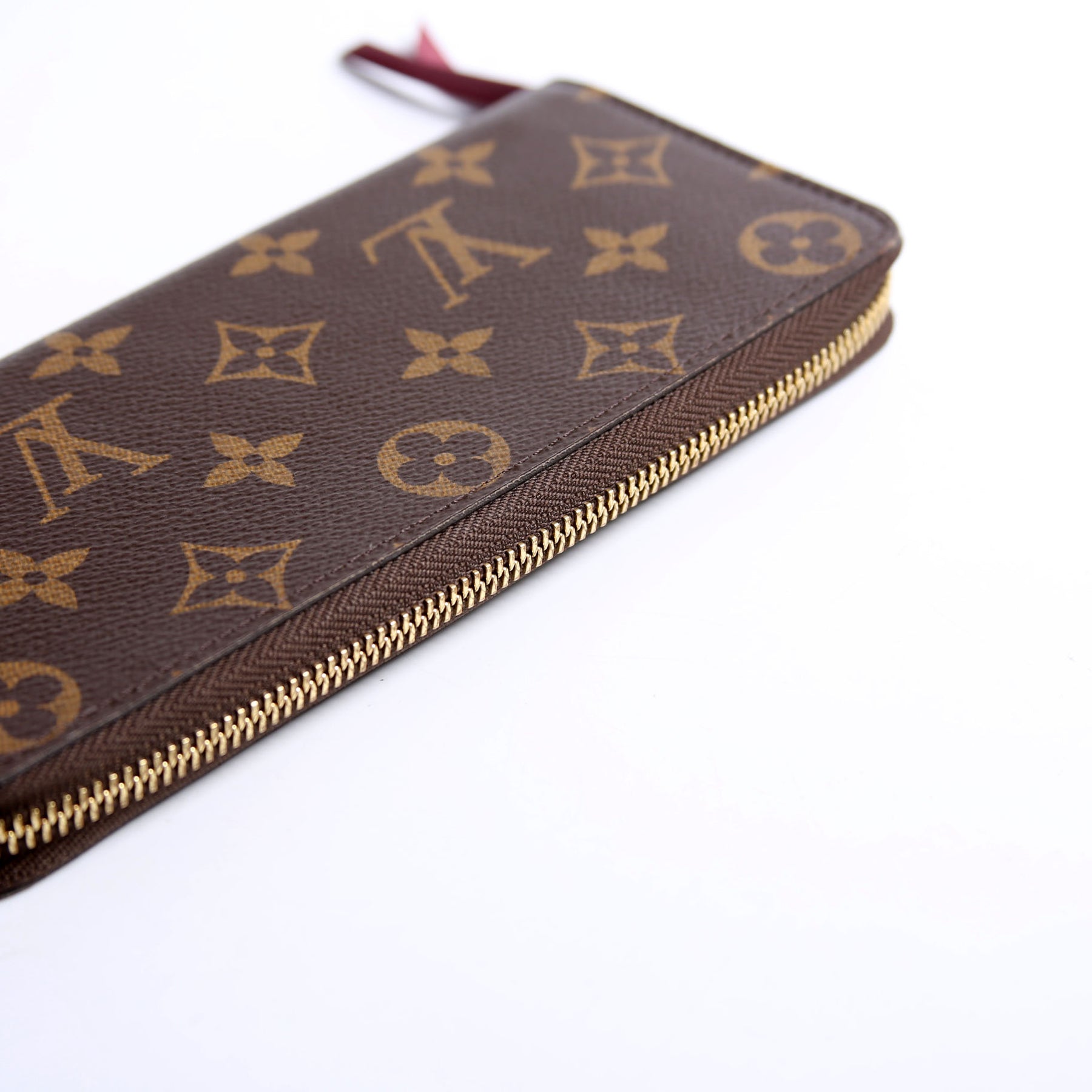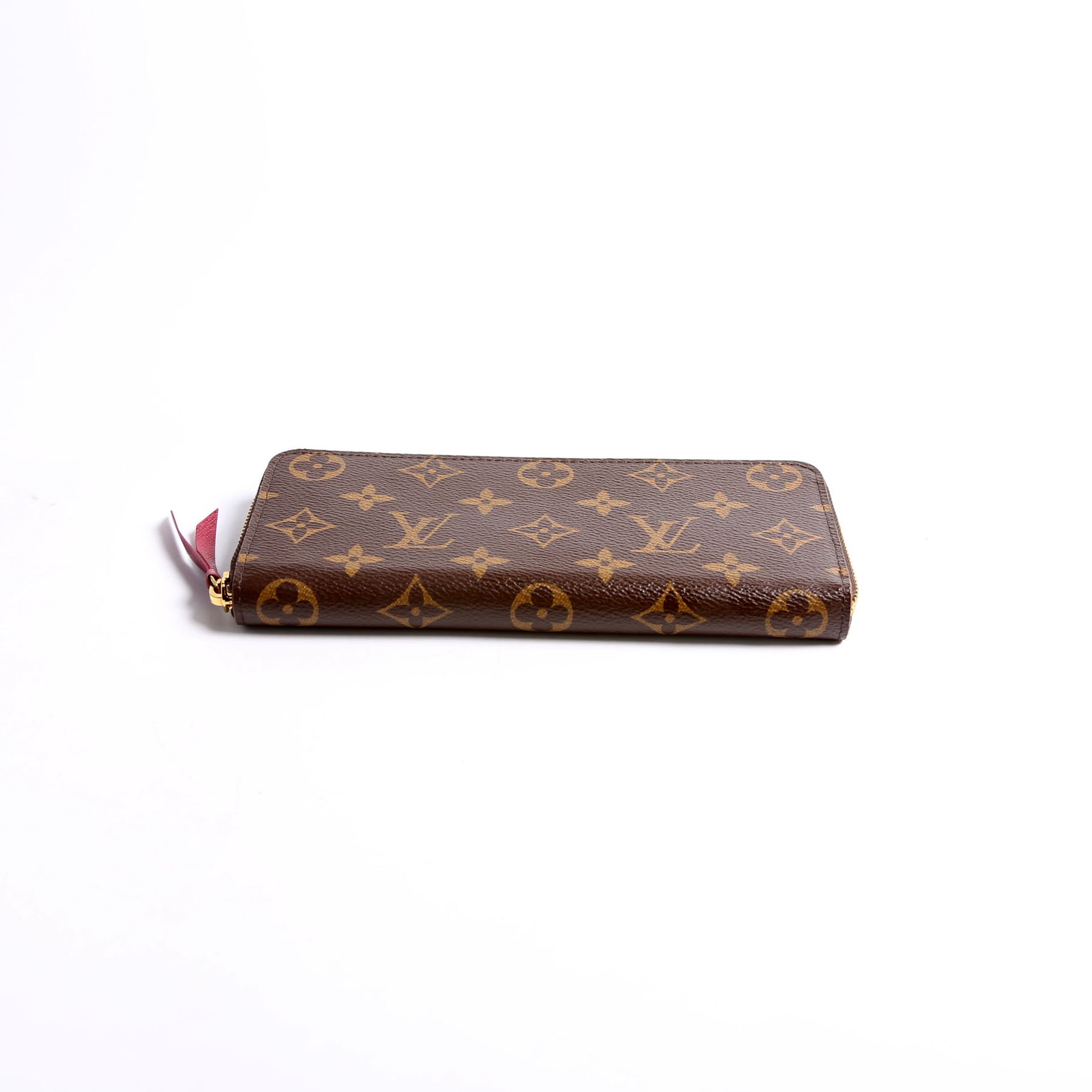 This pre-owned Louis Vuitton Clemence Wallet is guaranteed 100% authentic. The exterior is in the classic Louis Vuitton Monogram coated canvas.