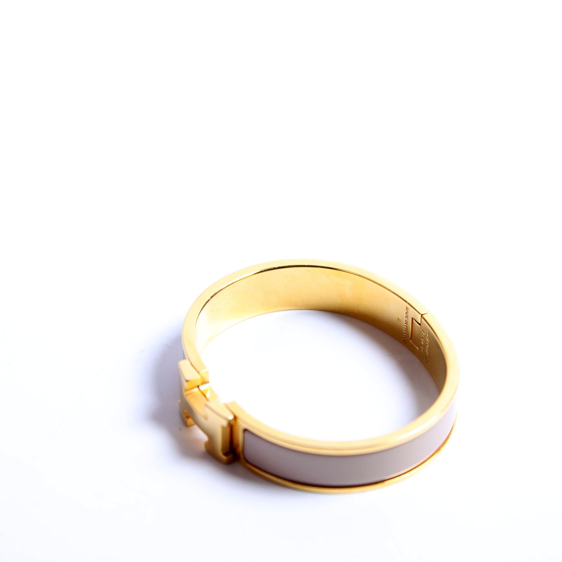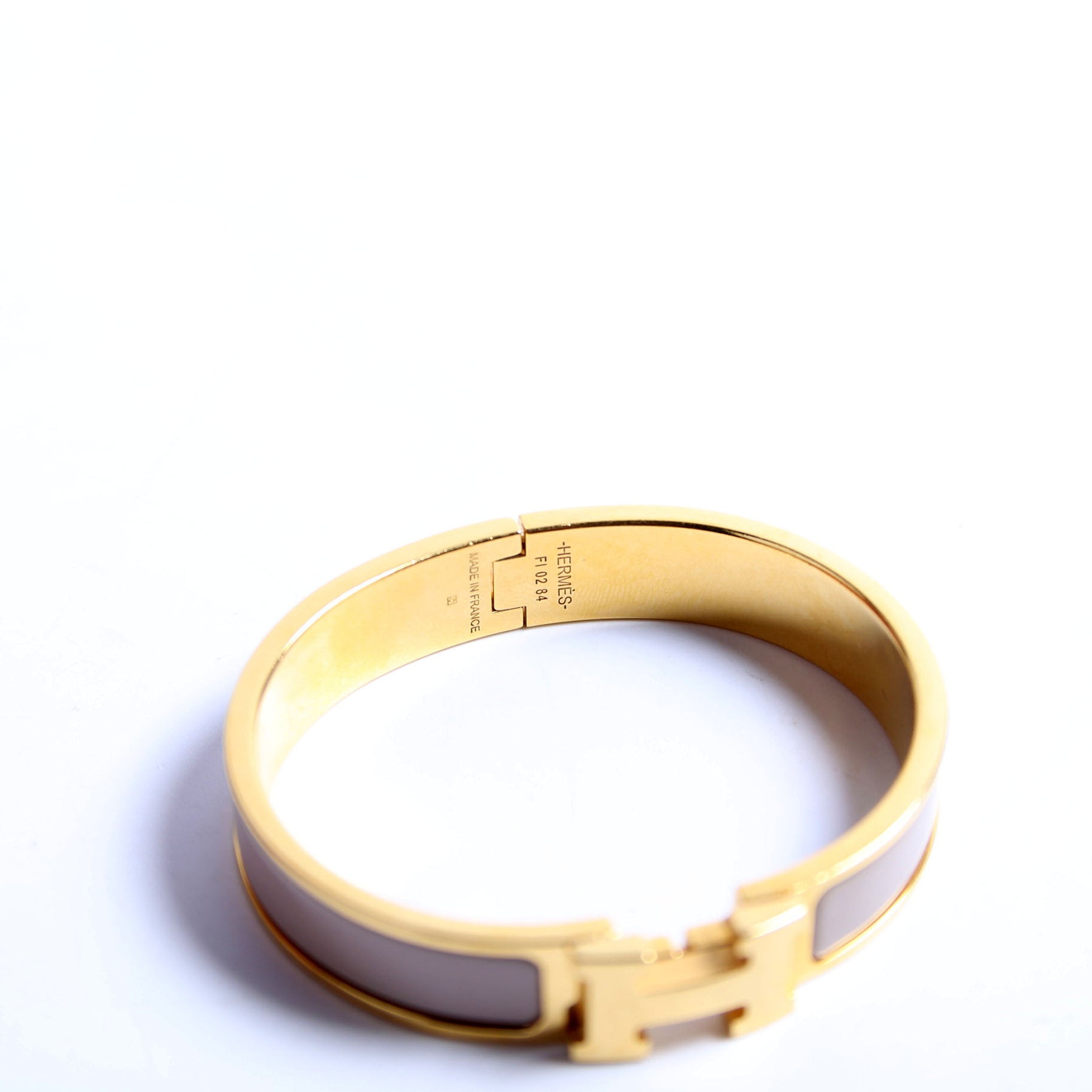 This pre-owned Hermes Clic Clac Narrow PM Bracelet is guaranteed 100% authentic.