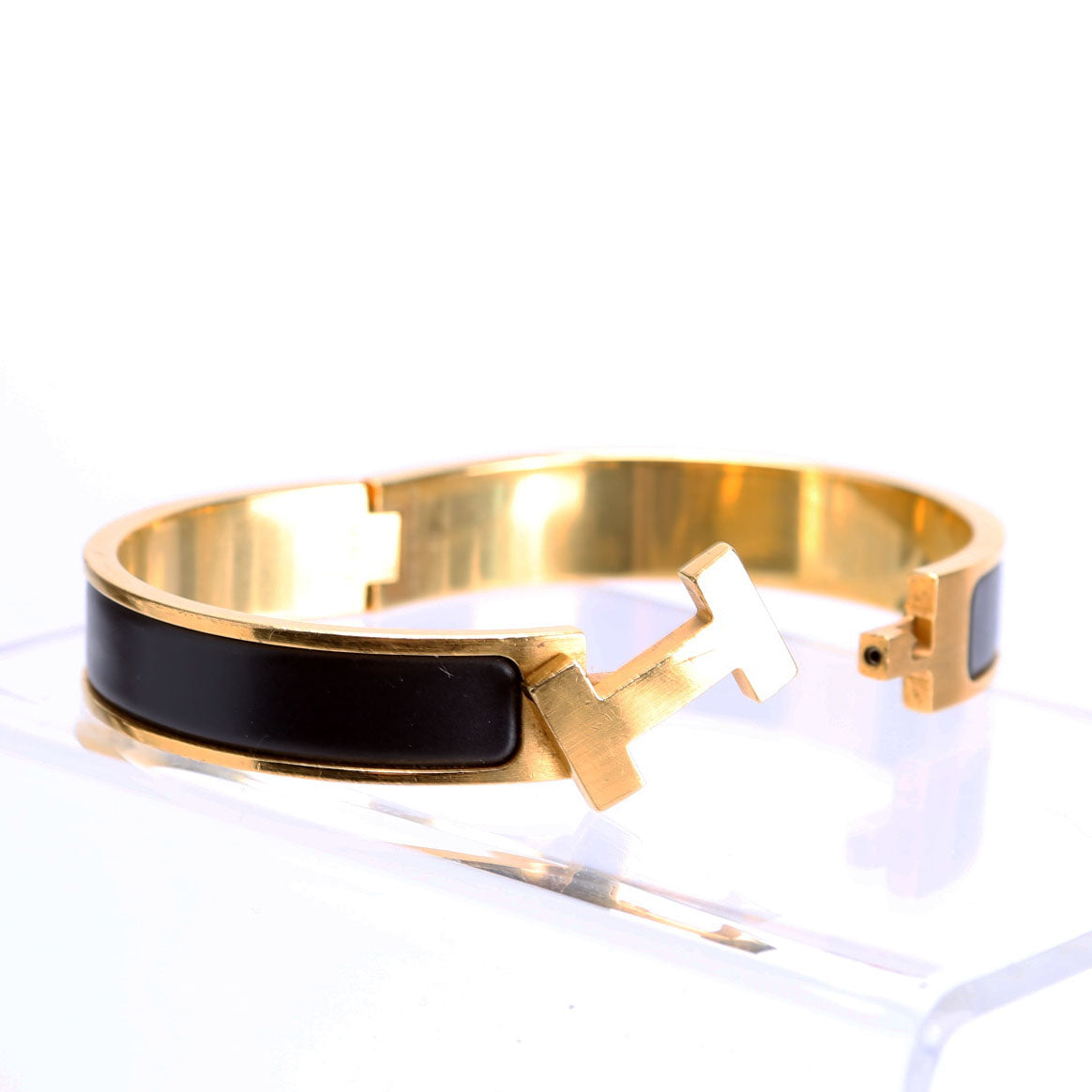 This pre-owned Hermes Clic Clac Narrow PM Bracelet is guaranteed 100% authentic.