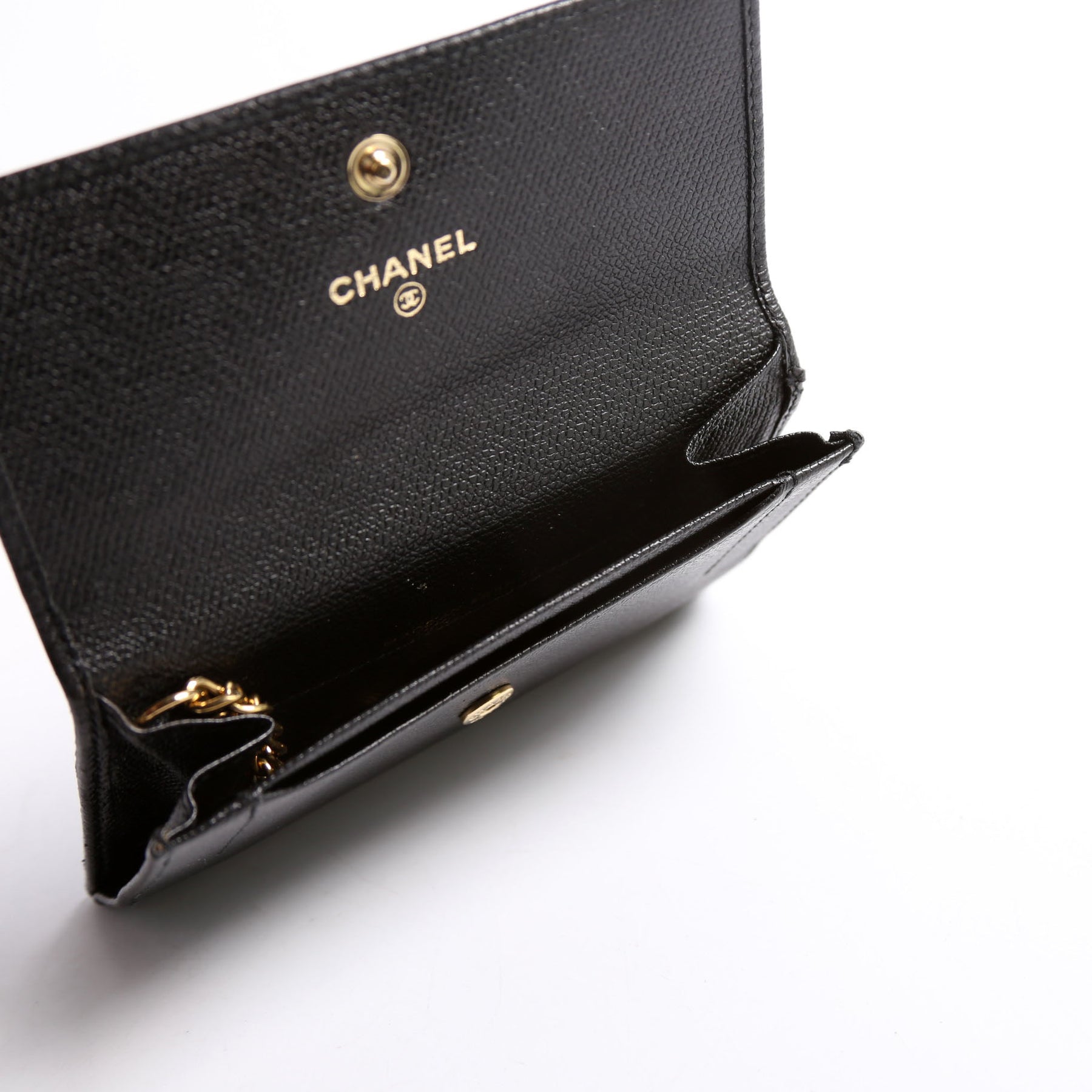 This pre-owned Chanel Coco Mark Coin Card Key Case is guaranteed 100% authentic. The exterior is in the classic Chanel leather.