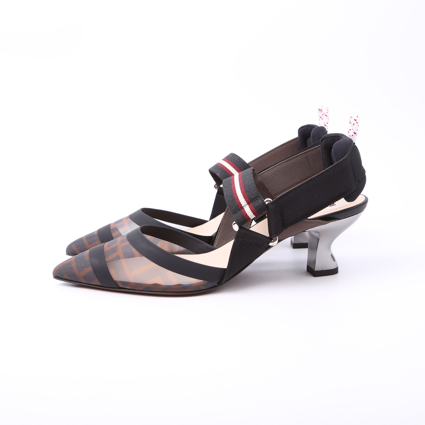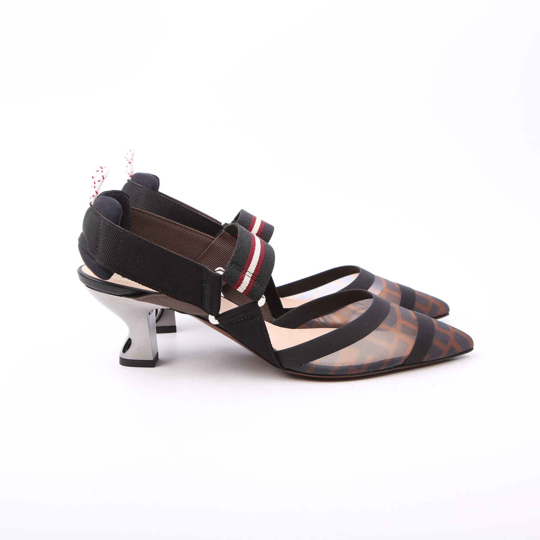 These pre-owned Fendi FF Mesh Slingback are guaranteed 100% authentic.