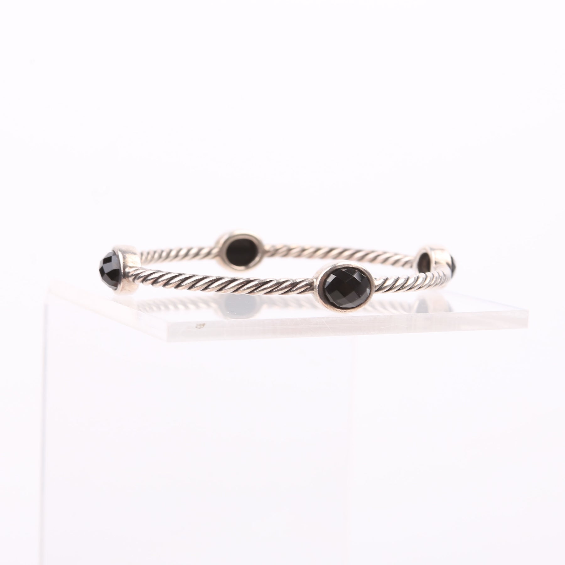 This pre-owned David Yurman Color Classics Four Station Onyx Bangle 925 Bracelet is guaranteed 100% authentic.