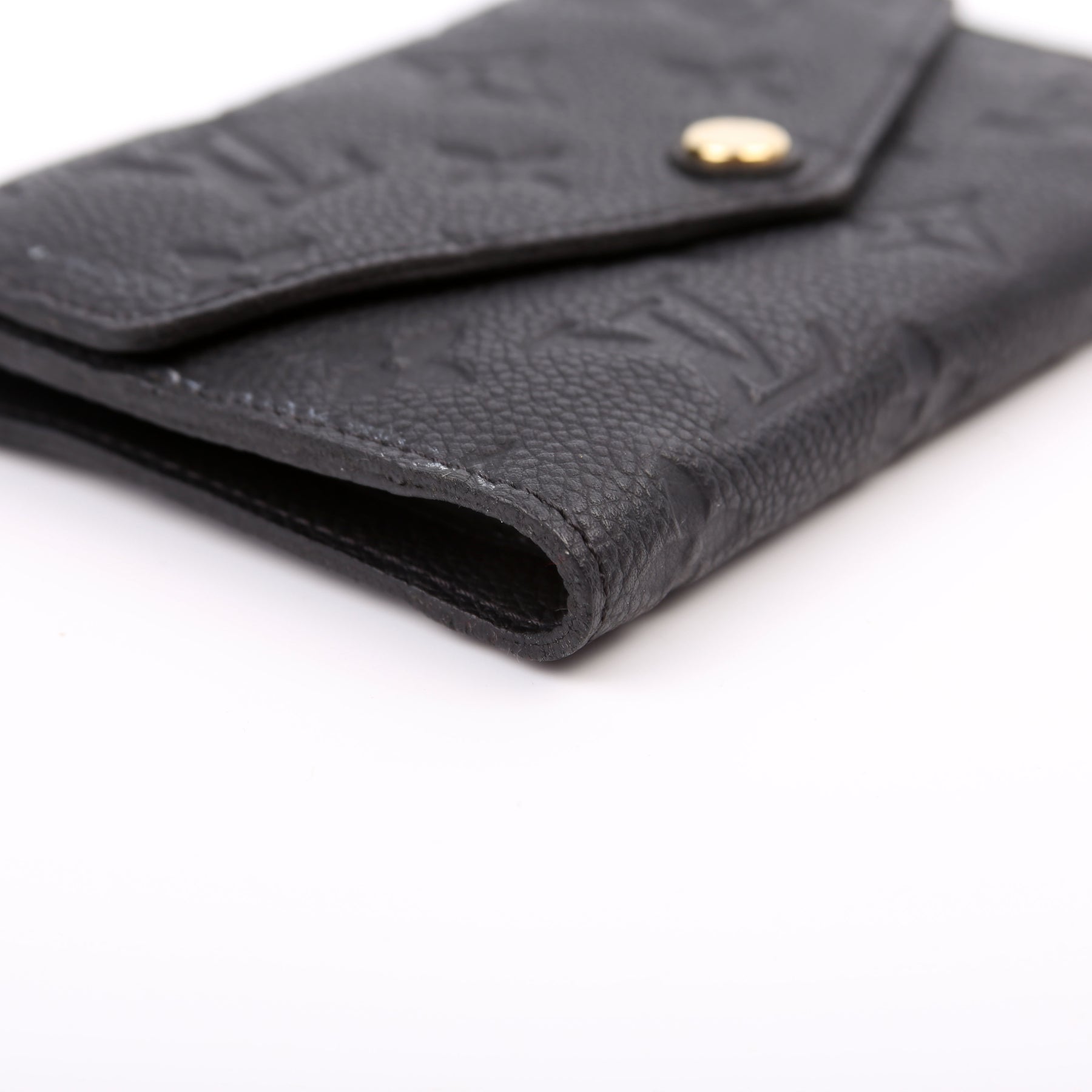 This pre-owned Louis Vuitton Compact Curieuse Wallet is guaranteed 100% authentic. The exterior is in the classic Louis Vuitton Empreinte leather.