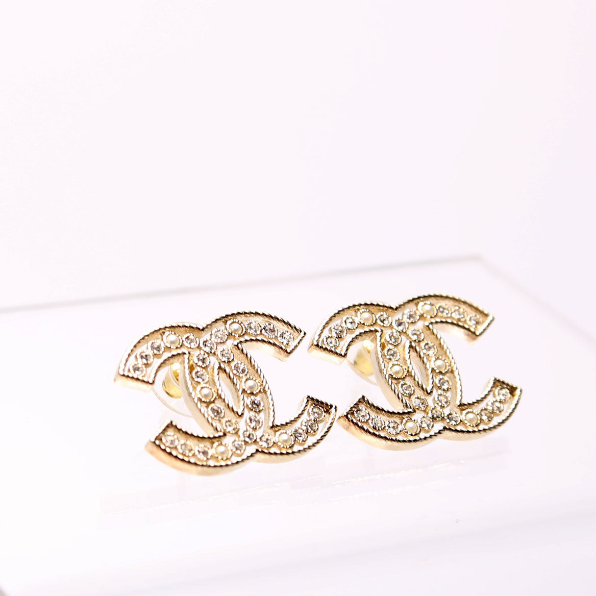 These pre-owned Chanel Crystal CC Stud Earrings are guaranteed 100% authentic.