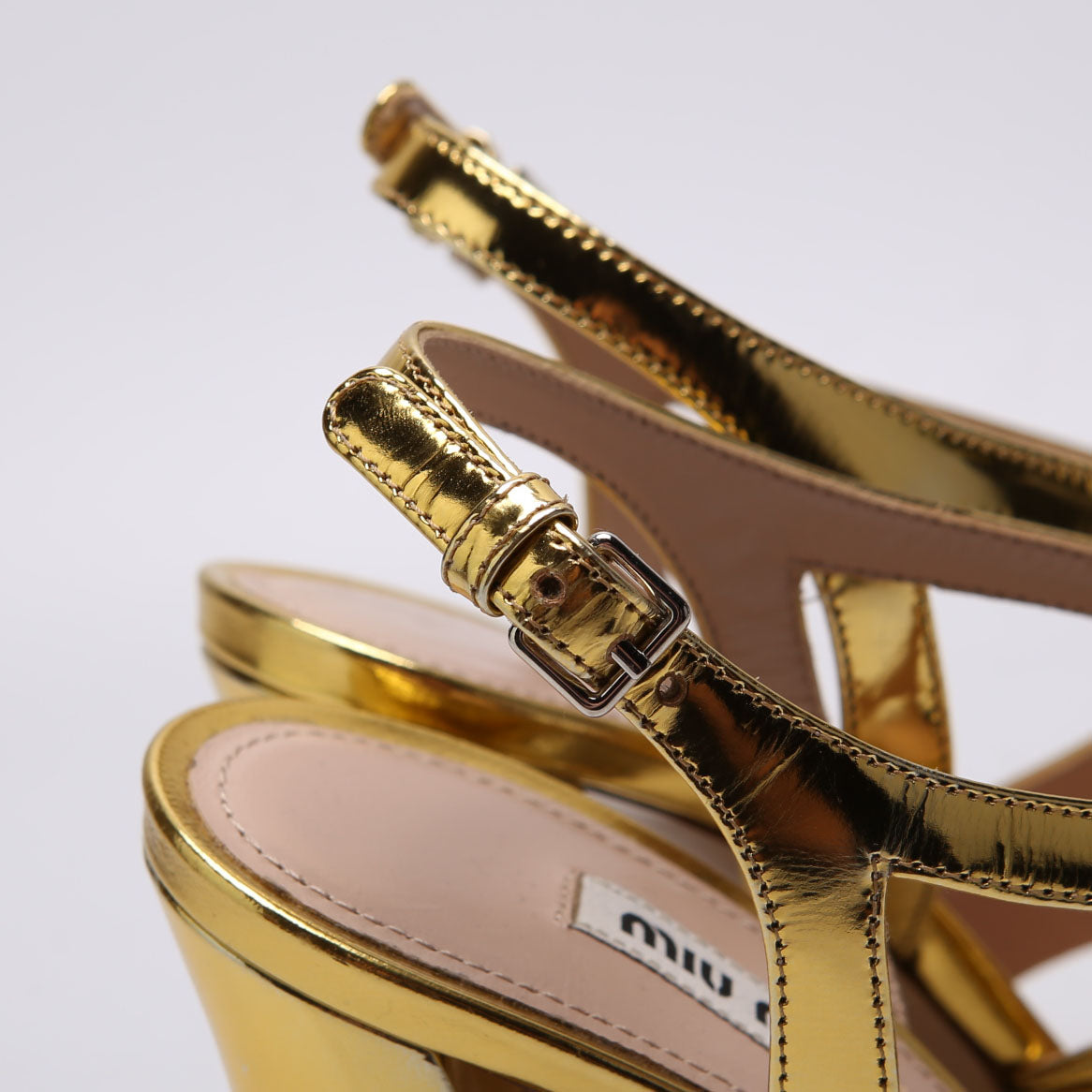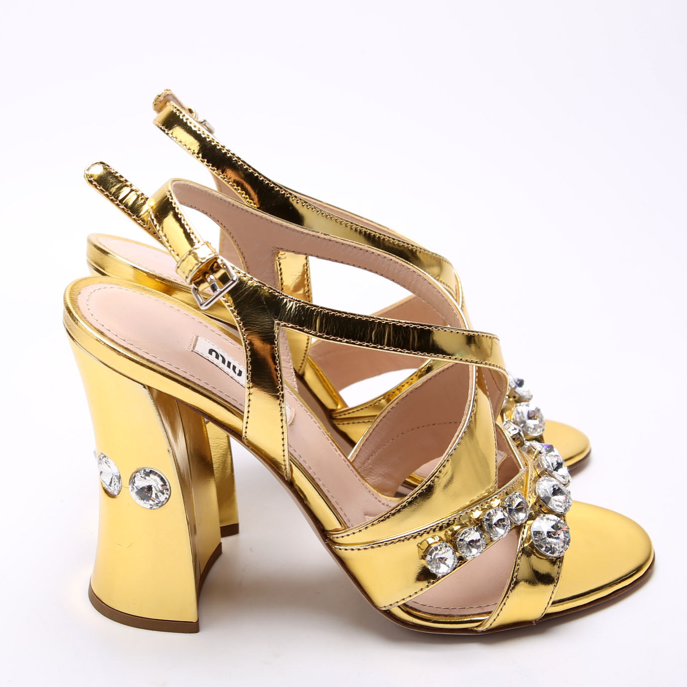 Crystal Embellished Block Heel Sandals Size 37 Gold