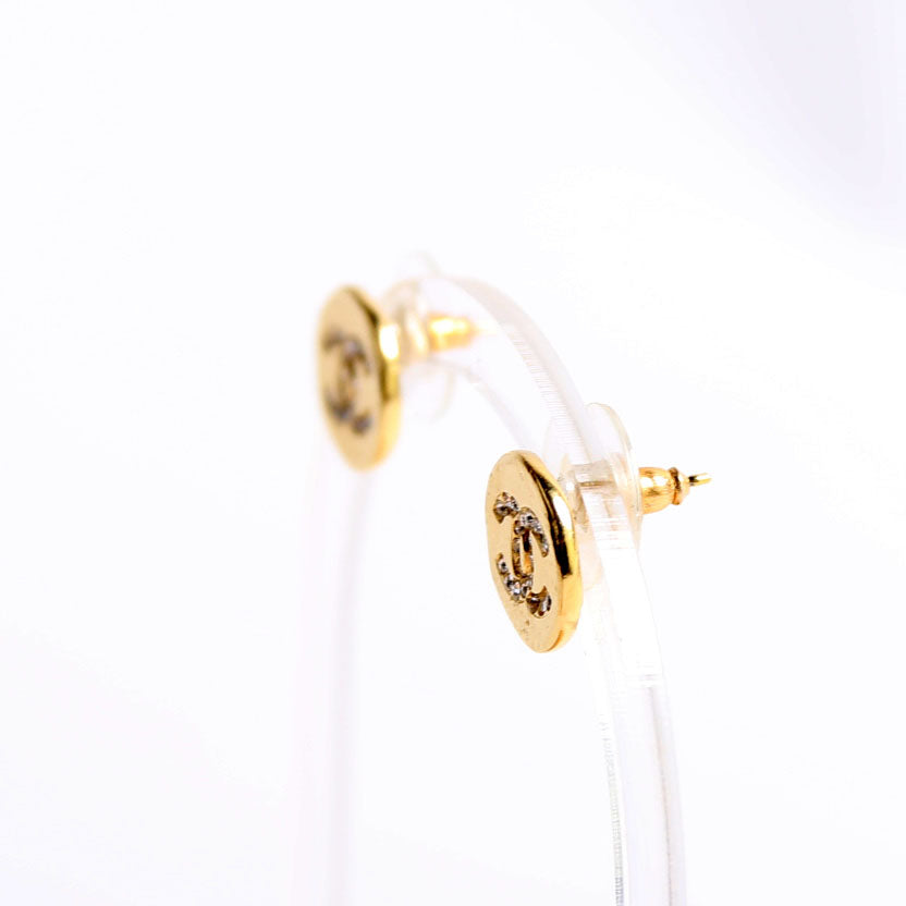 These pre-owned Chanel Crystal Papyrus Stud Earrings are guaranteed 100% authentic.