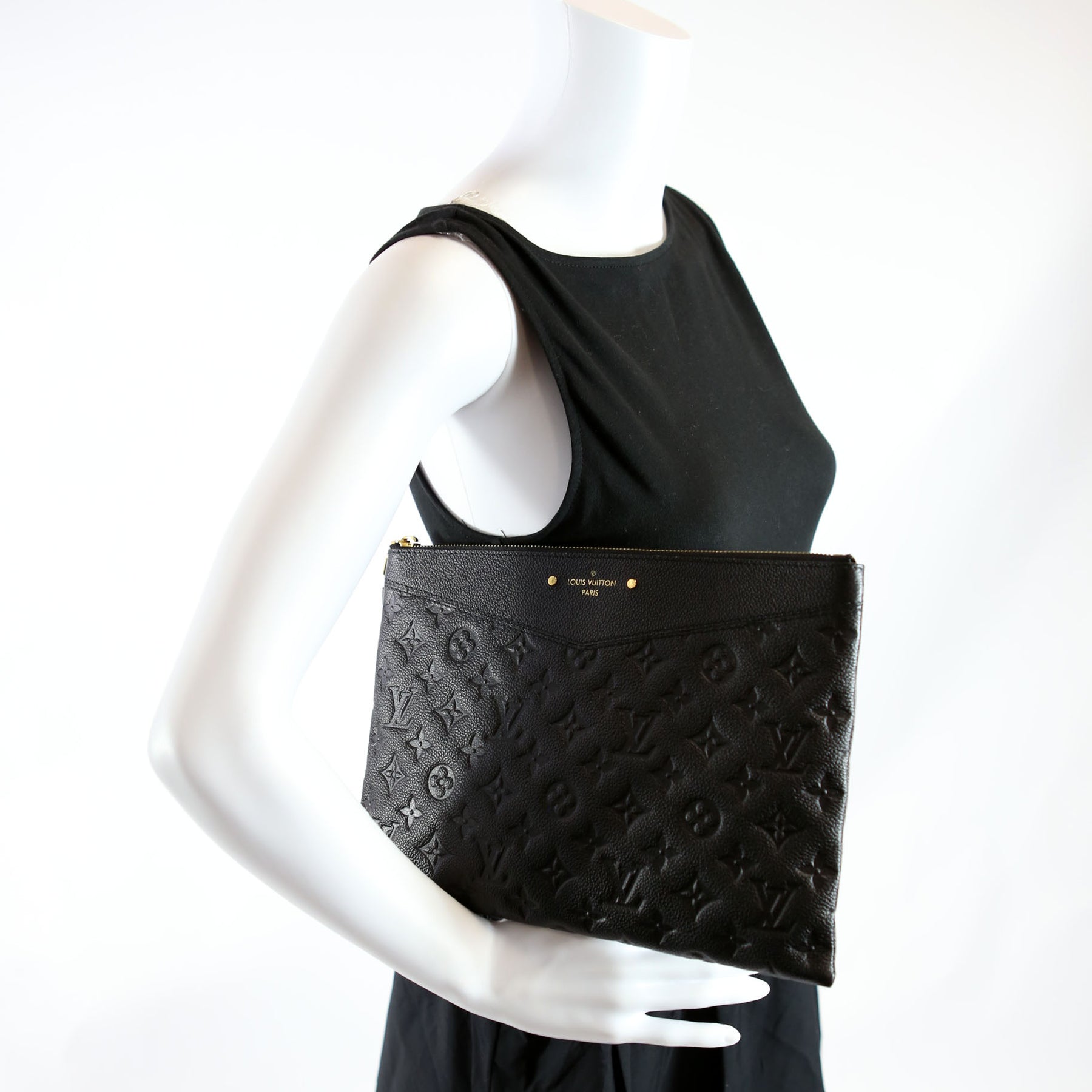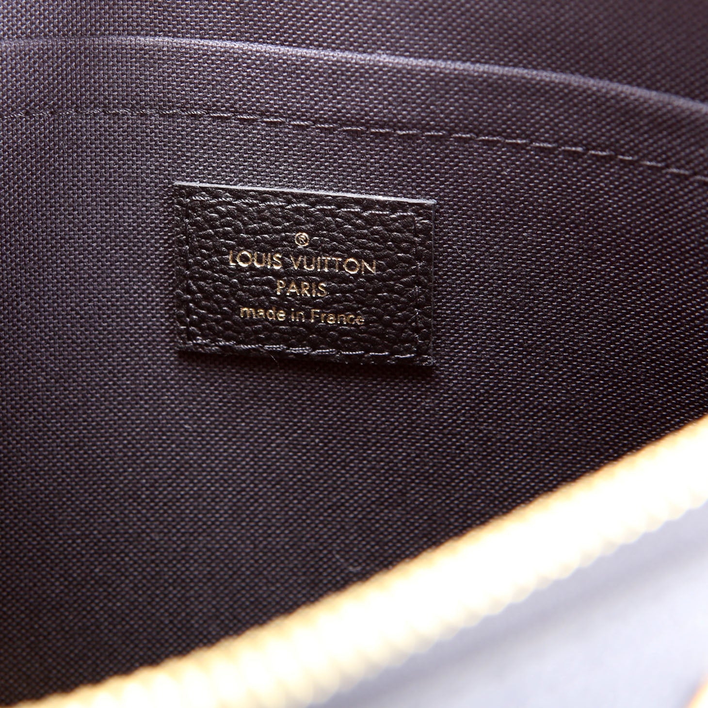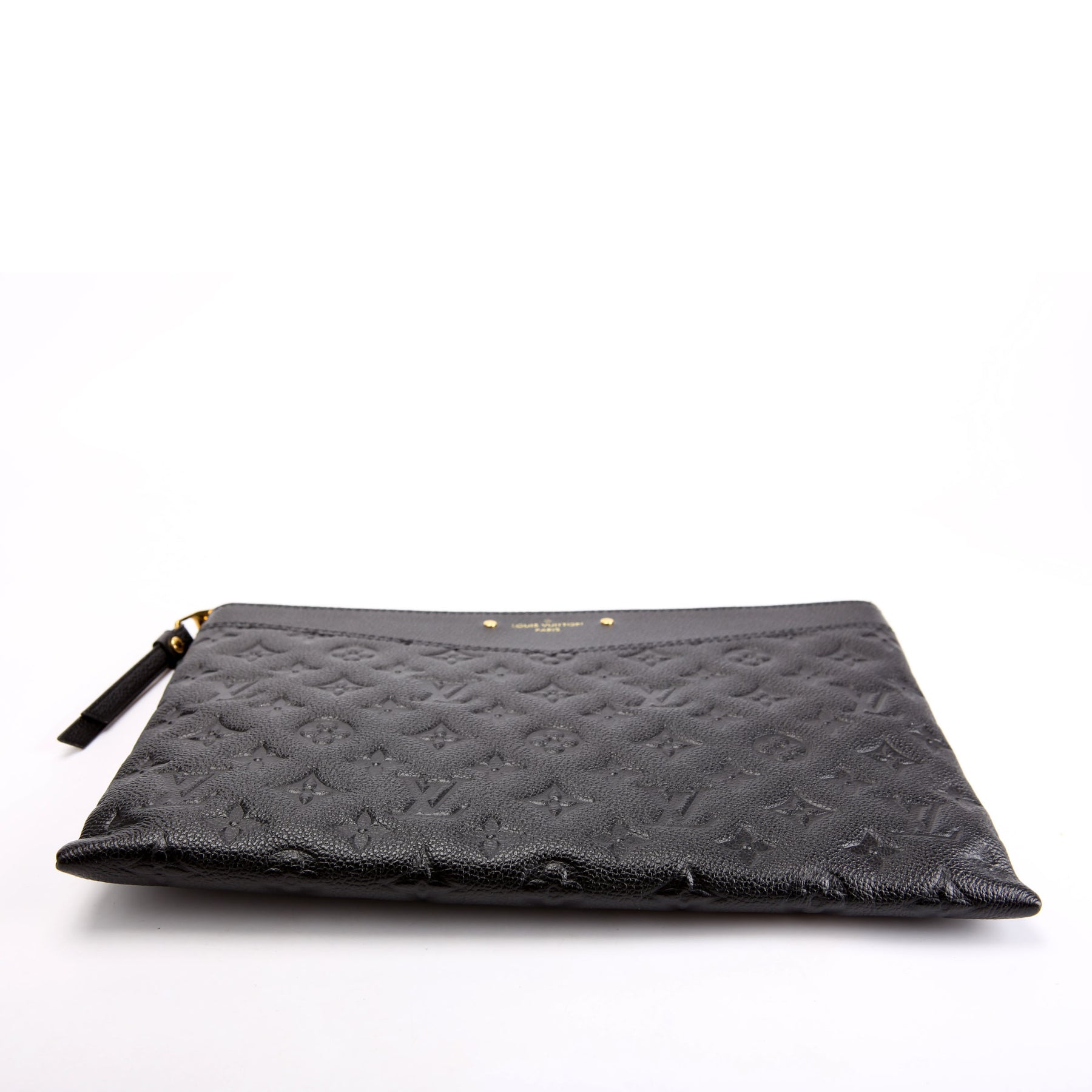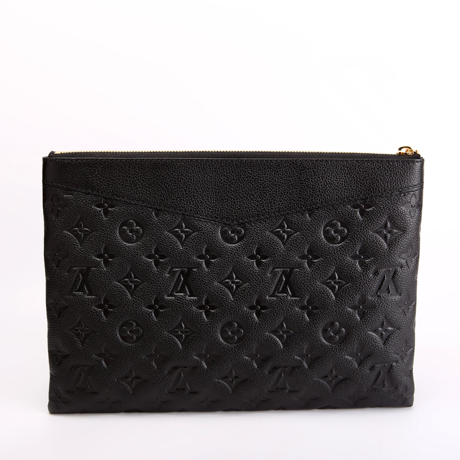 This pre-owned Louis Vuitton Daily Pouch is guaranteed 100% authentic. The exterior is in the classic Louis Vuitton Empreinte leather.