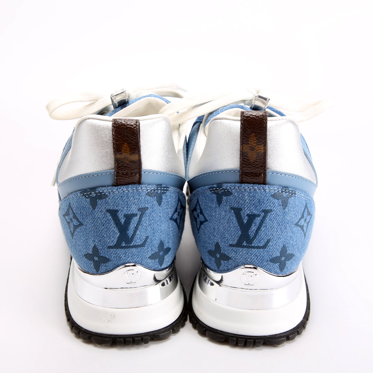 These pre-owned Louis Vuitton Denim Run Away Sneakers are guaranteed 100% authentic.