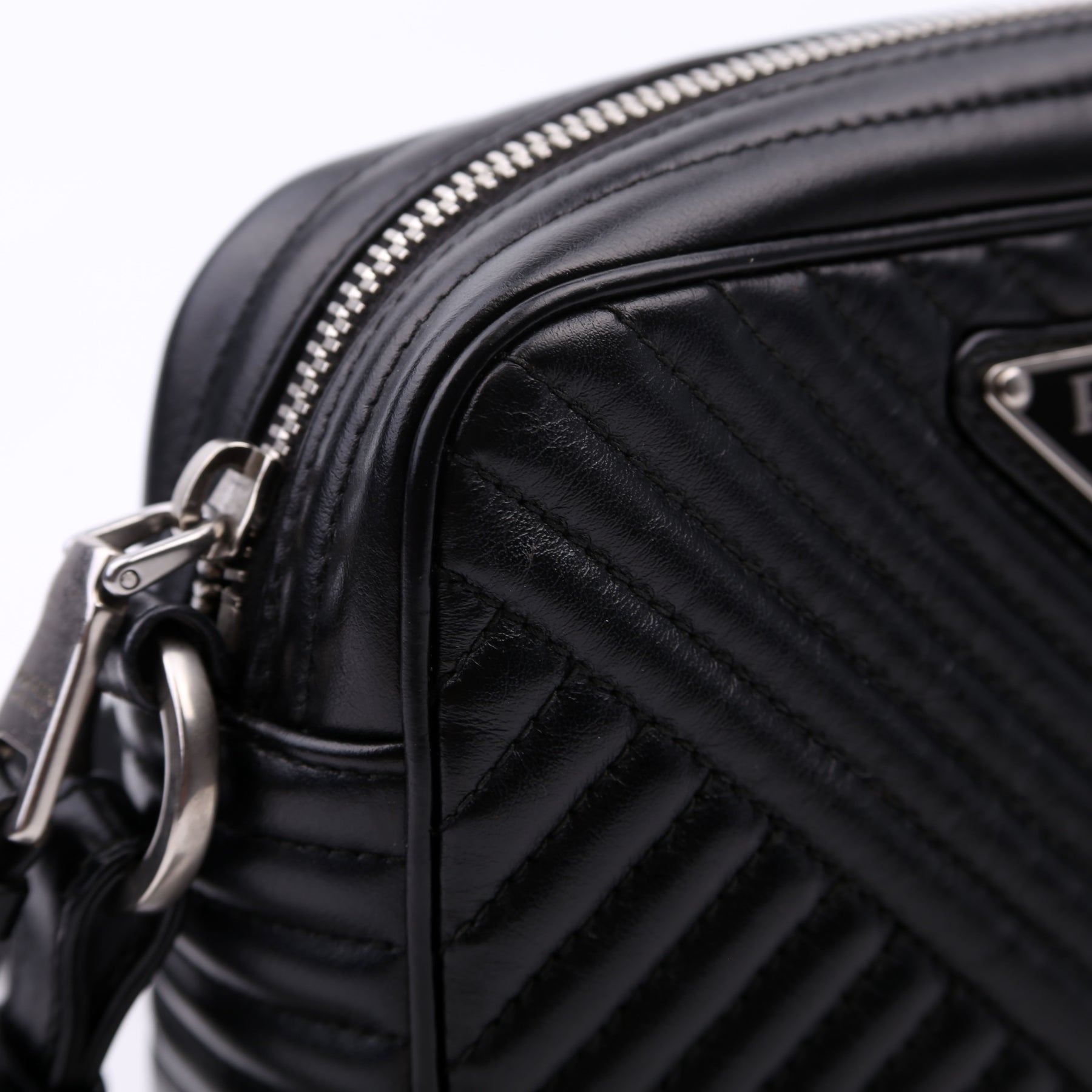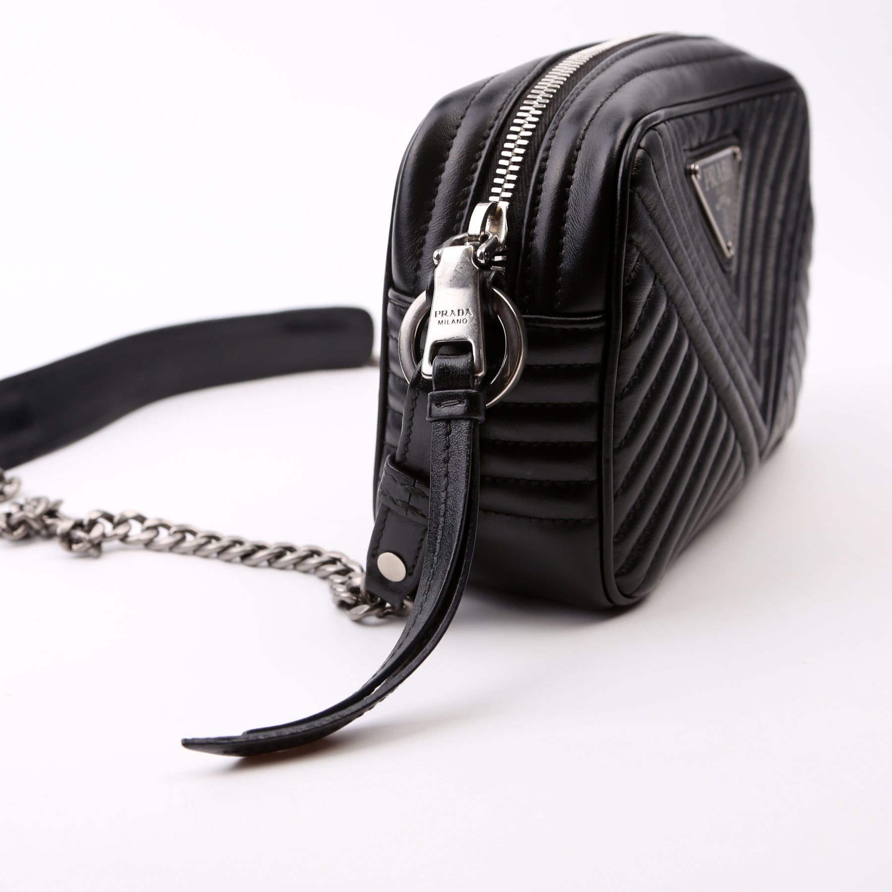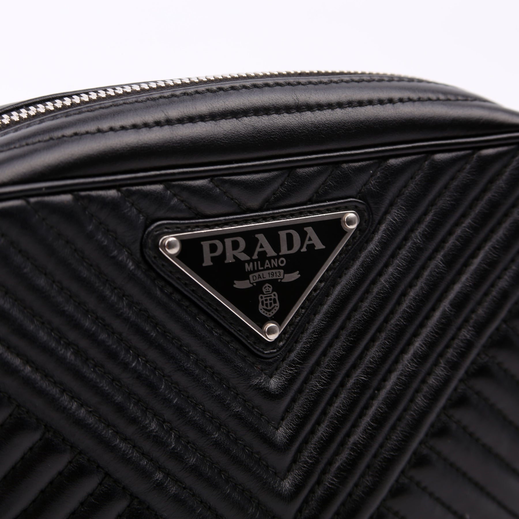 This pre-owned Prada Diagramme Camera Bag is guaranteed 100% authentic.