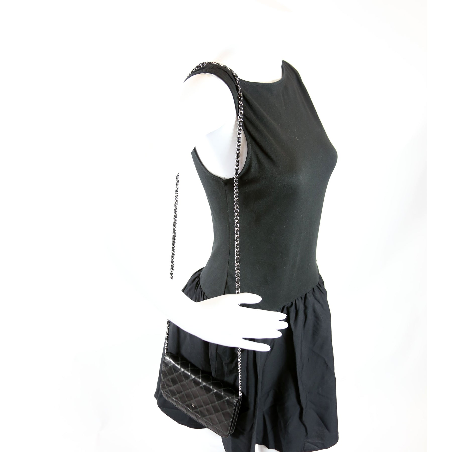 Diamond Stitch Quilted Lambskin WOC 14M Black