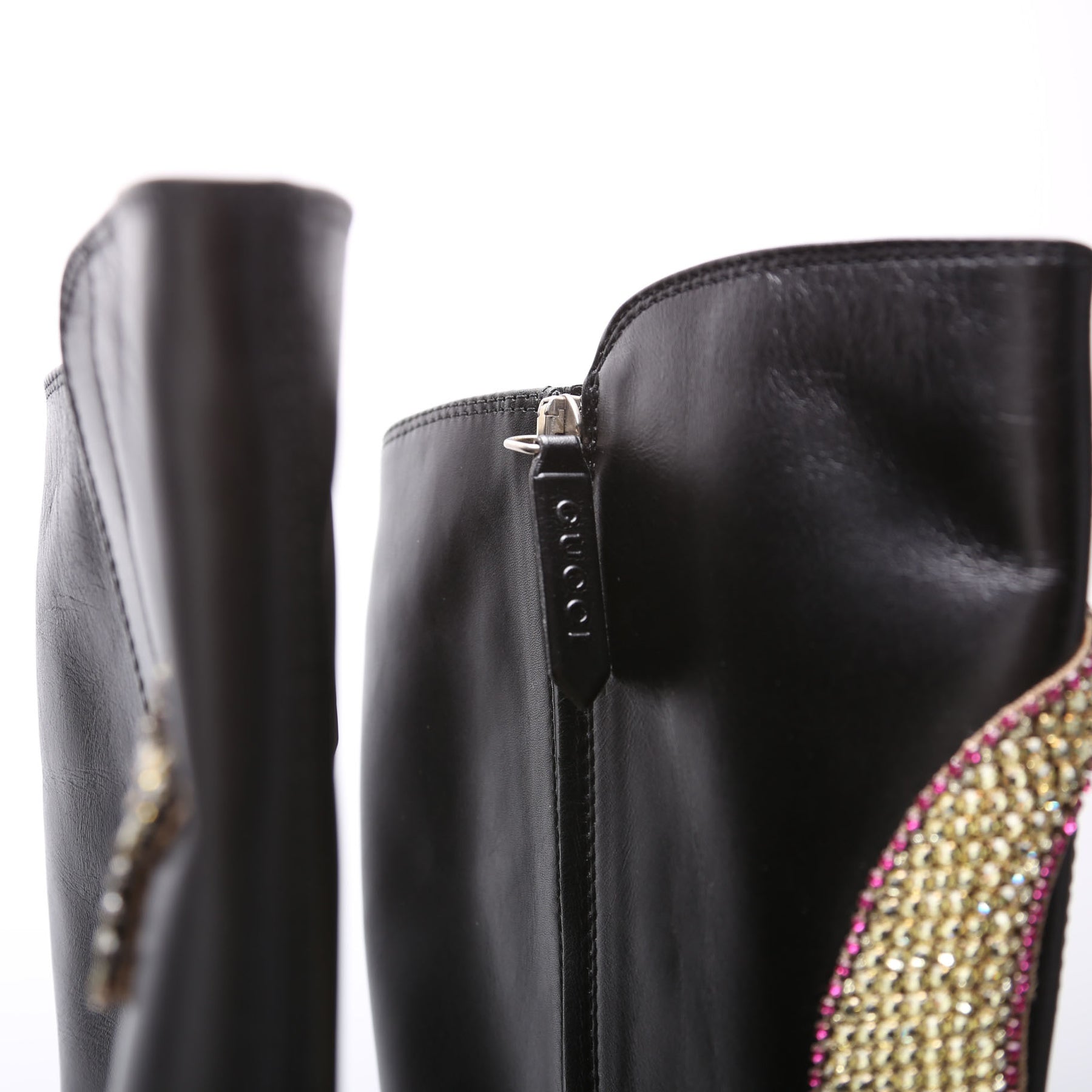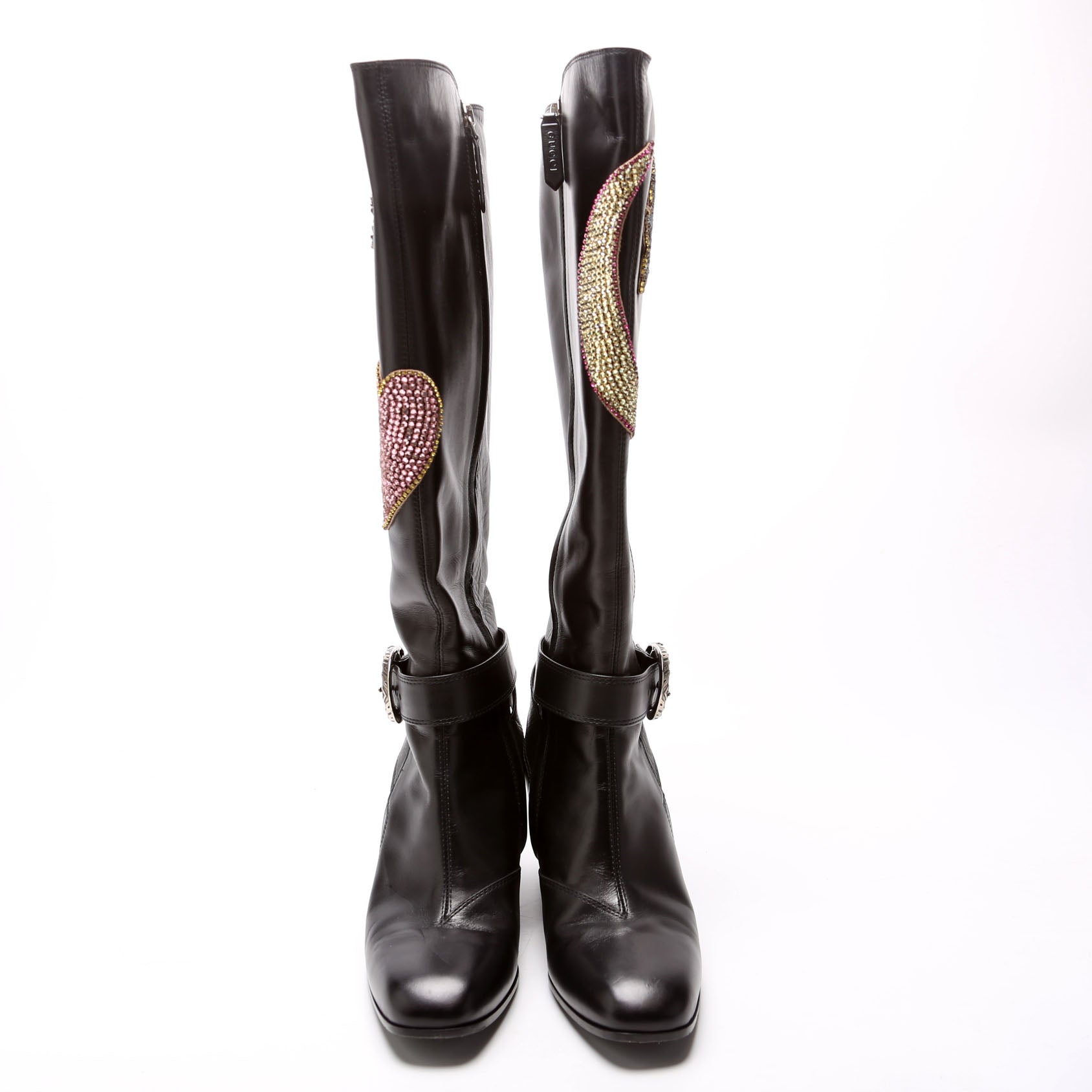 These pre-owned Gucci Dionysus Calfskin Embellished Elizabeth Knee High Boots are guaranteed 100% authentic.