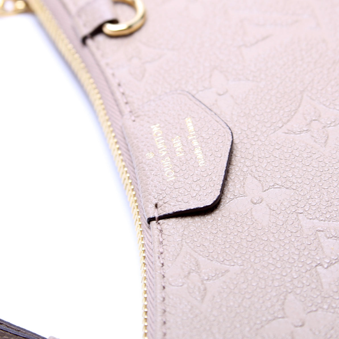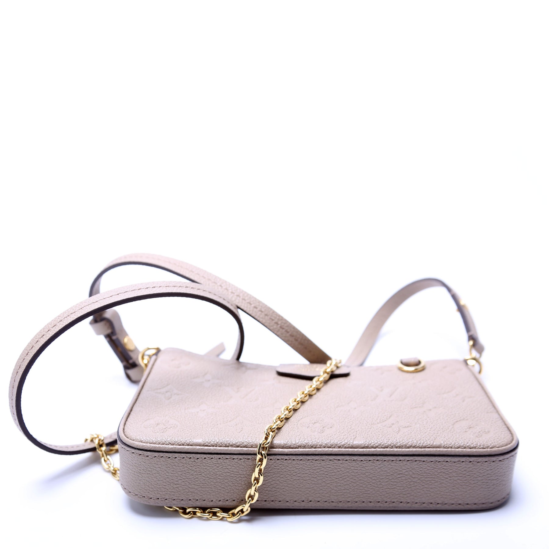 This pre-owned Louis Vuitton Easy Pouch On Strap is guaranteed 100% authentic. The exterior is in the classic Louis Vuitton Empreinte Leather.